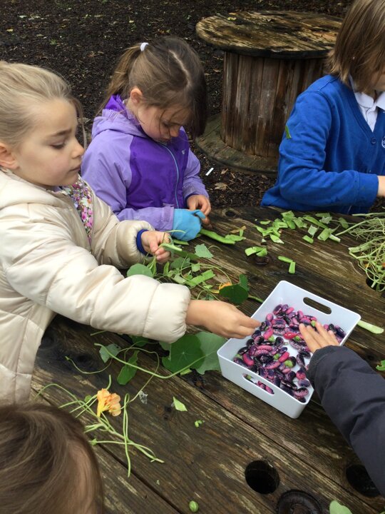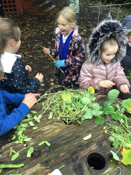Class 2 spent the morning in our outdoor classroom and found lots of new vegetables and beans to harvest!