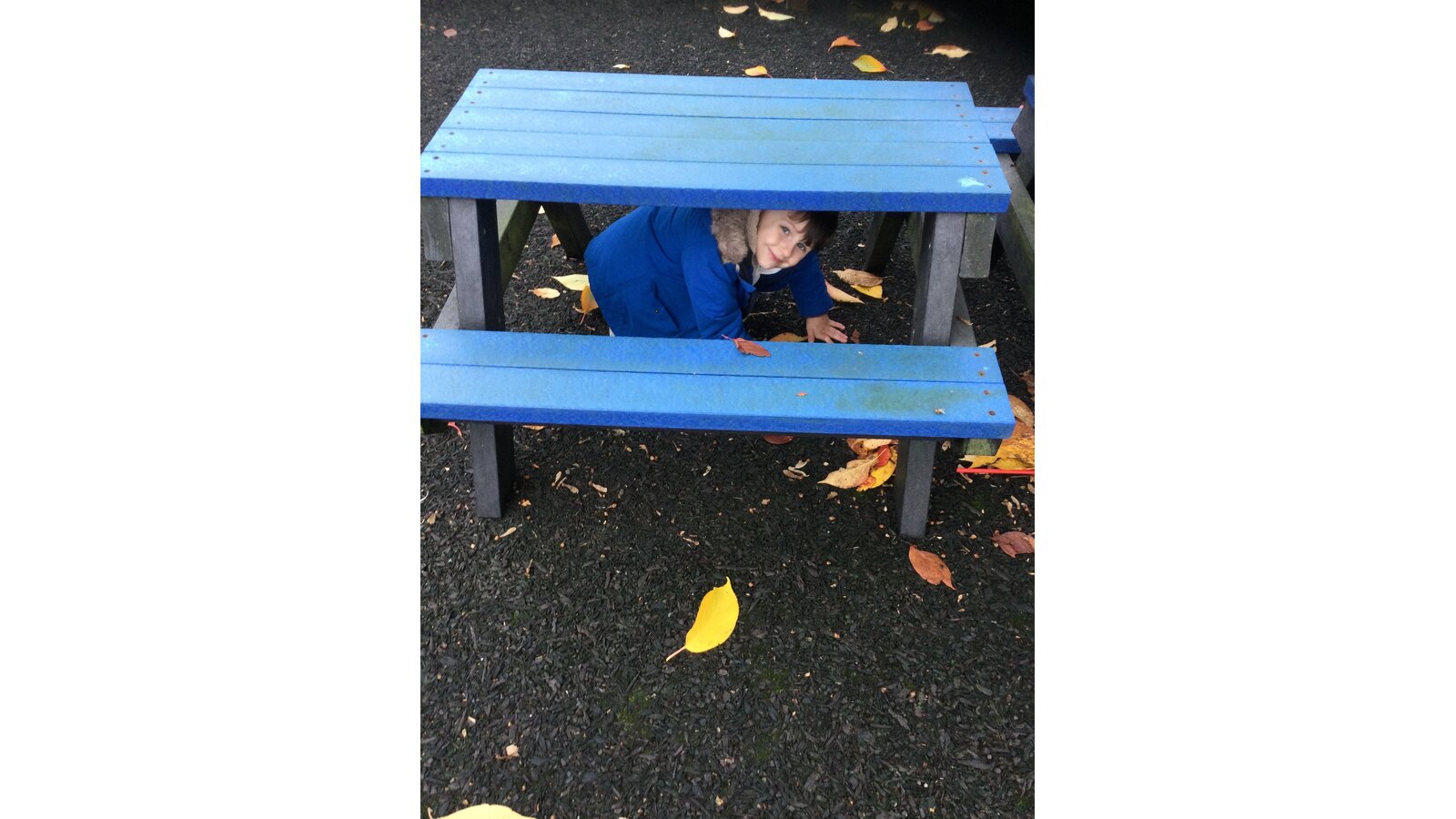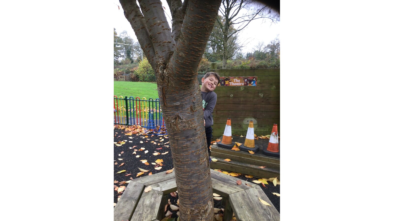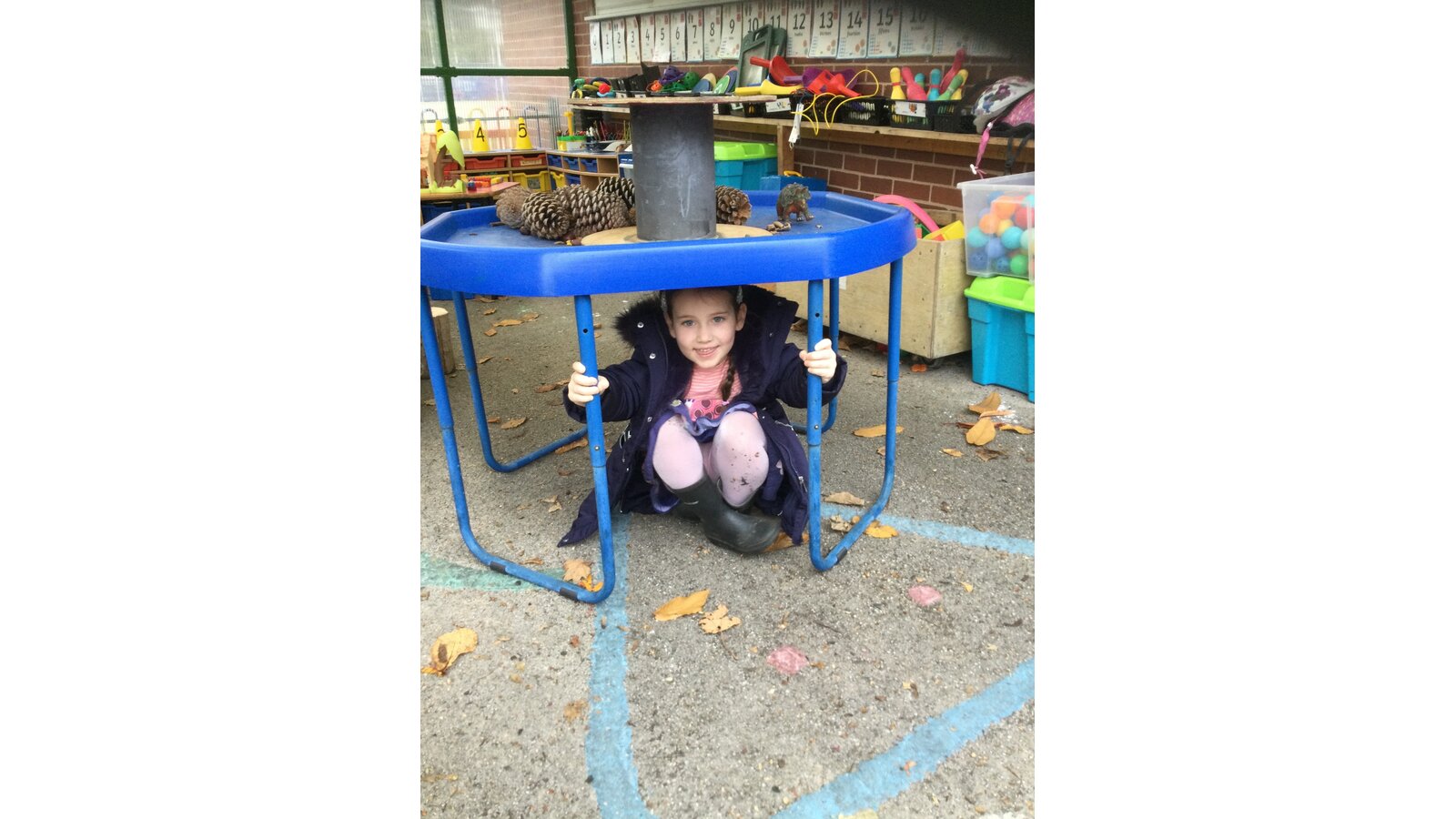 We then went outside in small groups to play hide and seek in our outdoor area. All the children when Mrs Philp called their names by say 1, 2, 3, where are you, used fantastic positional language to say where they were hiding.