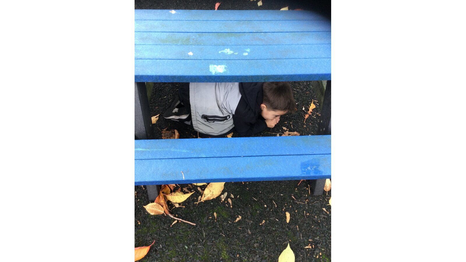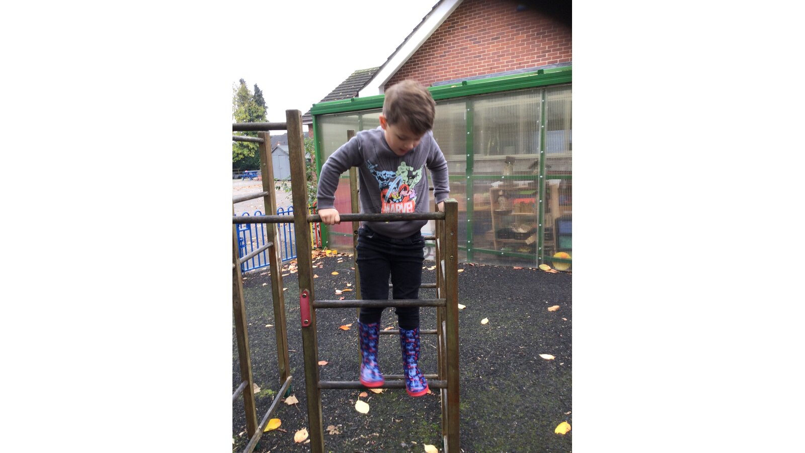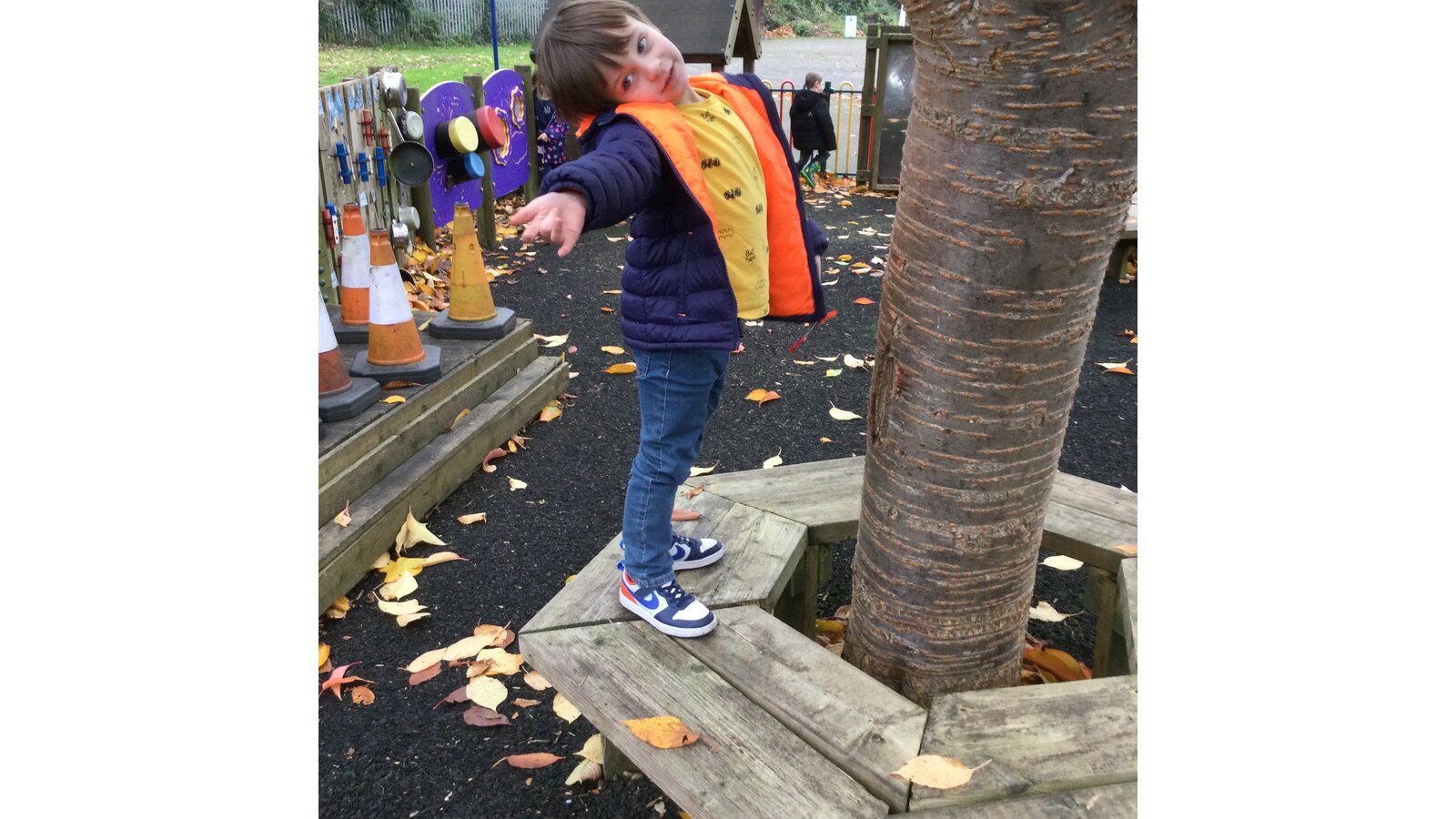 We then went outside in small groups to play hide and seek in our outdoor area. All the children when Mrs Philp called their names by say 1, 2, 3, where are you, used fantastic positional language to say where they were hiding.