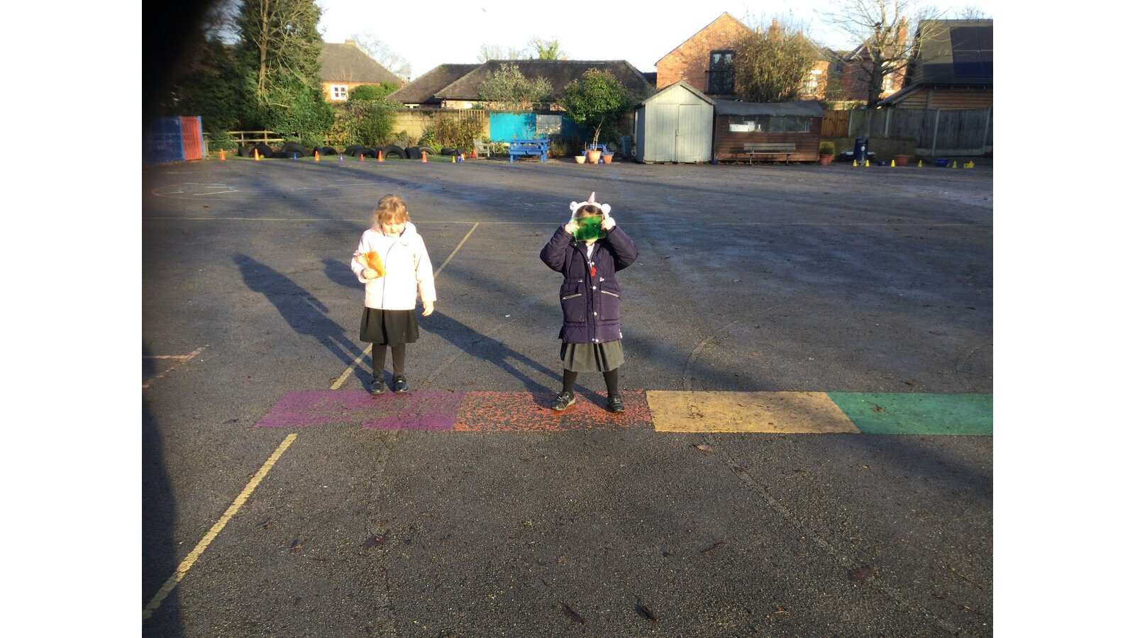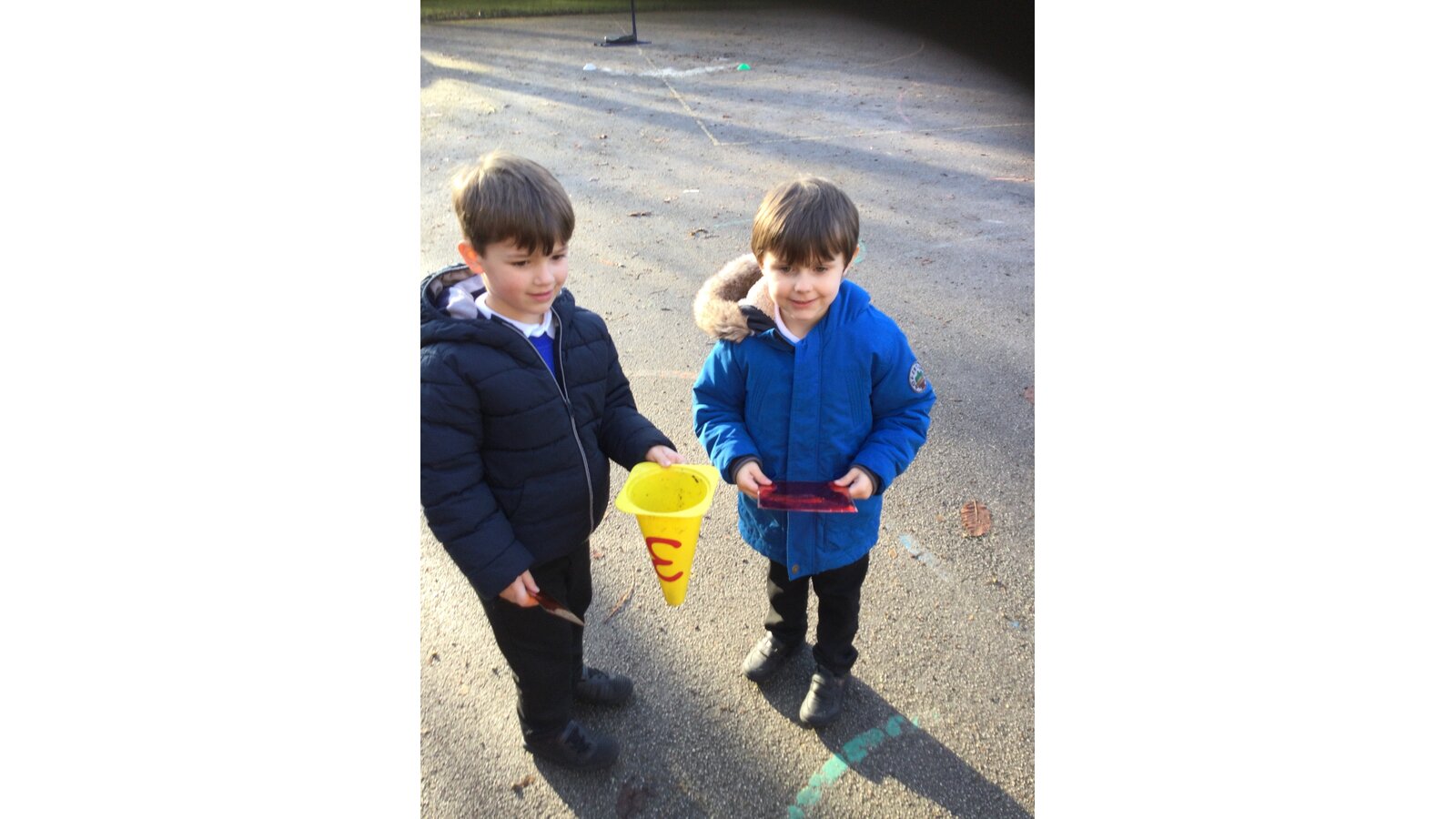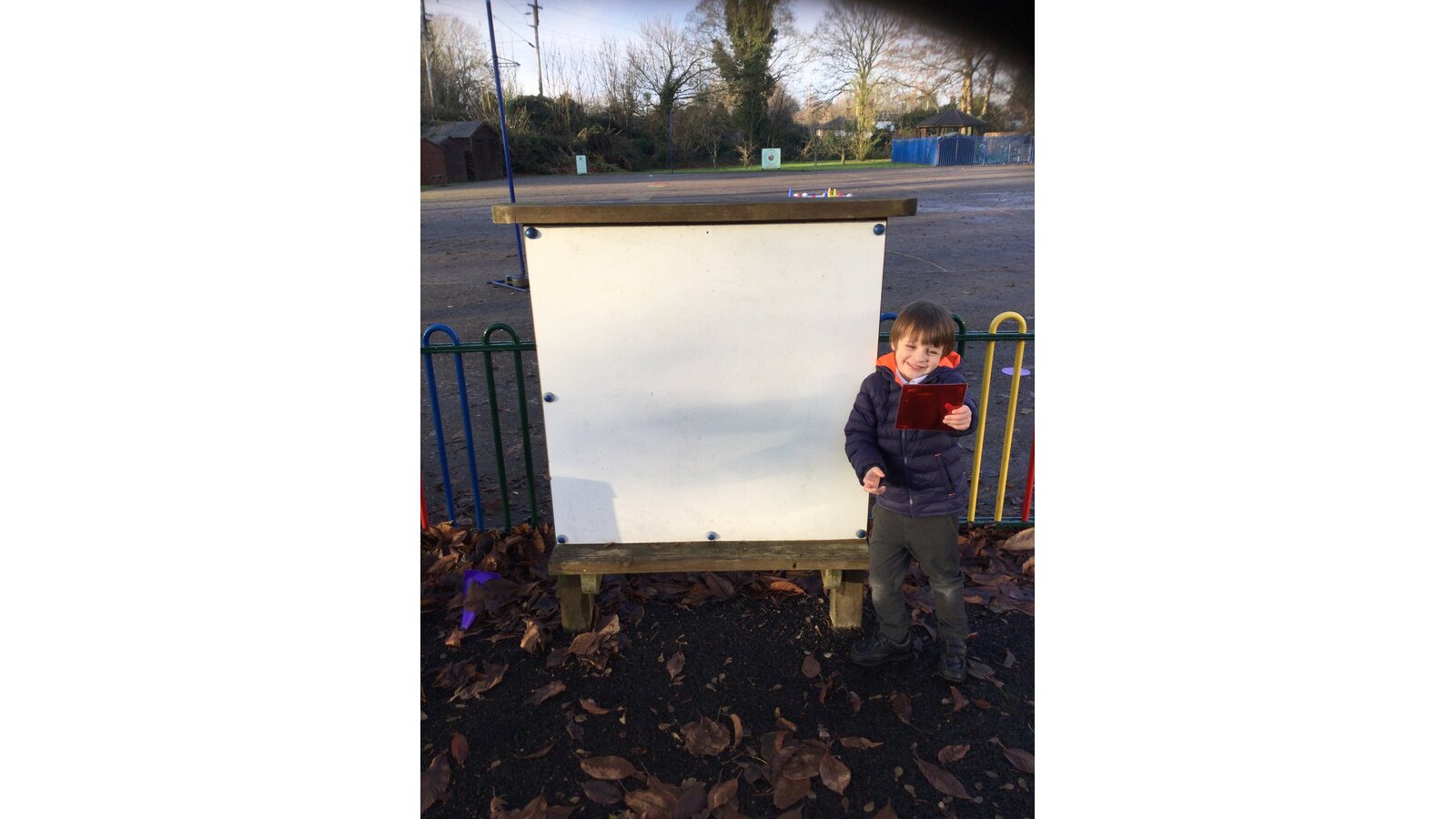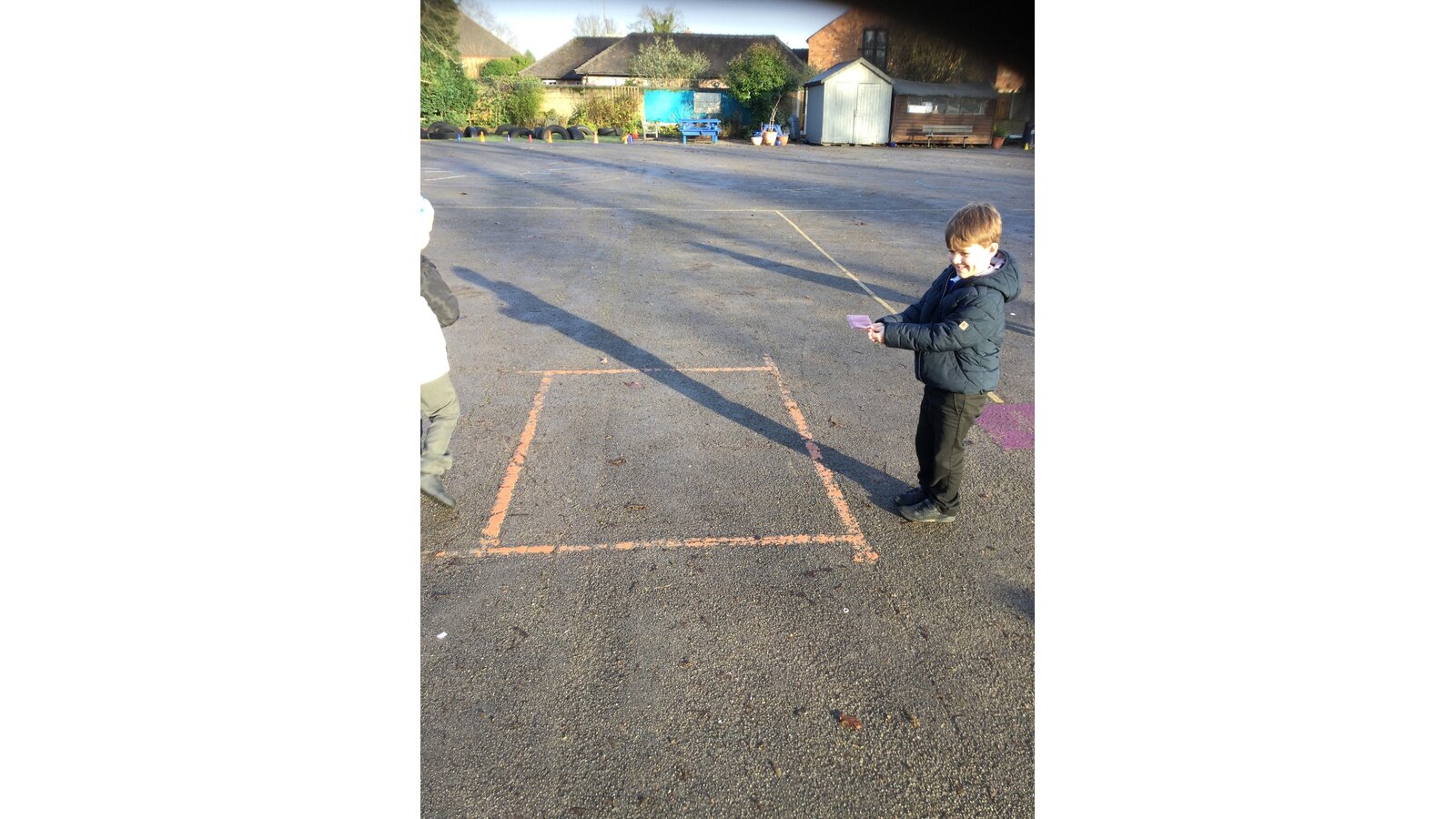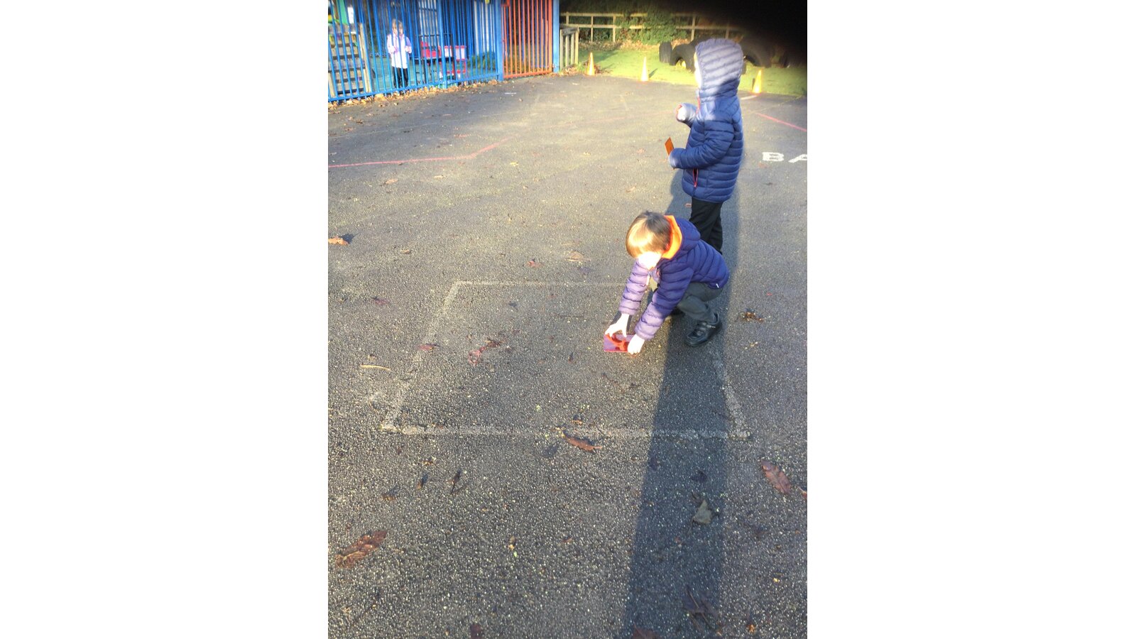 Today, we took our learning outside and went on a shape hunt to spot squares and rectangles in our environment. All the children were fantastic shape spotters and could explain why the shapes they saw were either squares or rectangles by describing the properties of each shape.