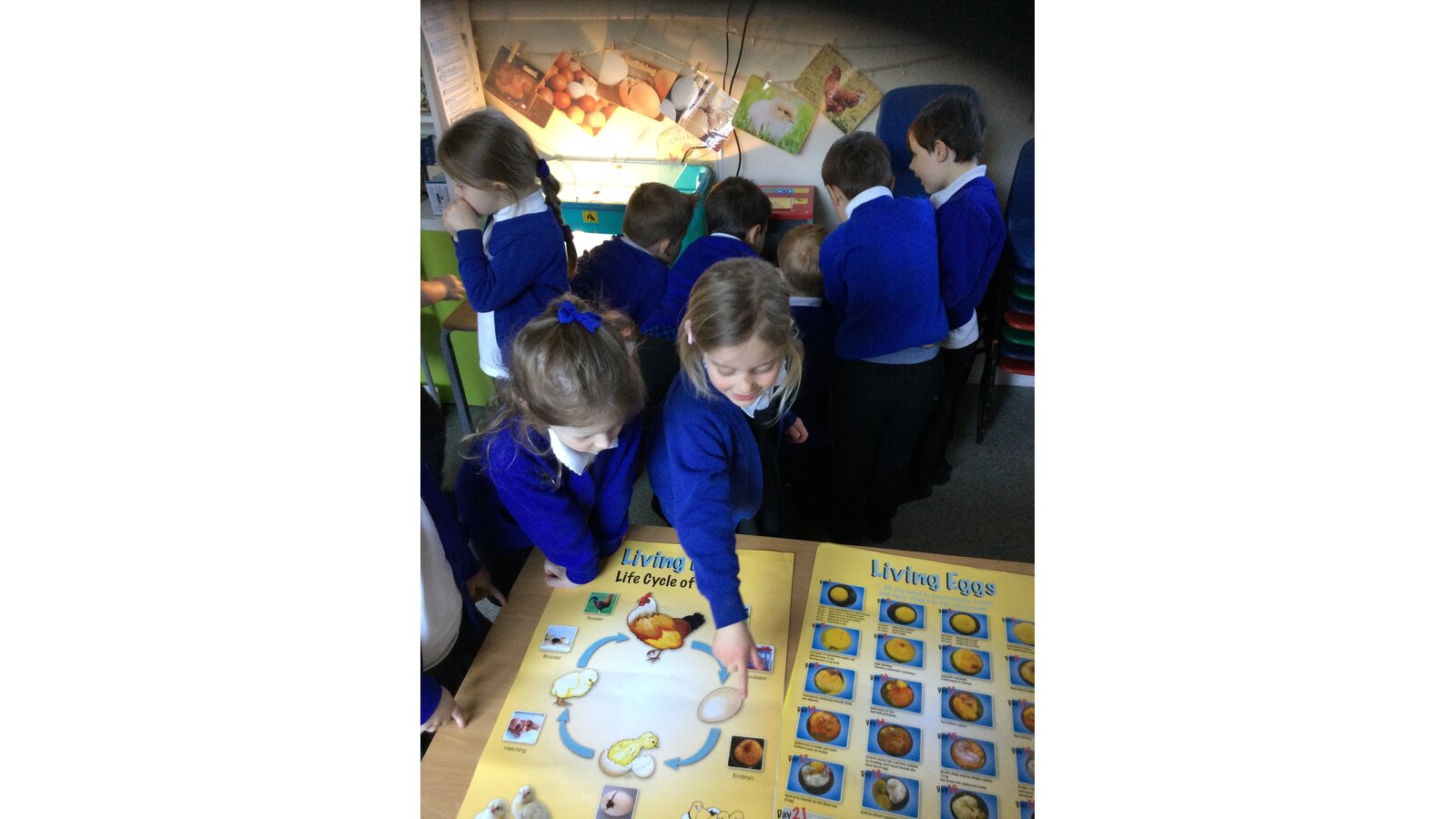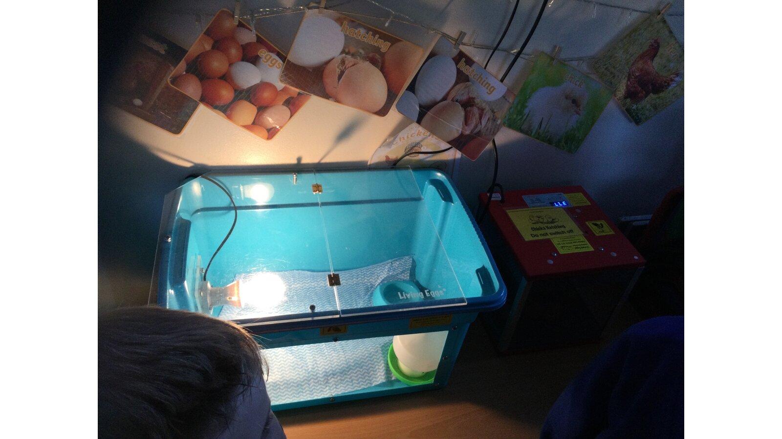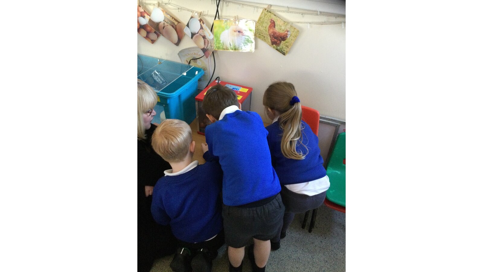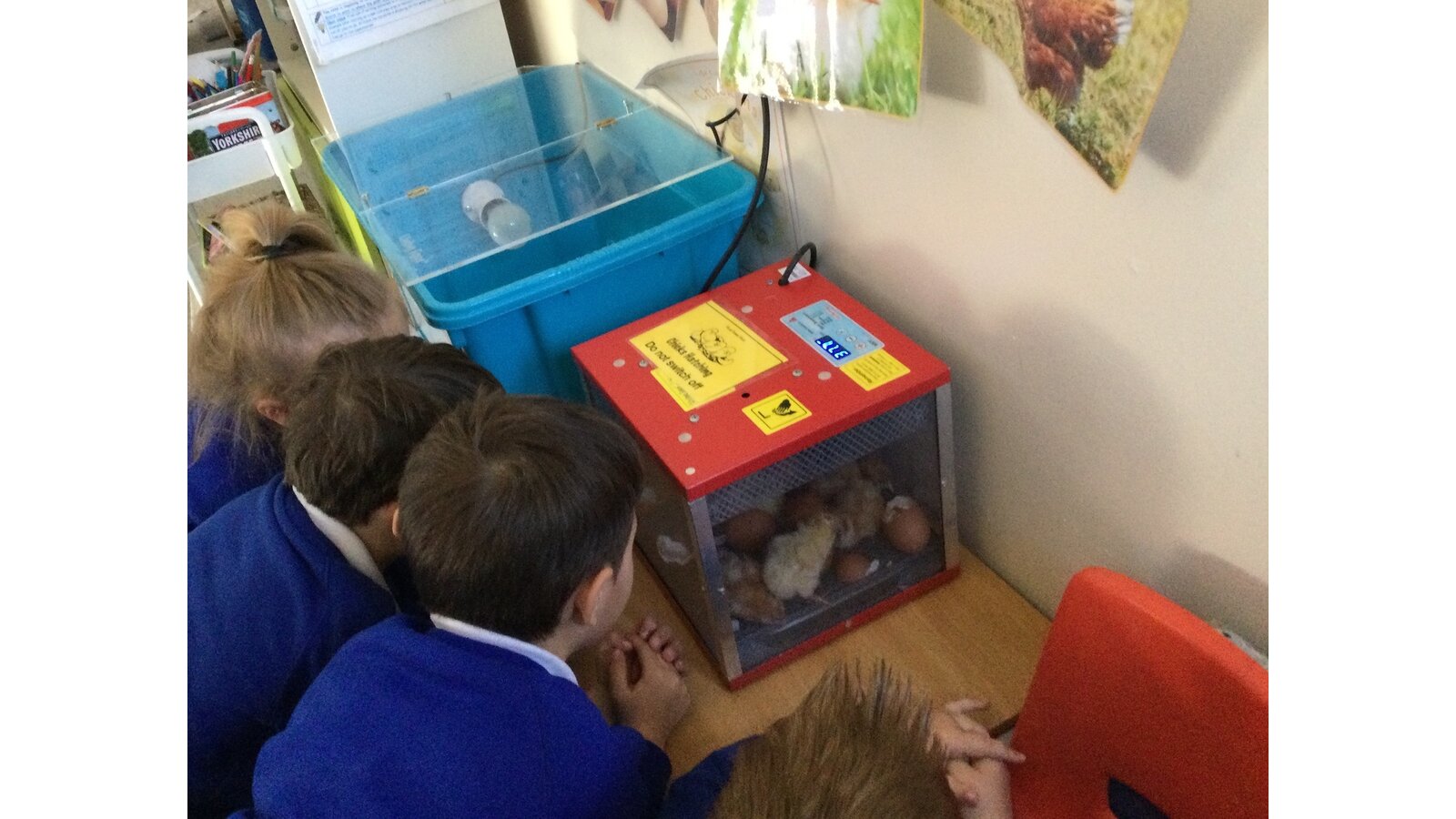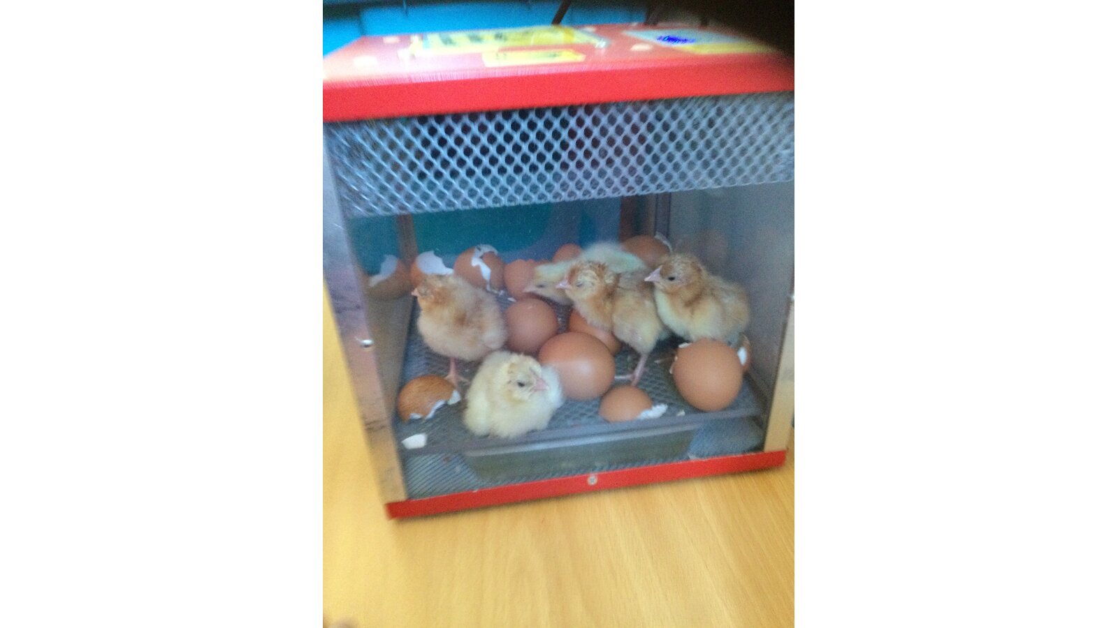 Class 1 were very kindly invited down to take a look at GHU5’s Living Eggs Chicks. We popped down on Tuesday to see the eggs in the incubator and were so fascinated by them! On Wednesday we went back down to see that 5 of the chicks had hatched and were warming up and drying out in their incubator before needing to be moved to the brooder.