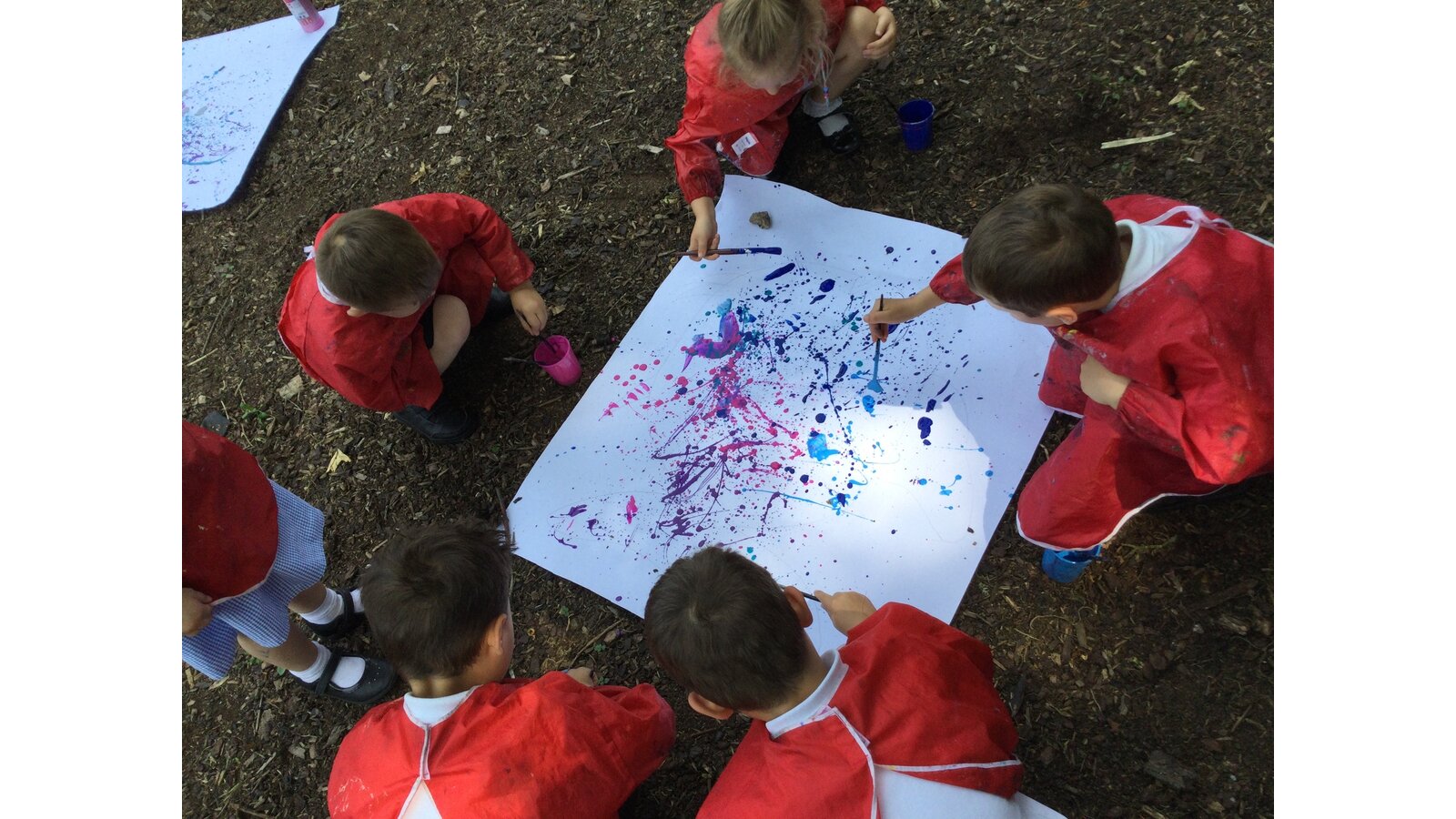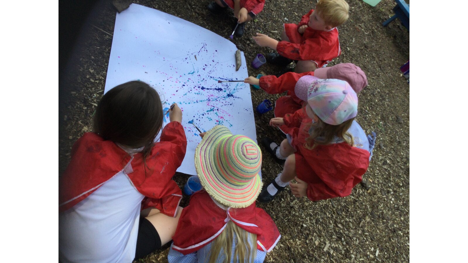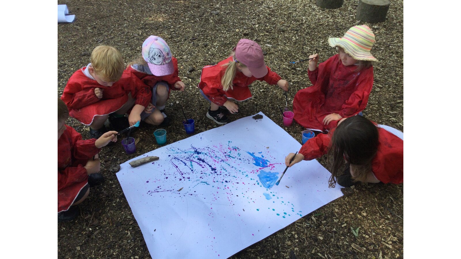 Class 1 took their artistic skills outdoors this afternoon. We have been reading the story Rainbow fish in Literacy and decided to create large scale paint splat rainbow fish! After we had finished the colourful scales we added silver sparkly scales with just enough to share one for each of our friends!