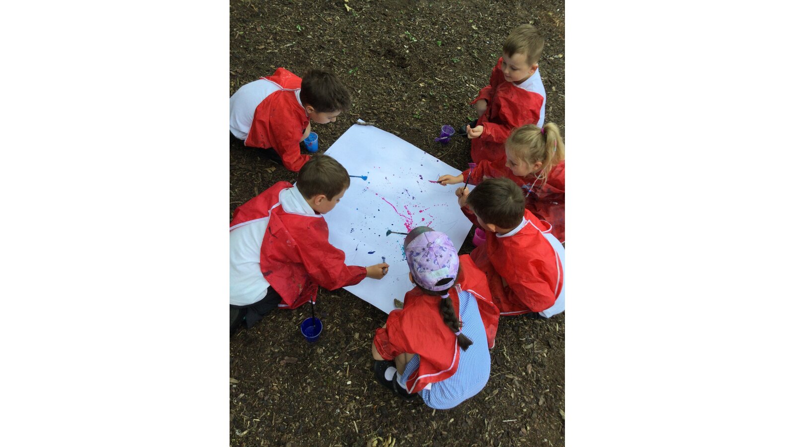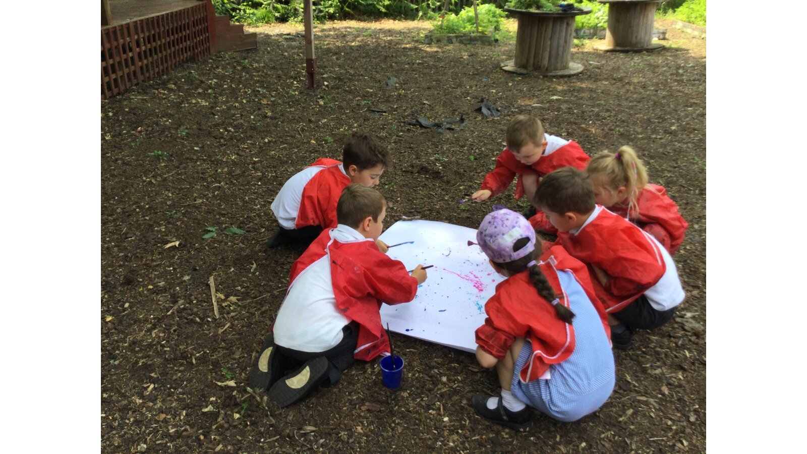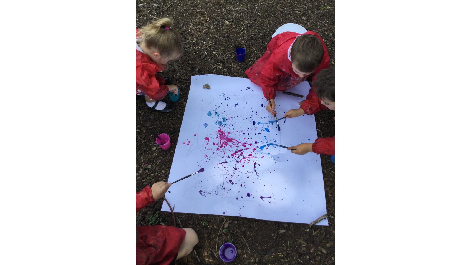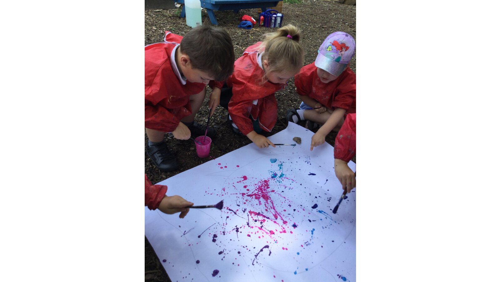 Class 1 took their artistic skills outdoors this afternoon. We have been reading the story Rainbow fish in Literacy and decided to create large scale paint splat rainbow fish! After we had finished the colourful scales we added silver sparkly scales with just enough to share one for each of our friends!