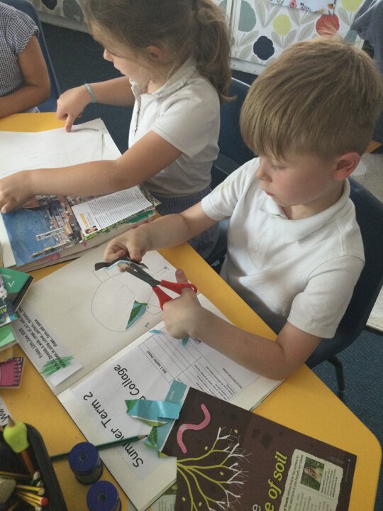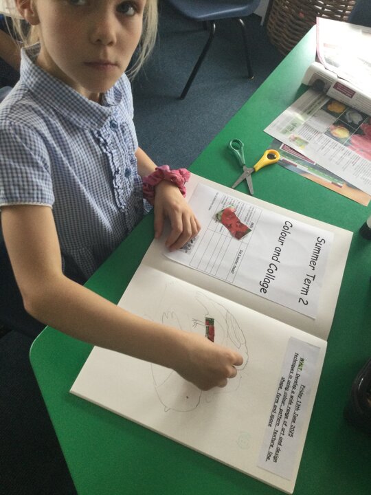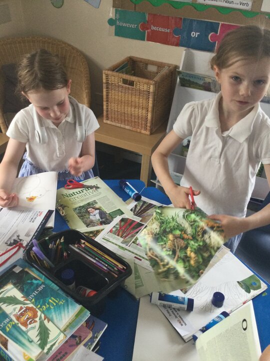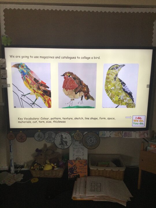 The children spent time drawing a bird, then using different colours from newspapers and magazines, created beautifully bright collages.