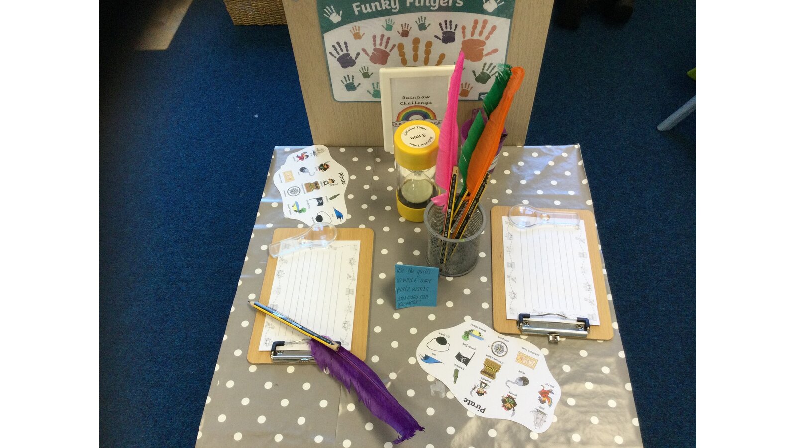 We have learnt some pirate lingo, facts about what they did, explored a variety of pirates themed activities and we had a go at writing with a quill for our literacy task!