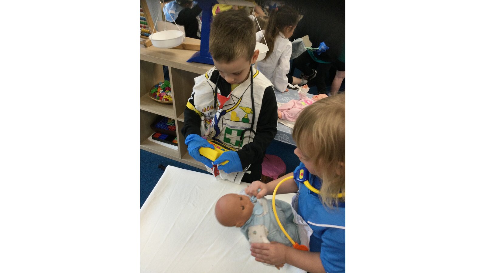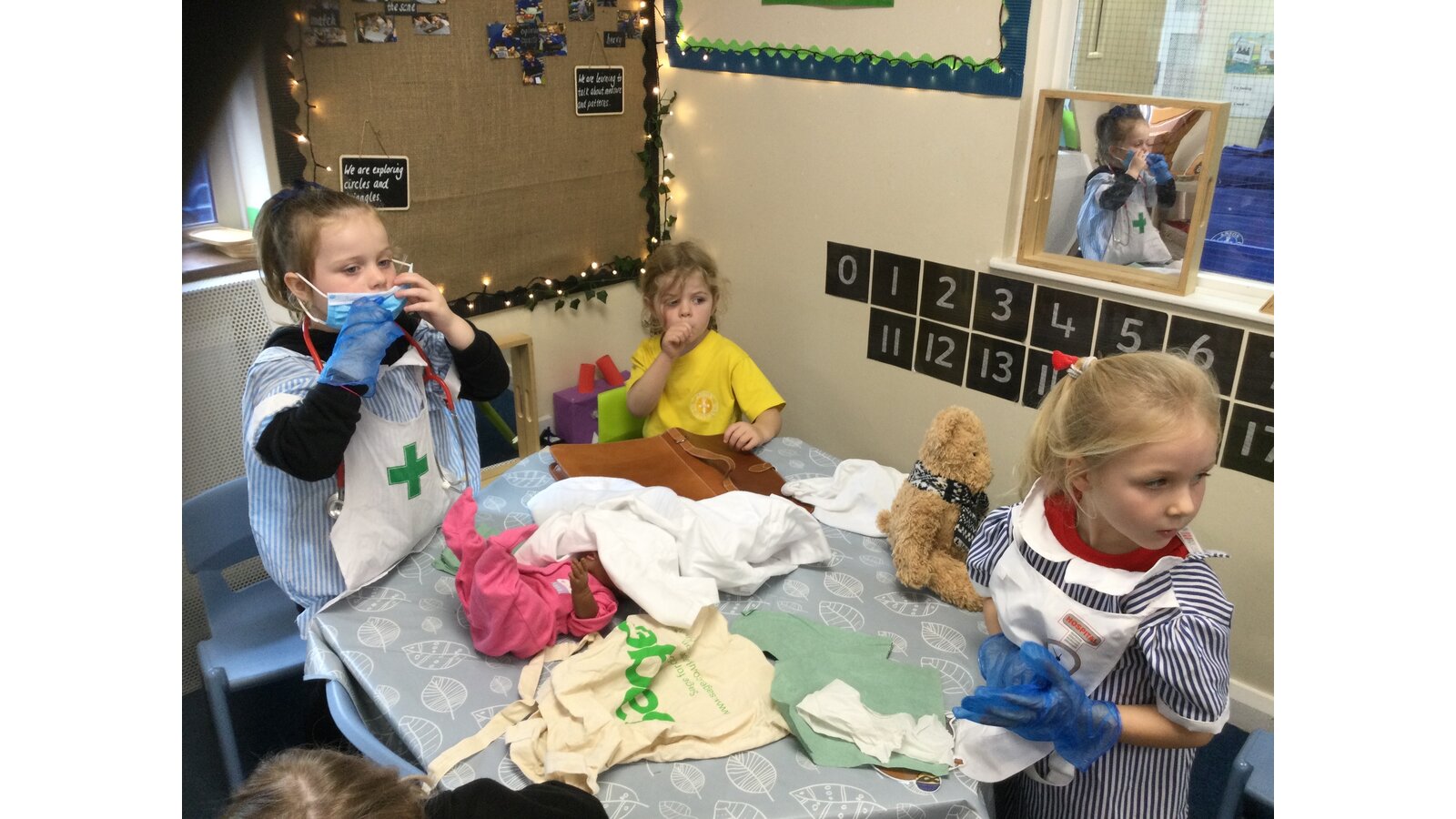 The children had a wonderful afternoon dressing up as doctors, nurses, paramedics and created a doctors surgery in the classroom tending to some poorly patient teddies and babies! The children also used our small world village to pretend to be ambulances responding to an emergency.