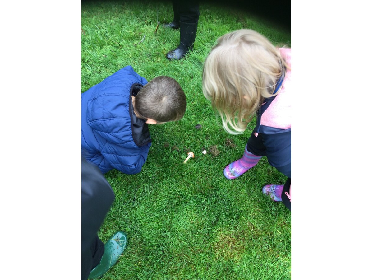 Class 1 went on an autumn walk around the school grounds to tick off the first signs of autumn. The children spotted orange, brown and red leaves, mushrooms, berries, sweet chestnuts and lots of leaves on the ground.
