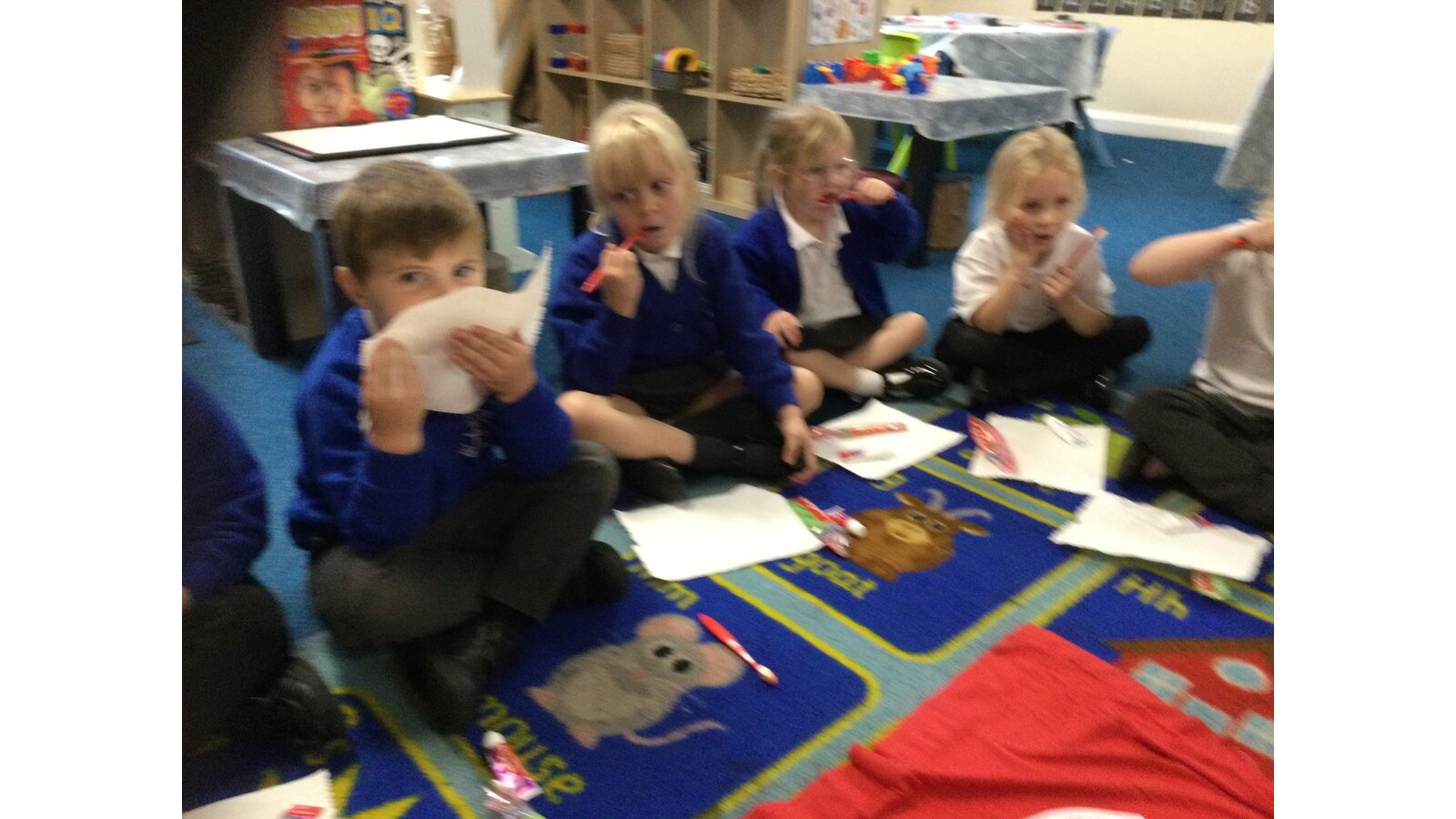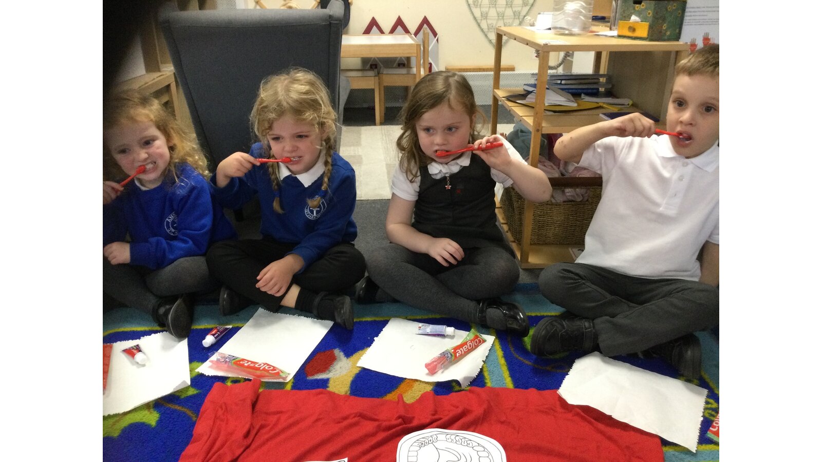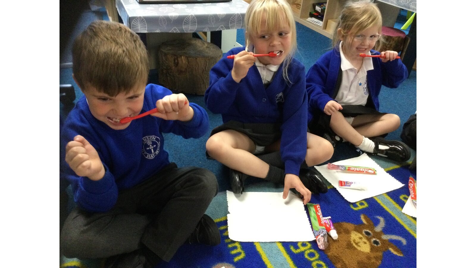 The children have embraced their learning of keeping our teeth healthy and we put everything we have learnt into practice and brushed our teeth at school using all of the techniques we have seen.
