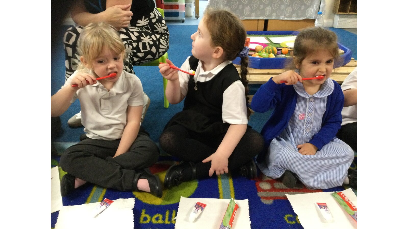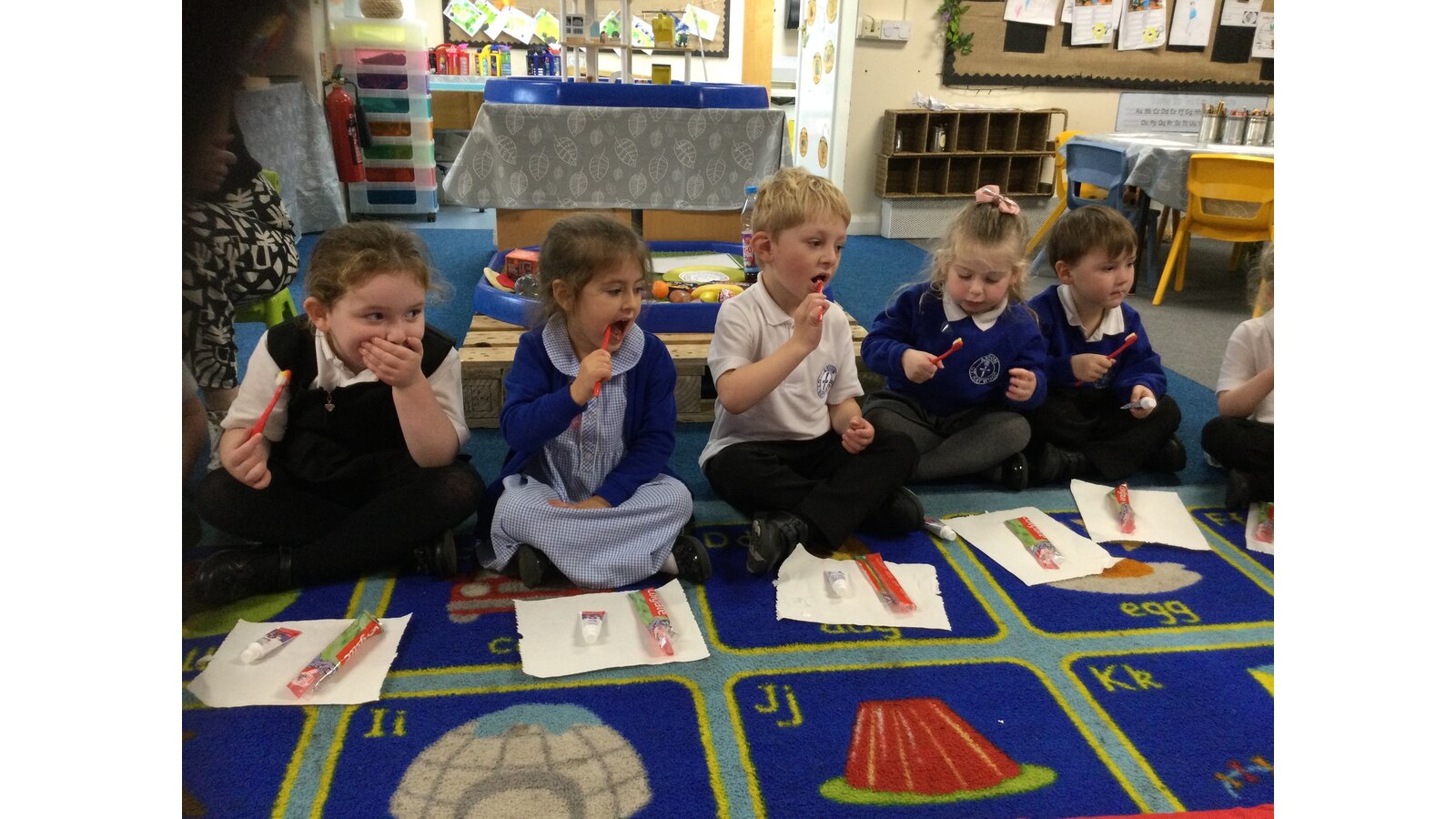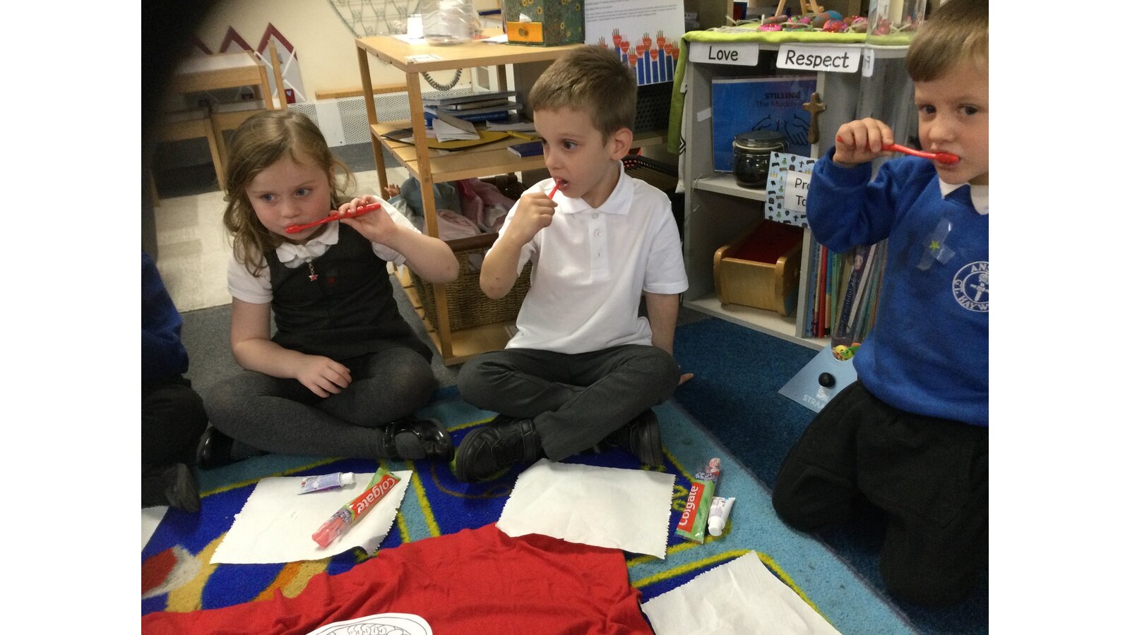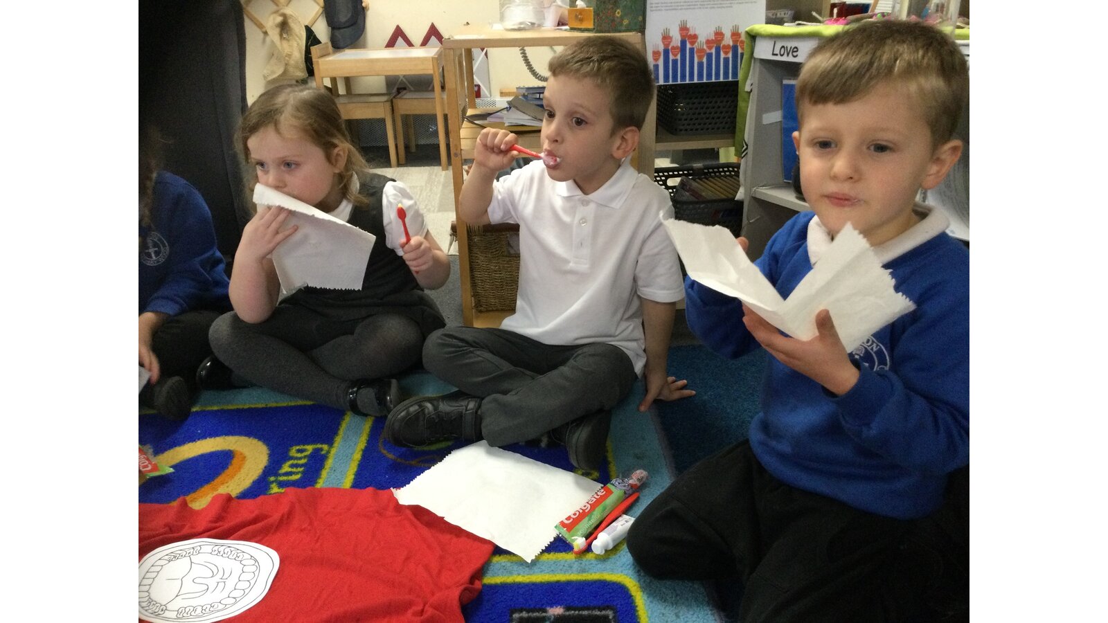 The children have embraced their learning of keeping our teeth healthy and we put everything we have learnt into practice and brushed our teeth at school using all of the techniques we have seen.