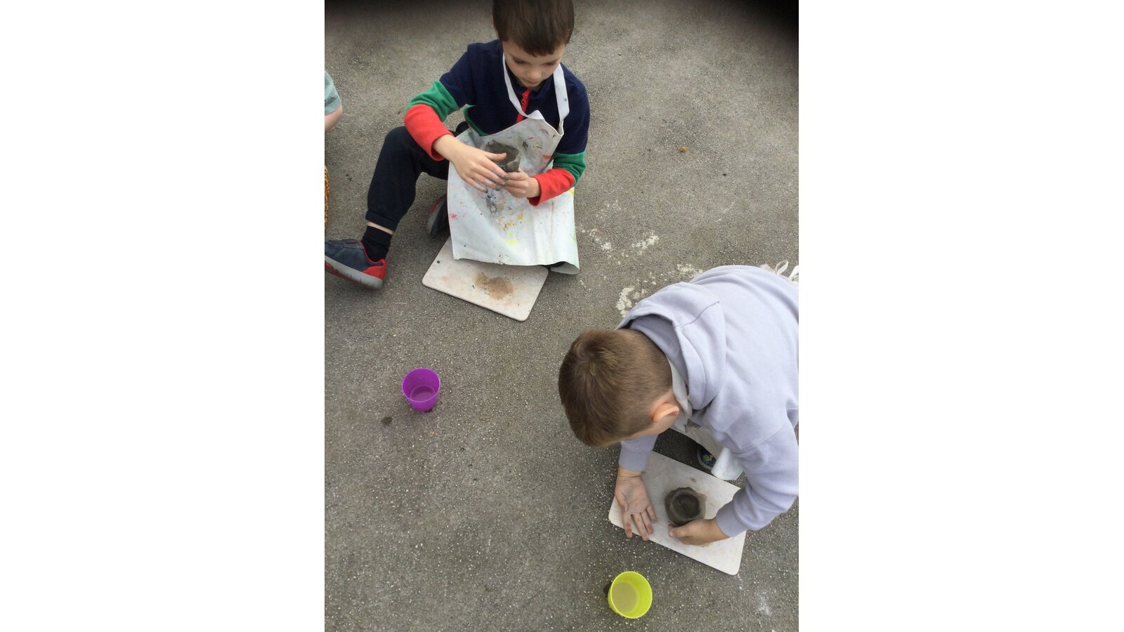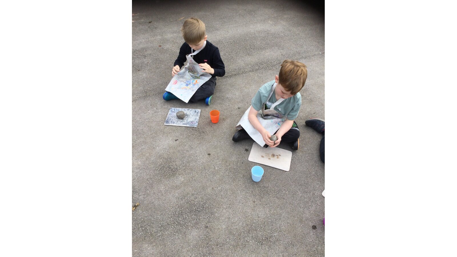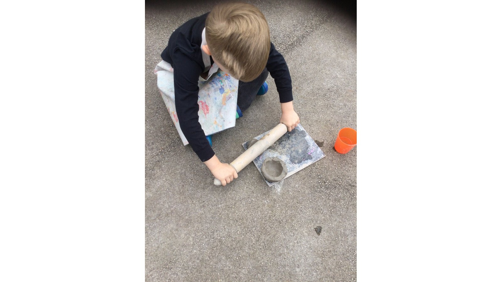This afternoon we took our art lesson outside. The children got to grips with clay modelling and did a fantastic job of creating their own ‘Wedgwood inspired’ pots.