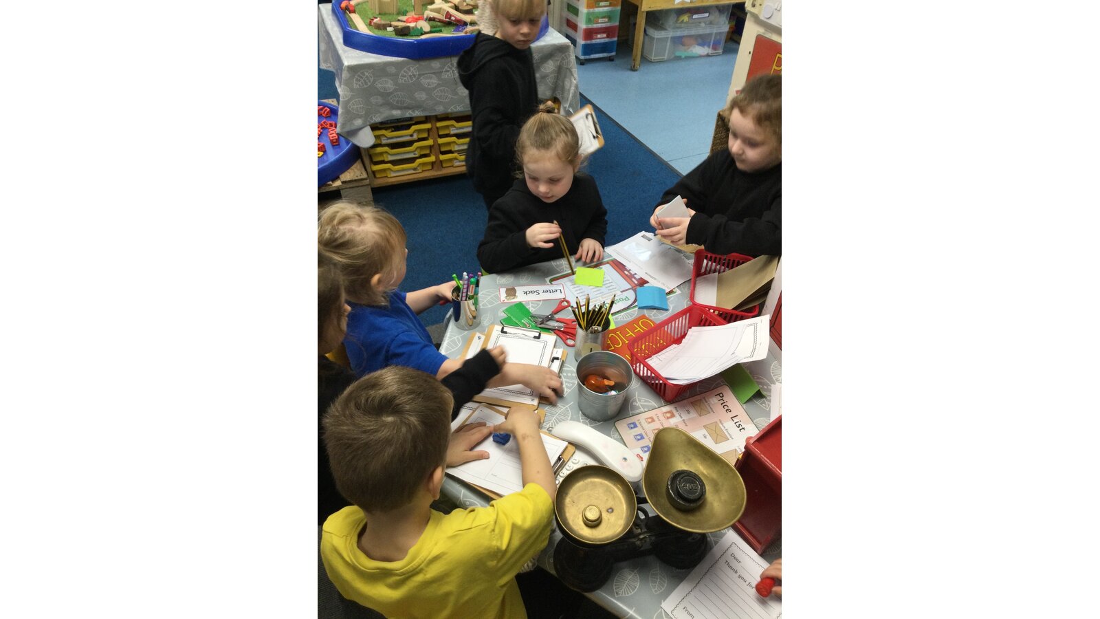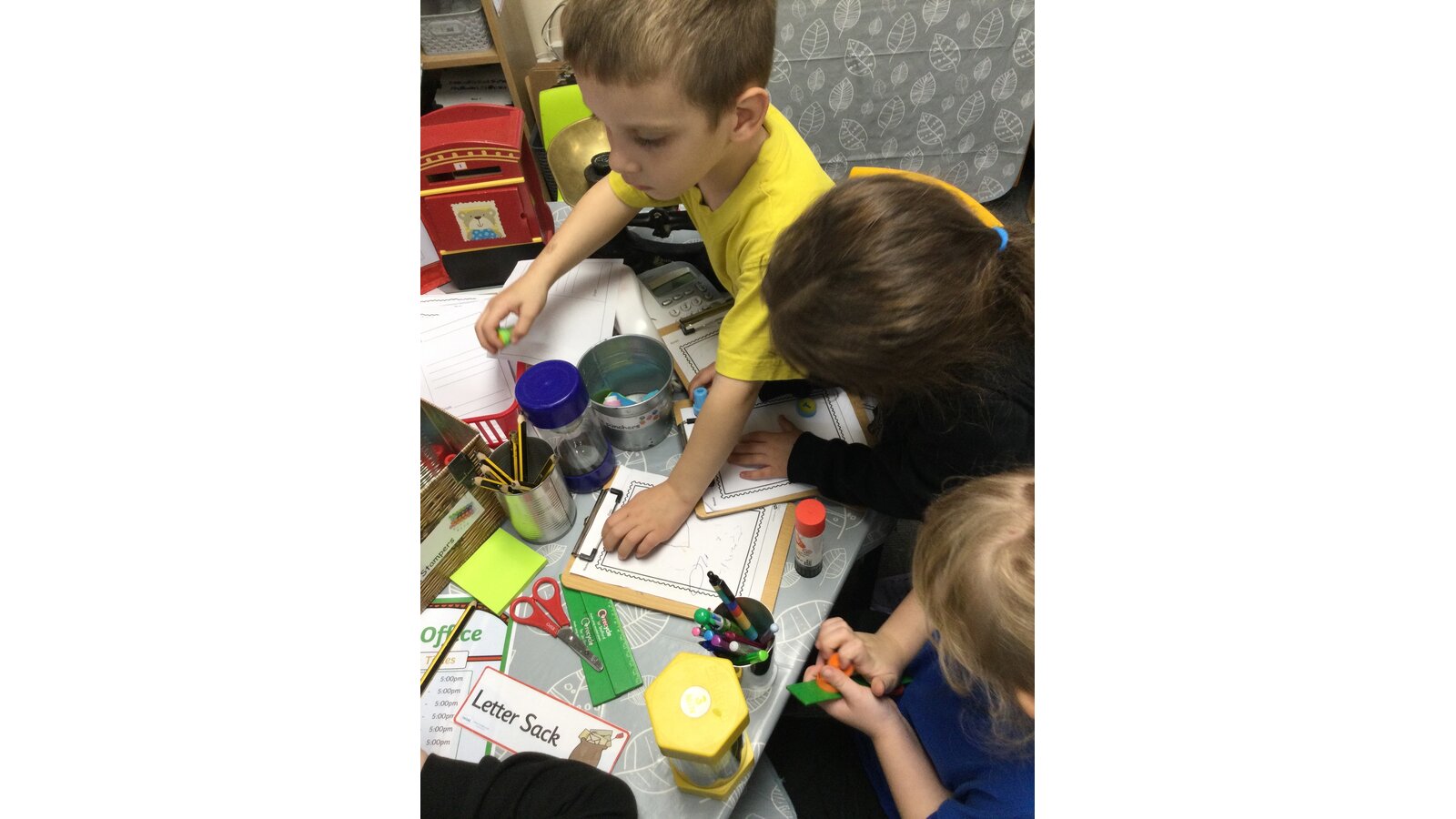 We created our own post office in our classroom and have been enjoying writing letters and role playing being postal workers.