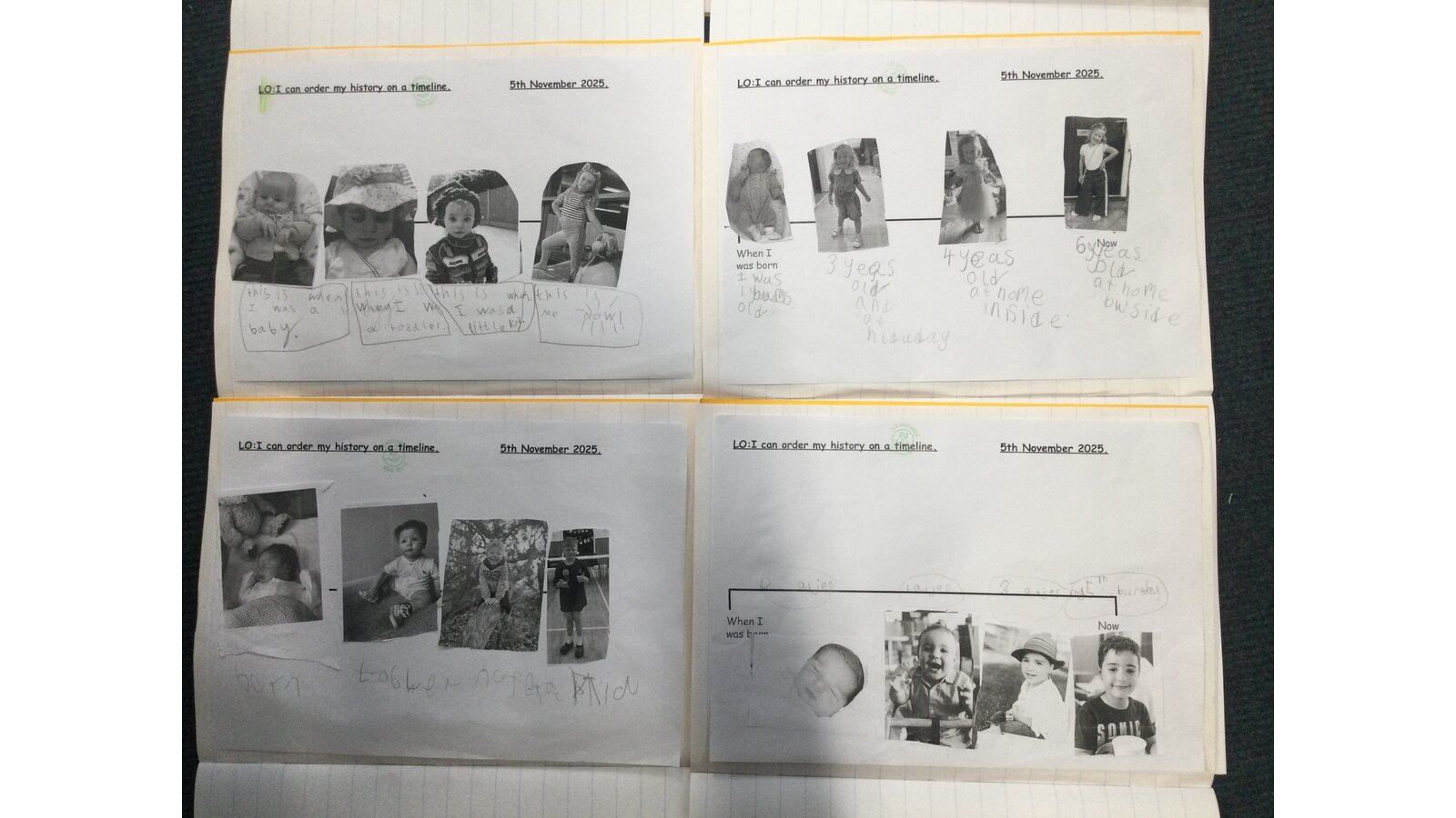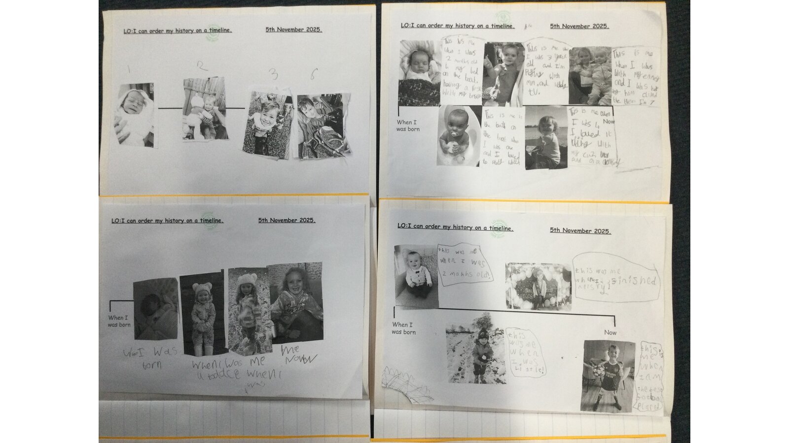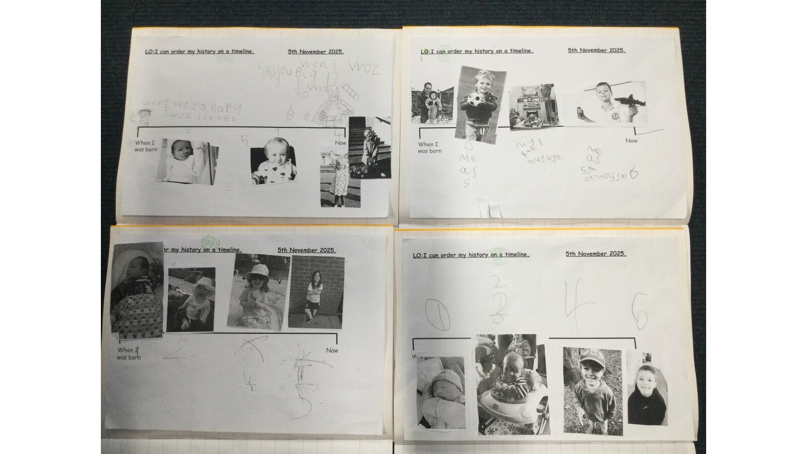 The children loved plotting their own history on their timelines yesterday! They loved sharing their history with the class; sharing memories and discussing their photos.