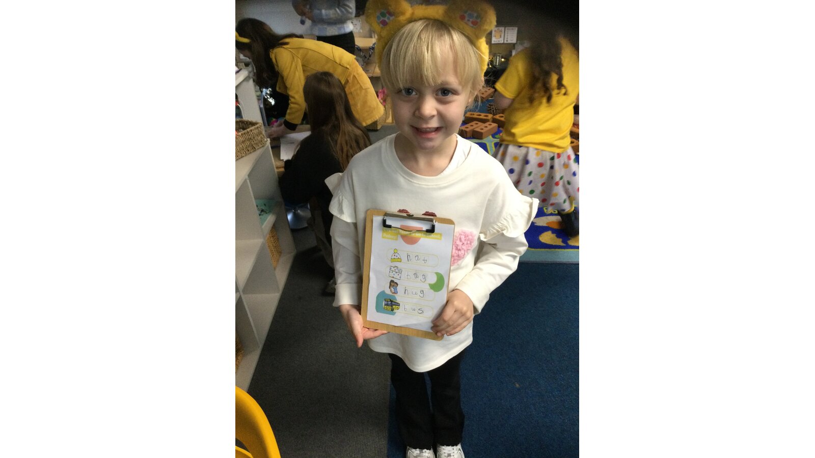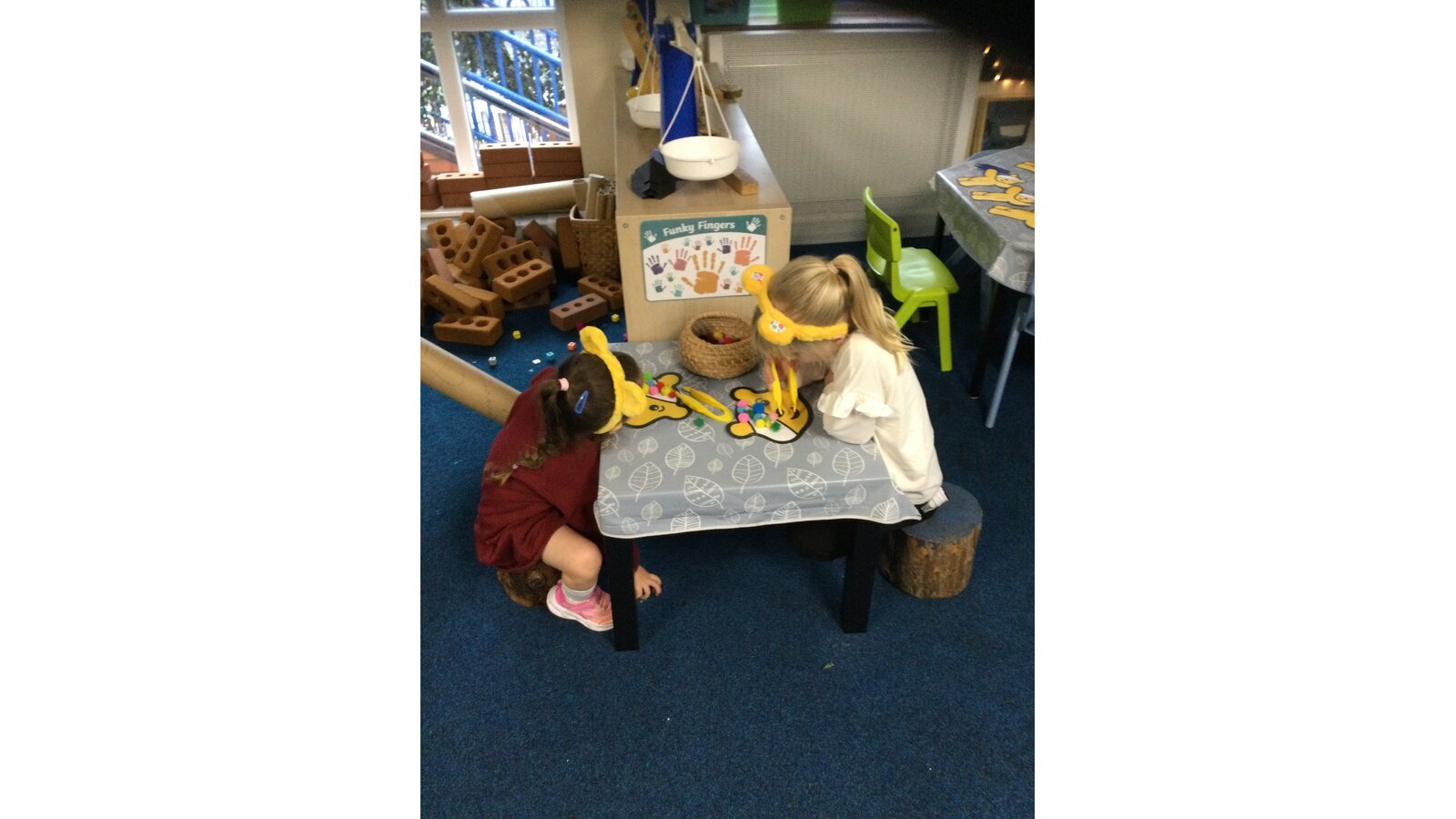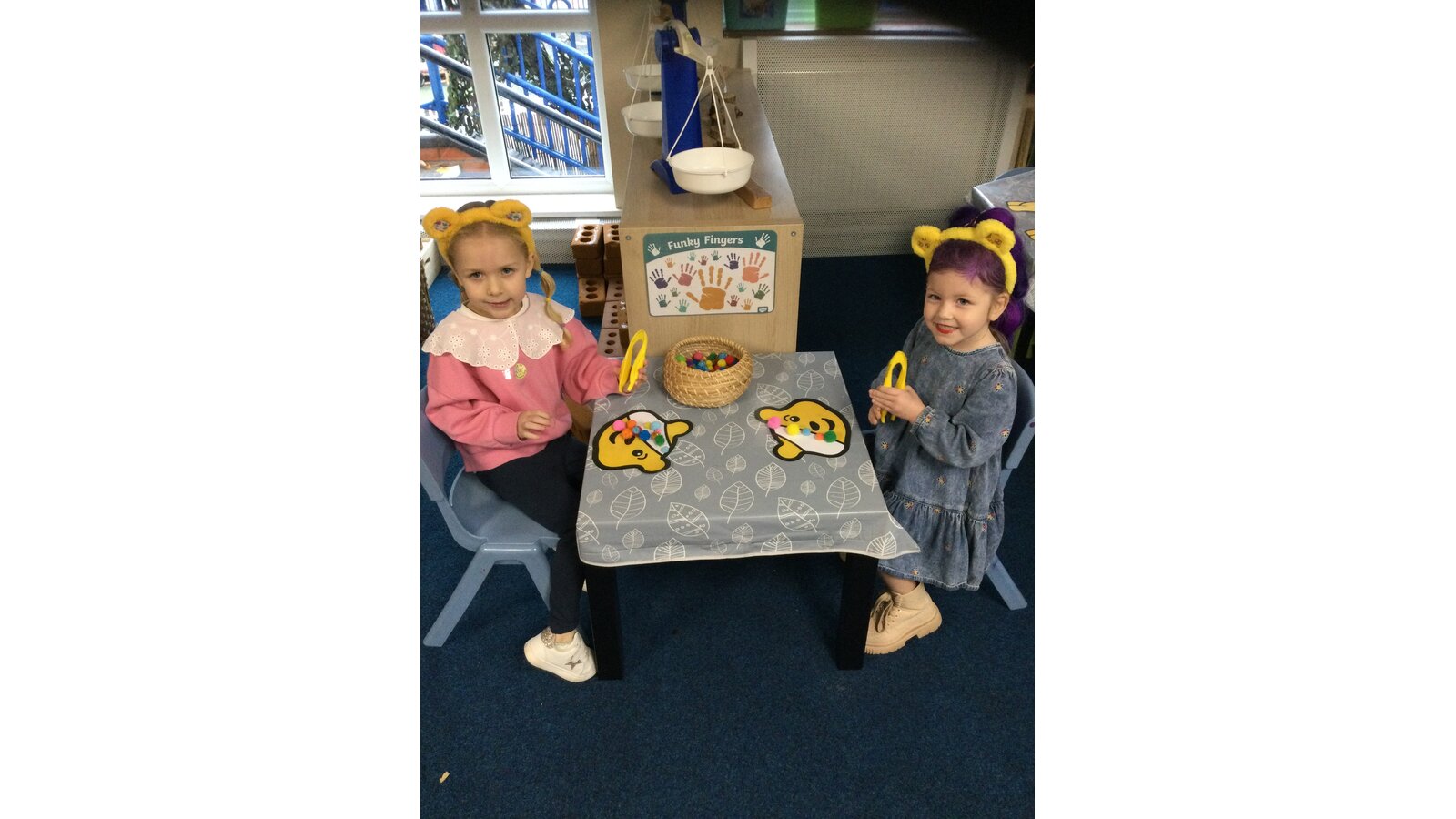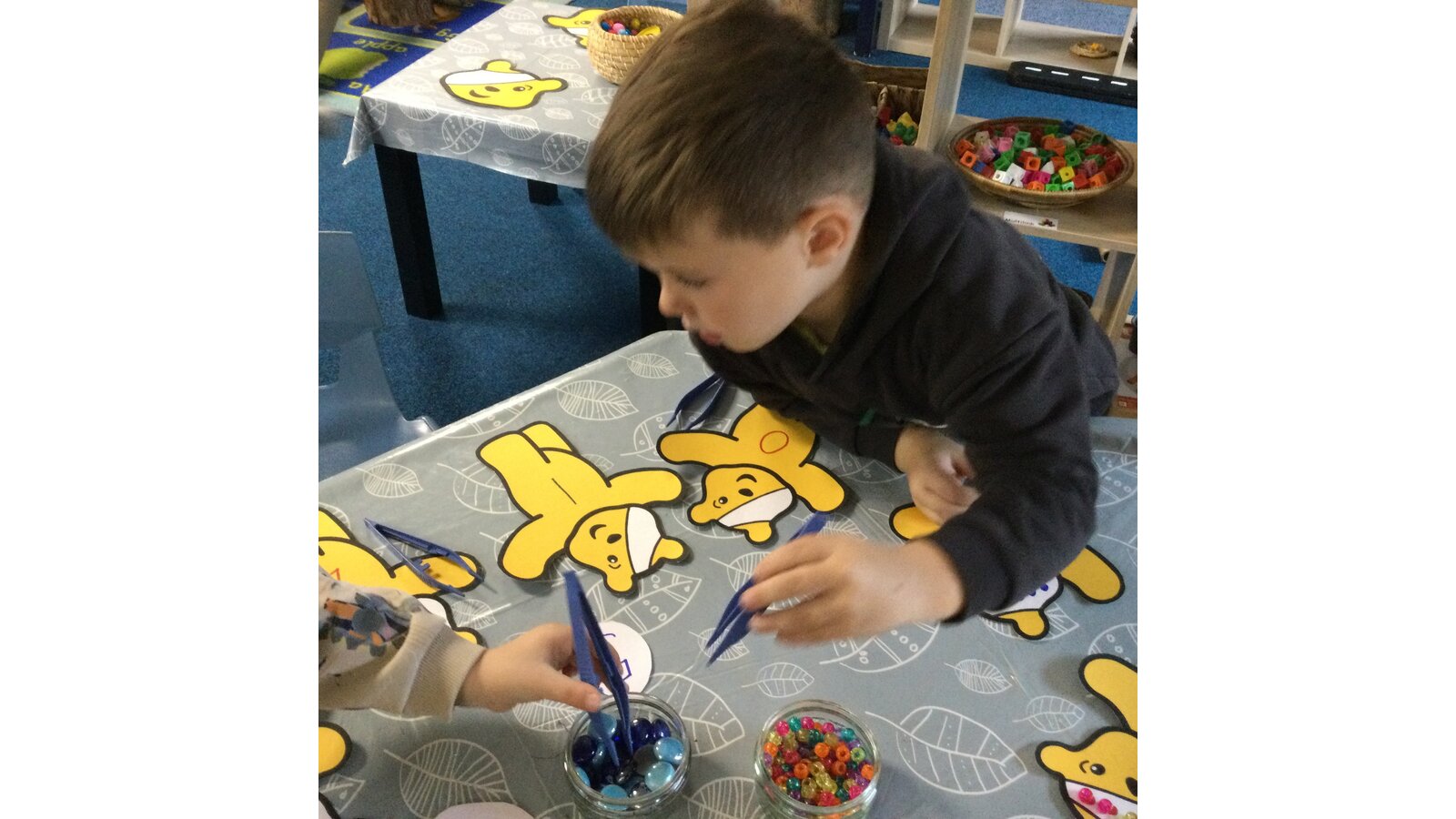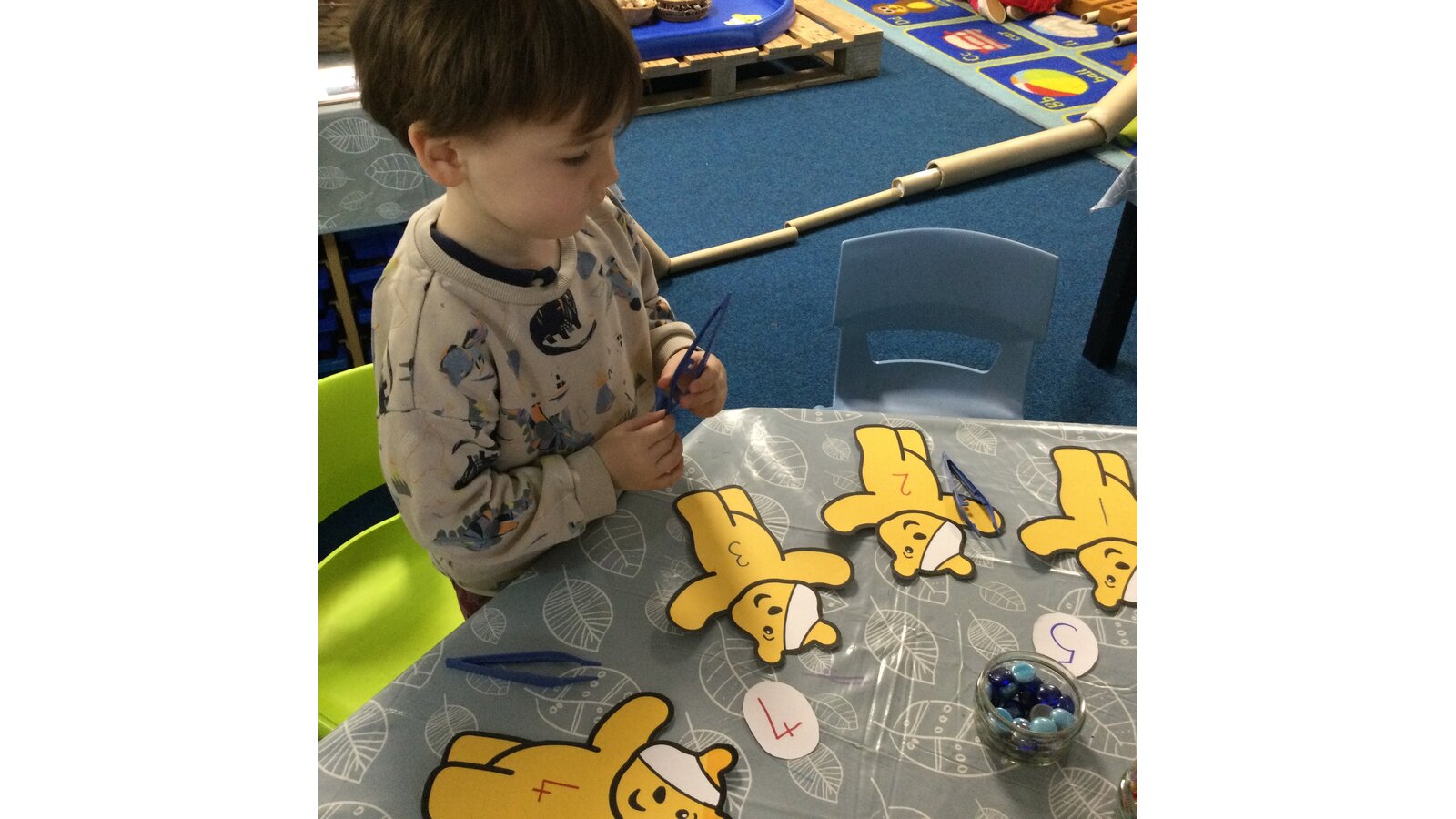 The children have helped Pudsey find his missing spots from his bandana and write his list of things needed for school using their phonic skills. They have used their number recognition to make sure each Pudsey had the correct number of spots in the maths area and that each Pudsey was coloured in the correct colours at our creative table.
