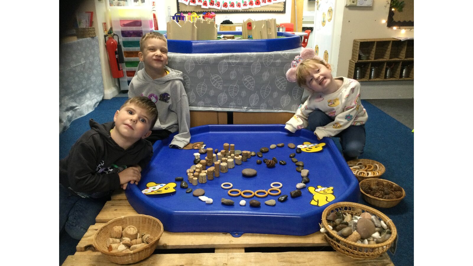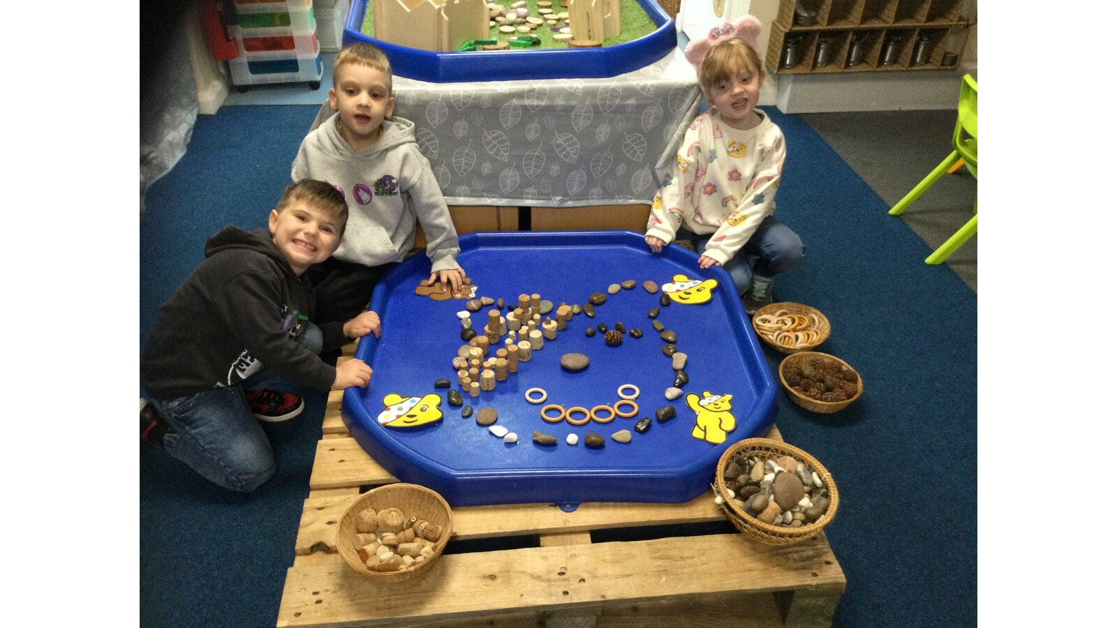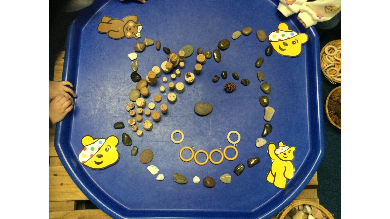 The children have also worked together to create a large and amazing Pudsey Bear face using our loose parts, carefully choosing a loose part to create each aspect.