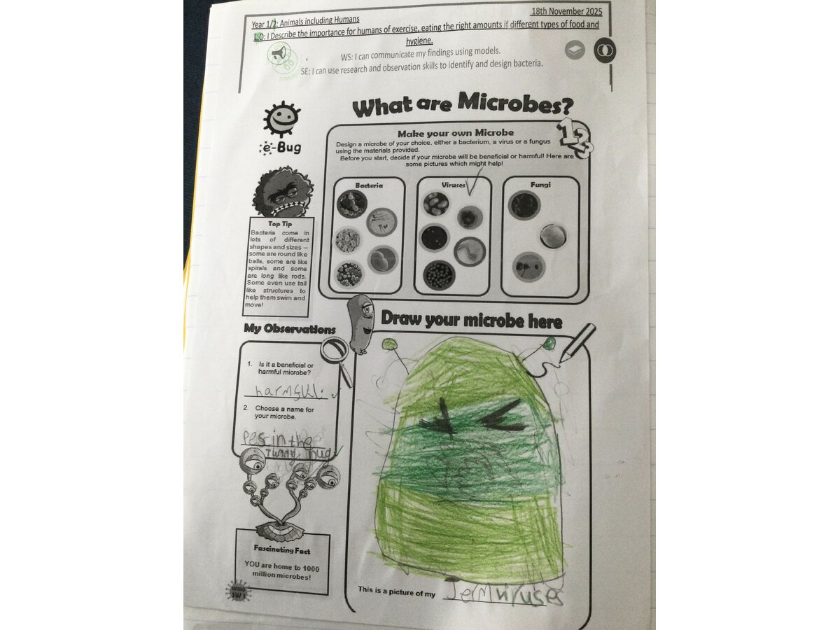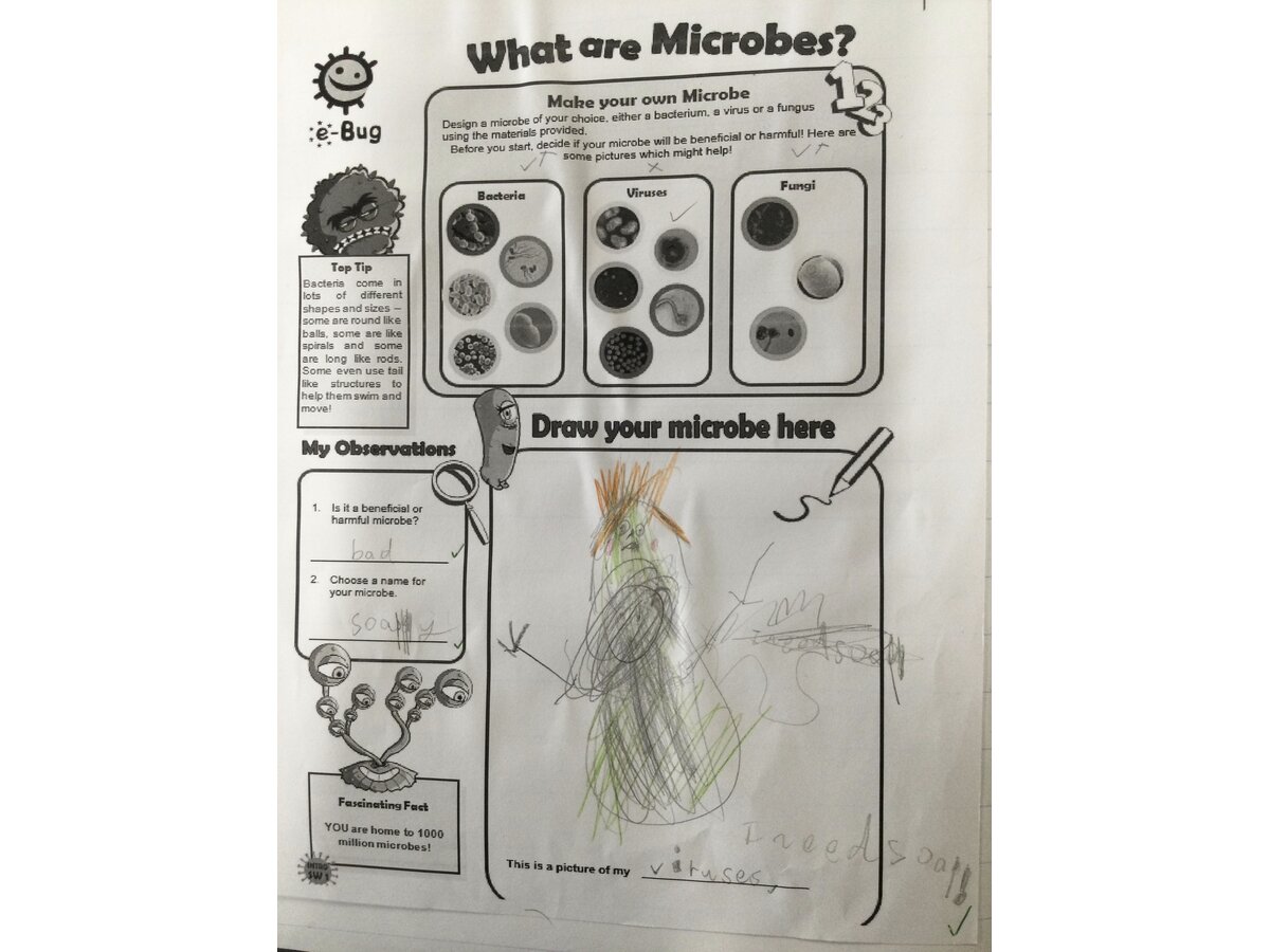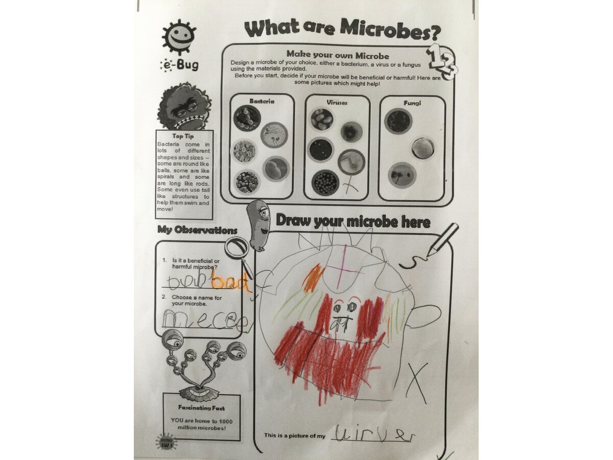 Class 2 have loved designing their own microbes this afternoon. We’ve had a whole host of bacteria, viruses and fungi!