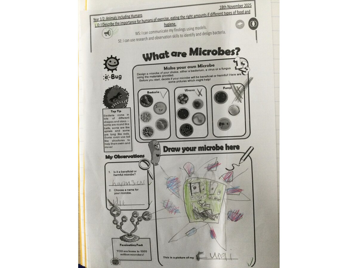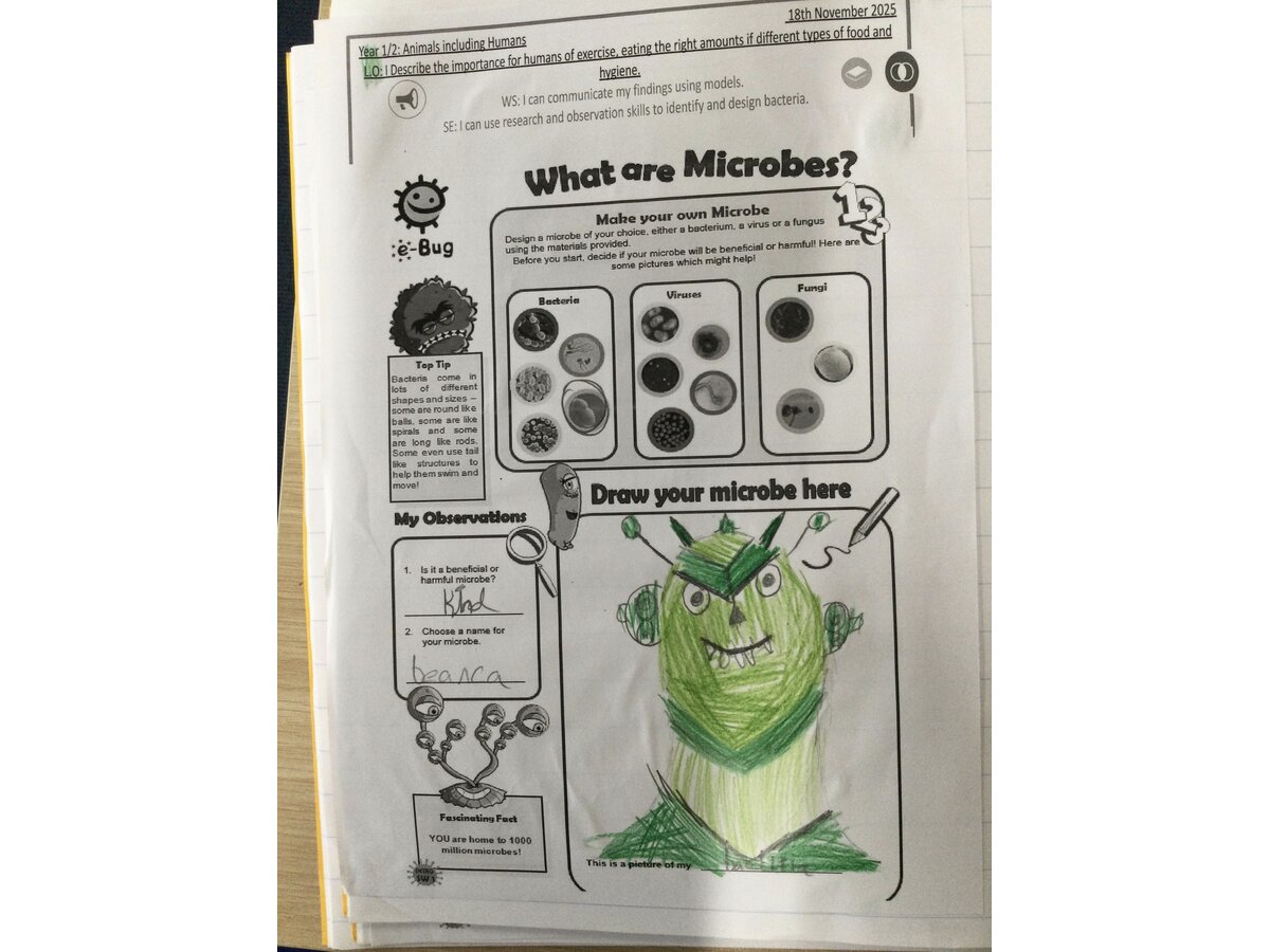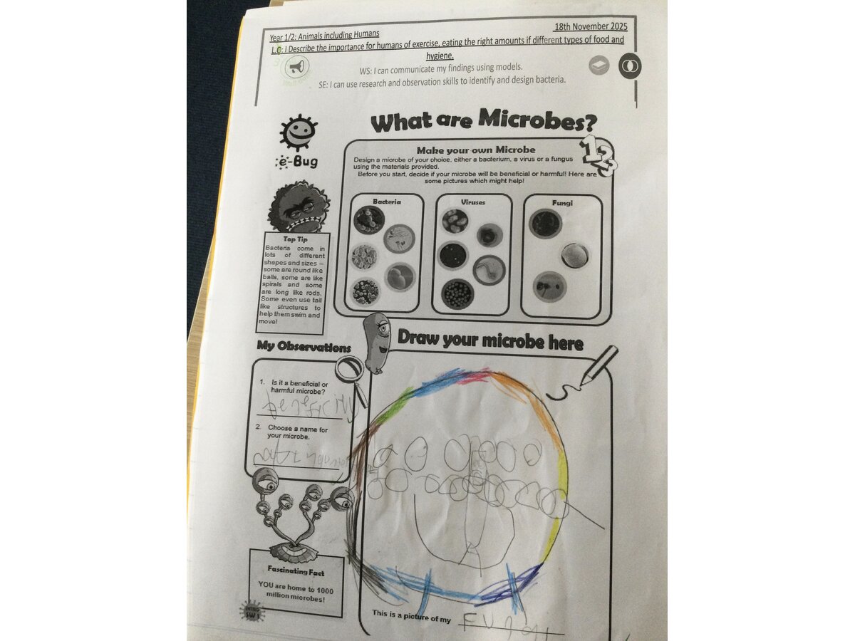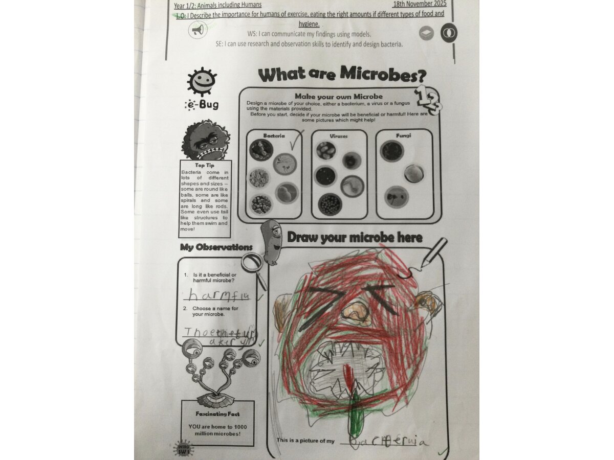 Class 2 have loved designing their own microbes this afternoon. We’ve had a whole host of bacteria, viruses and fungi!
