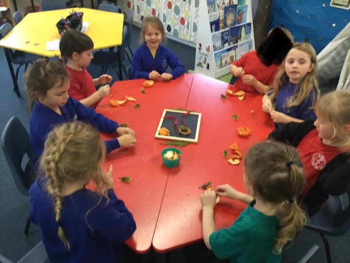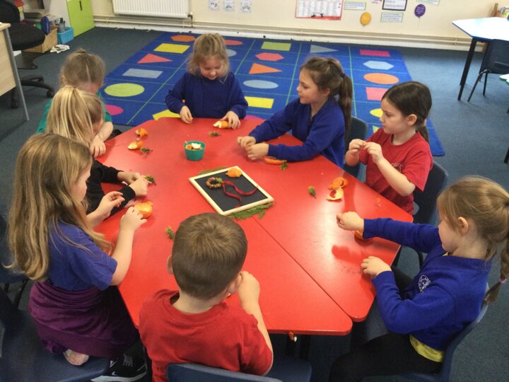 Class 2 Arts and Crafts Club have been getting their festive jingle on this lunchtime. We’ve been busy making these beautiful orange peel mini wreaths. Don’t they look fabulous? The classroom smells delightful too!