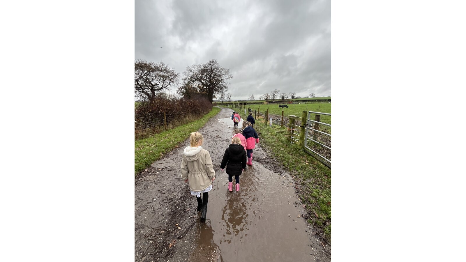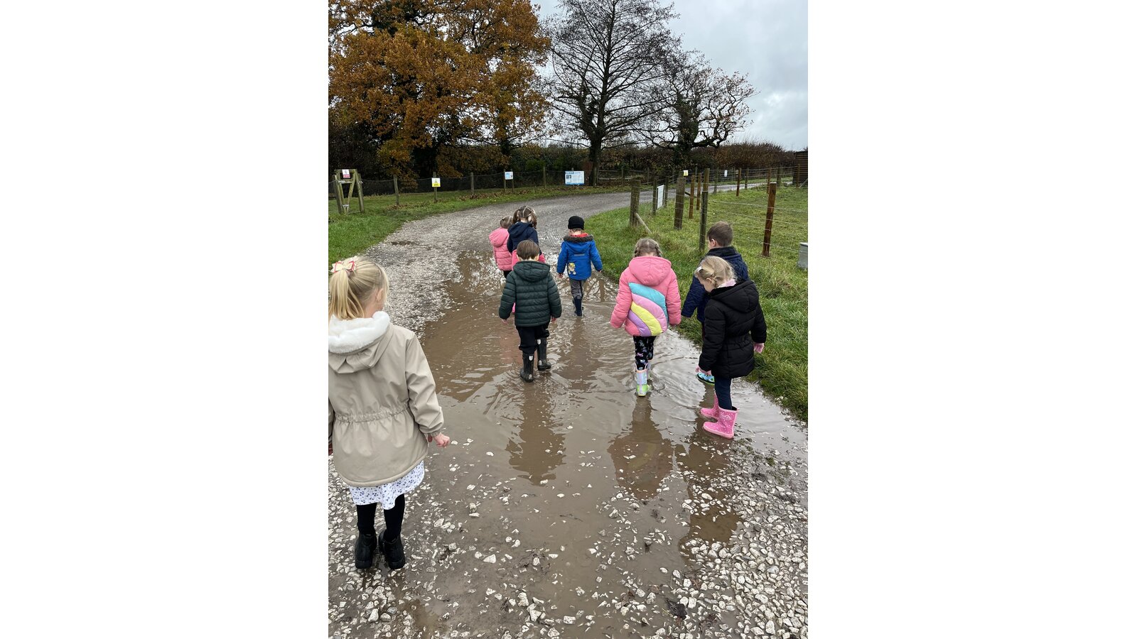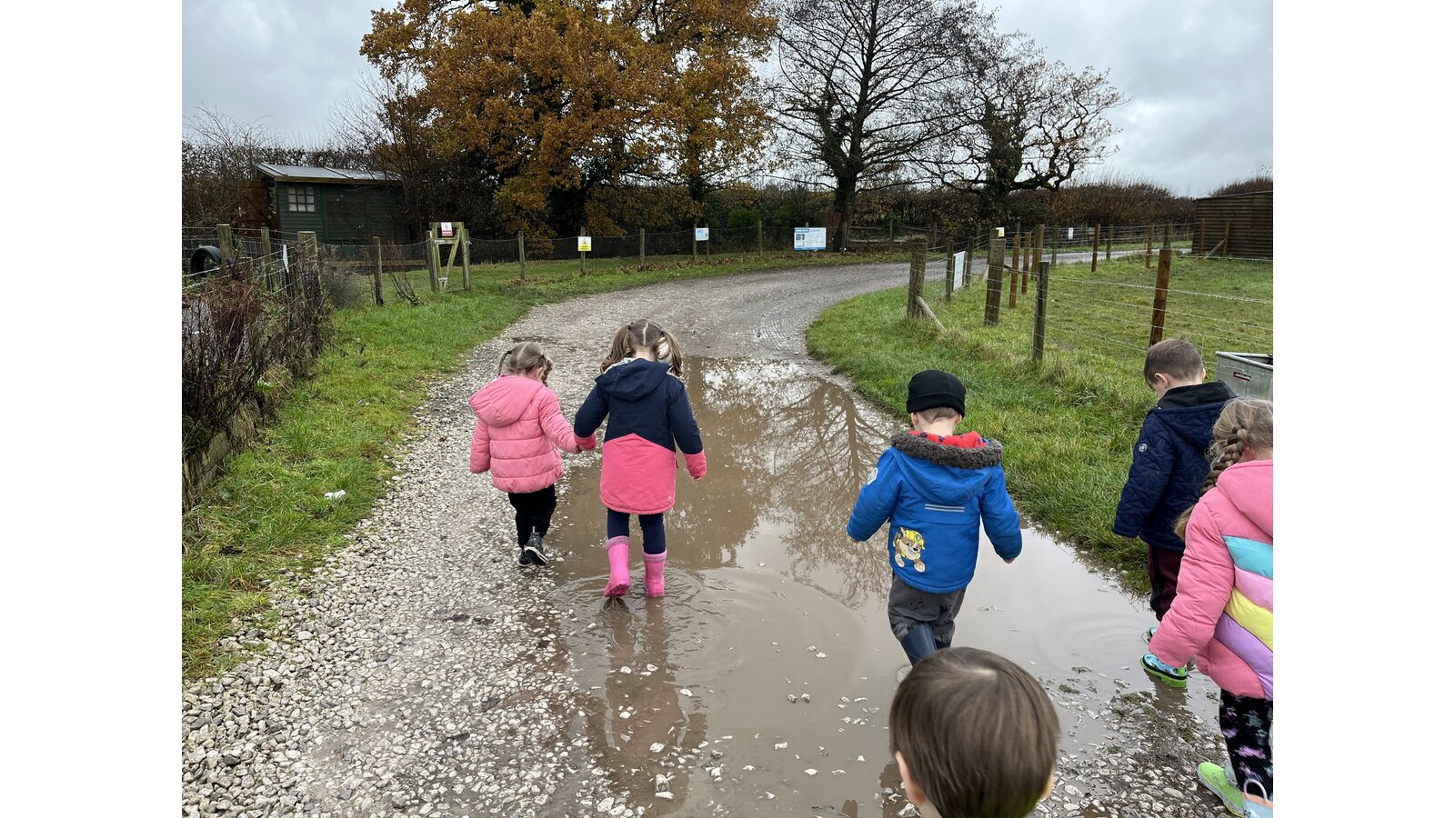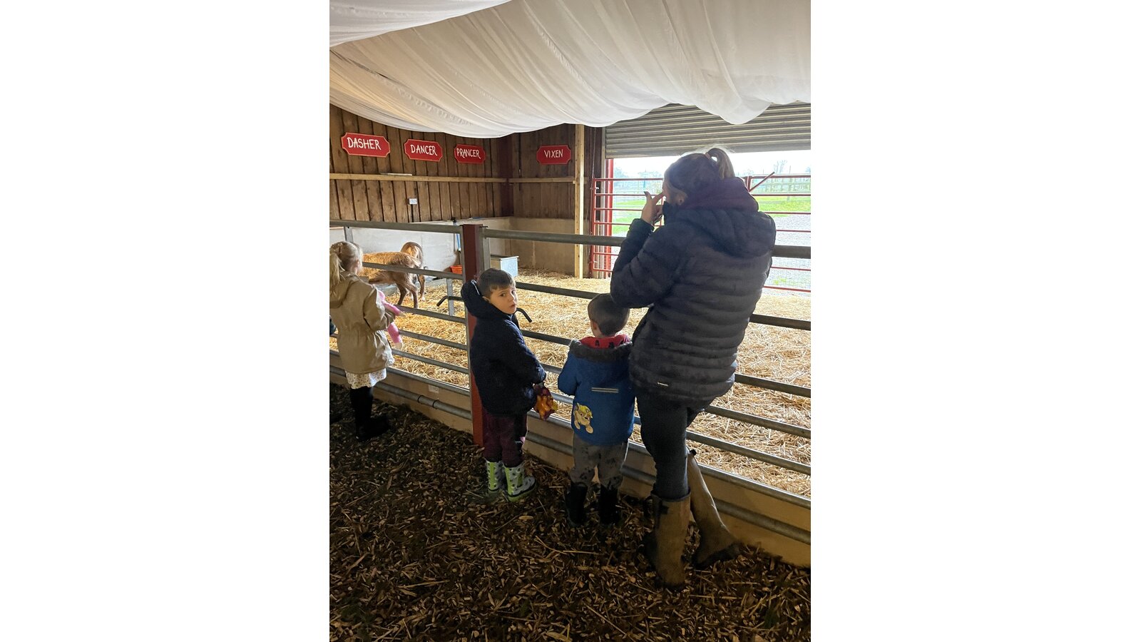 After our visit to see Father Christmas and his helpers, the children enjoyed exploring the indoor play area and having their picnic lunch. We were incredibly lucky with the weather after lunch and went on a fabulous (rain free) and animal filled walk around the farm and all enjoyed a little bit of splashing in the puddles!