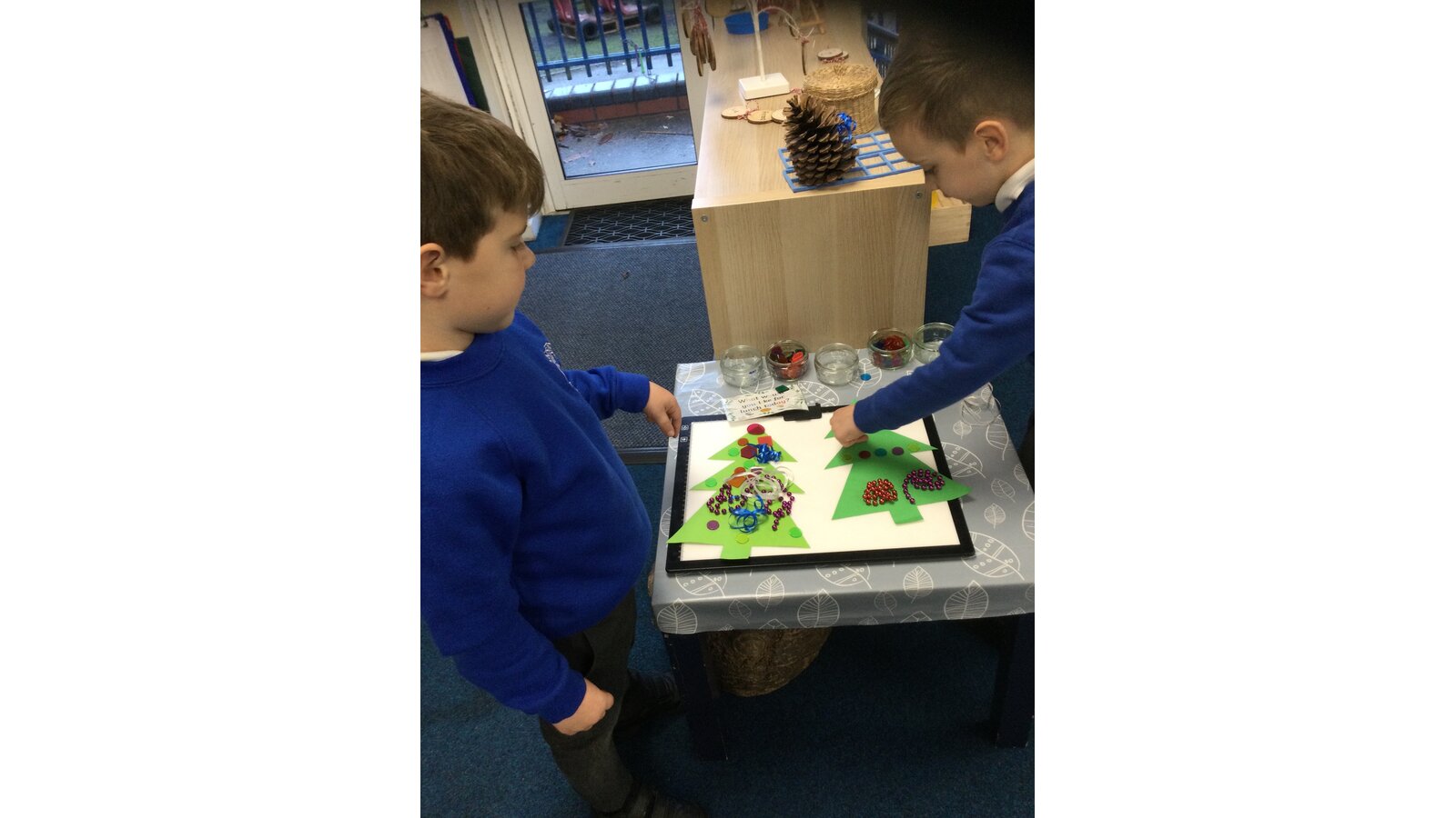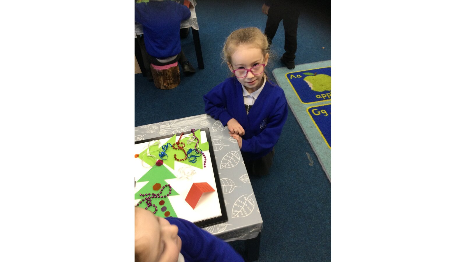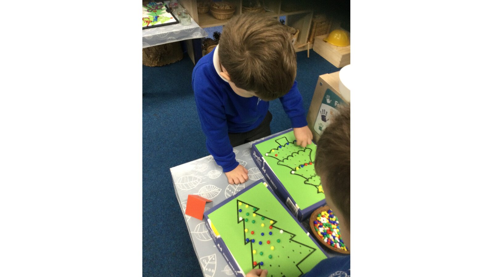 Class 1 have enjoyed all of our Christmas activities this week. They have been practicing their fine motor skills decorating Christmas trees. We have used our maths knowledge by rolling the dice and putting the correct number of shapes on the tree. They have used their wonderful phonics knowledge to write lists for the elf’s workshop. Fantastic work class 1.