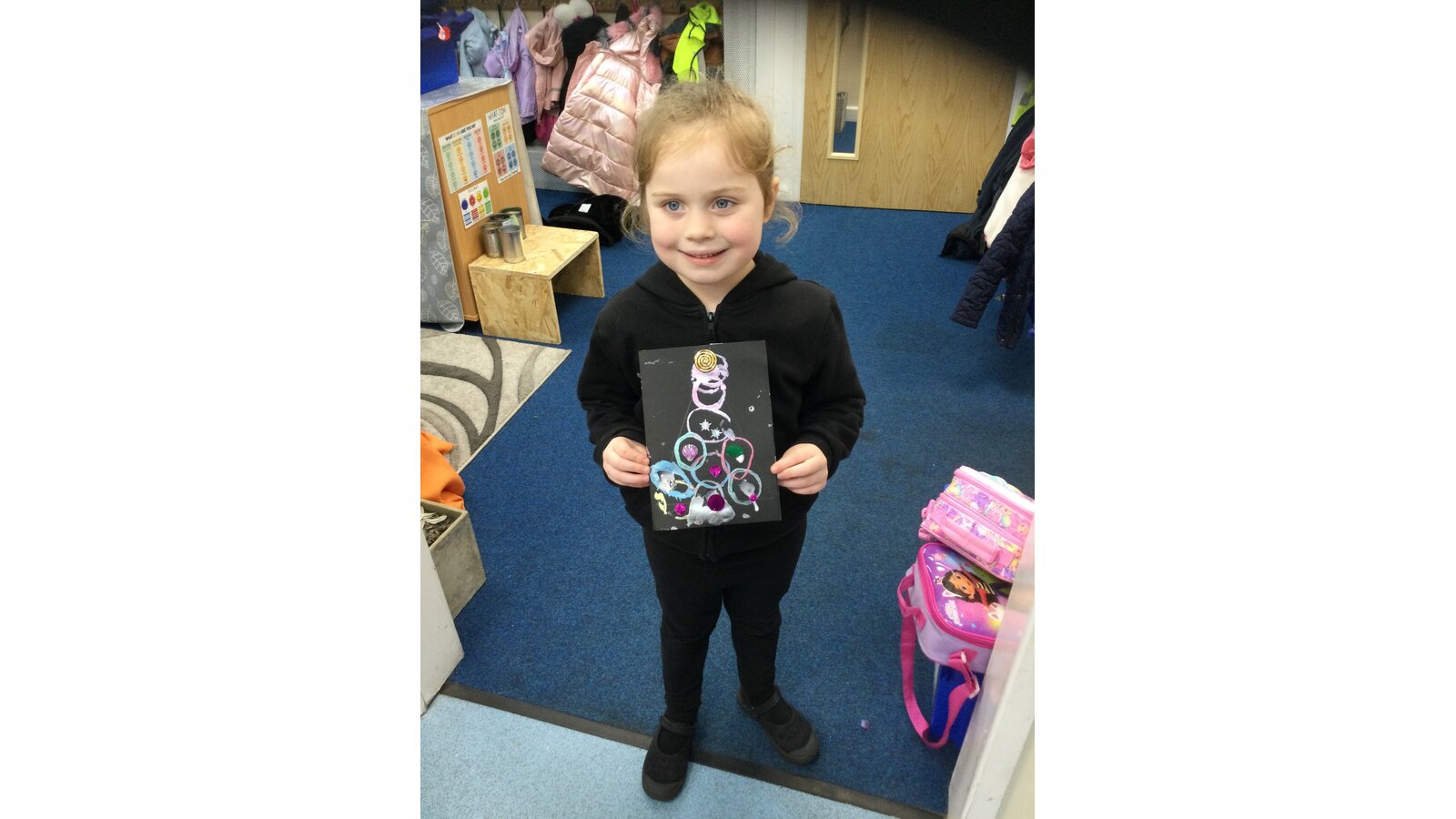 All the children worked so carefully using their printing skills to design and create their Christmas tree on the front of their card. The children then used cotton buds to carefully place glue dots to enable them to add decorations to their trees in their own unique design.