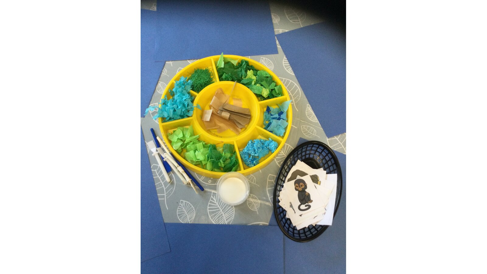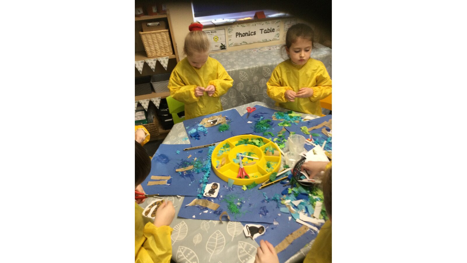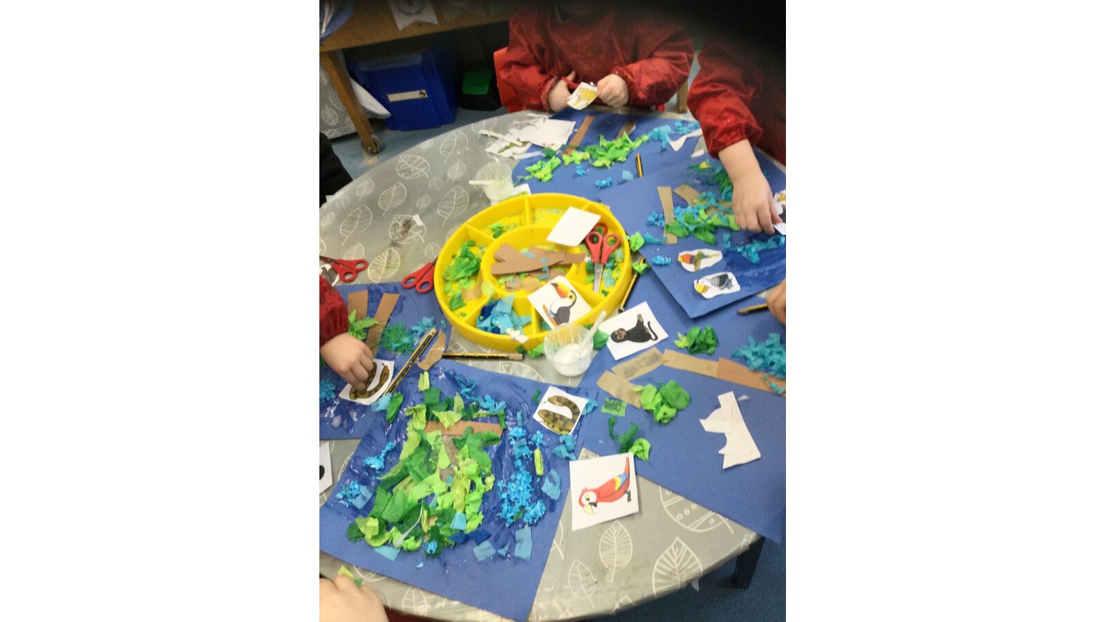 This week we have been learning about animals that would live in the jungle. We read the story of Rumble in the Jungle and thought about the habitat those animals would live in. Then we went for a ride on our magic classroom carpet and landed in the jungle. We heard so many different animal noises, the wind in the trees and a waterfall. When we landed back in our classroom, the children all made their own jungle scenes. Well done everyone!