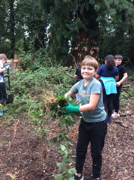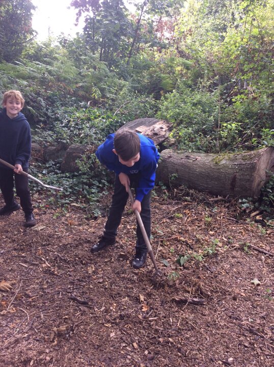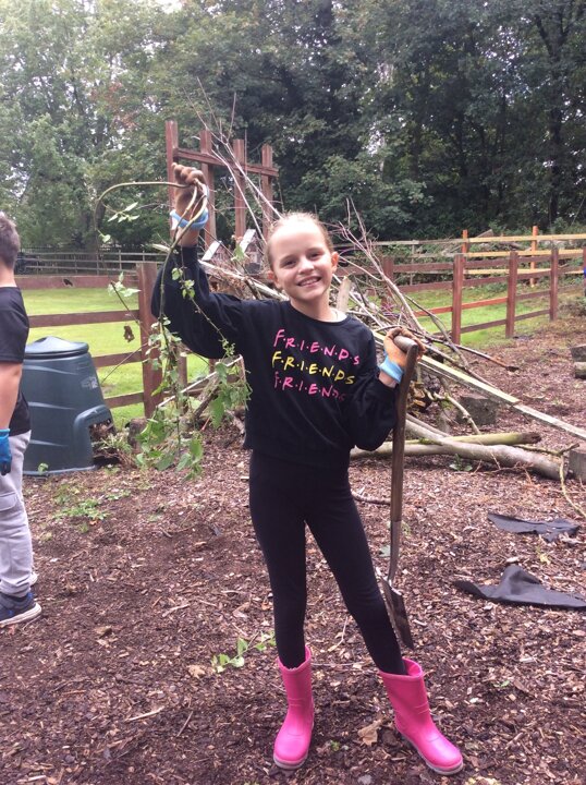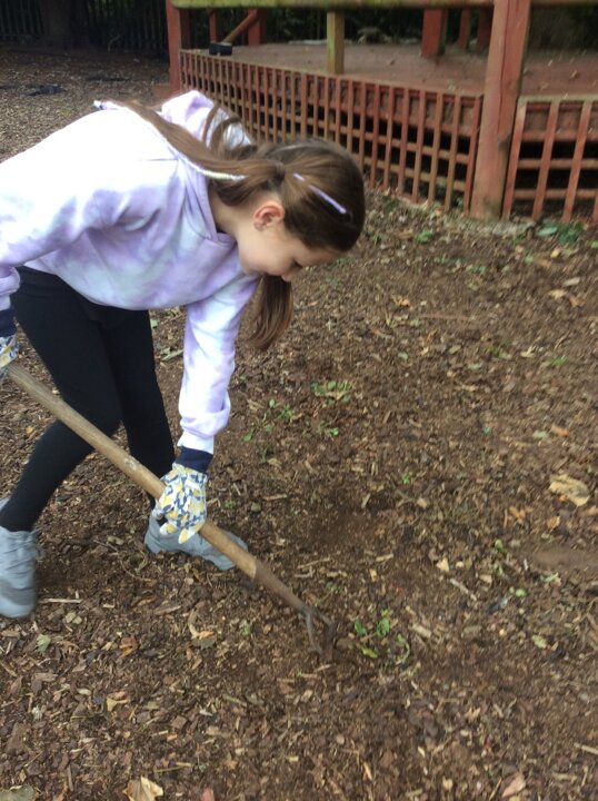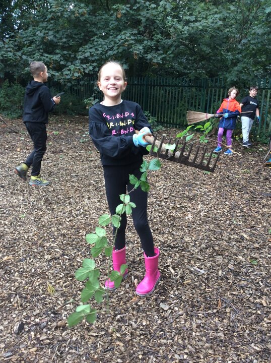 Class 4 - tidying up the garden - Autumn