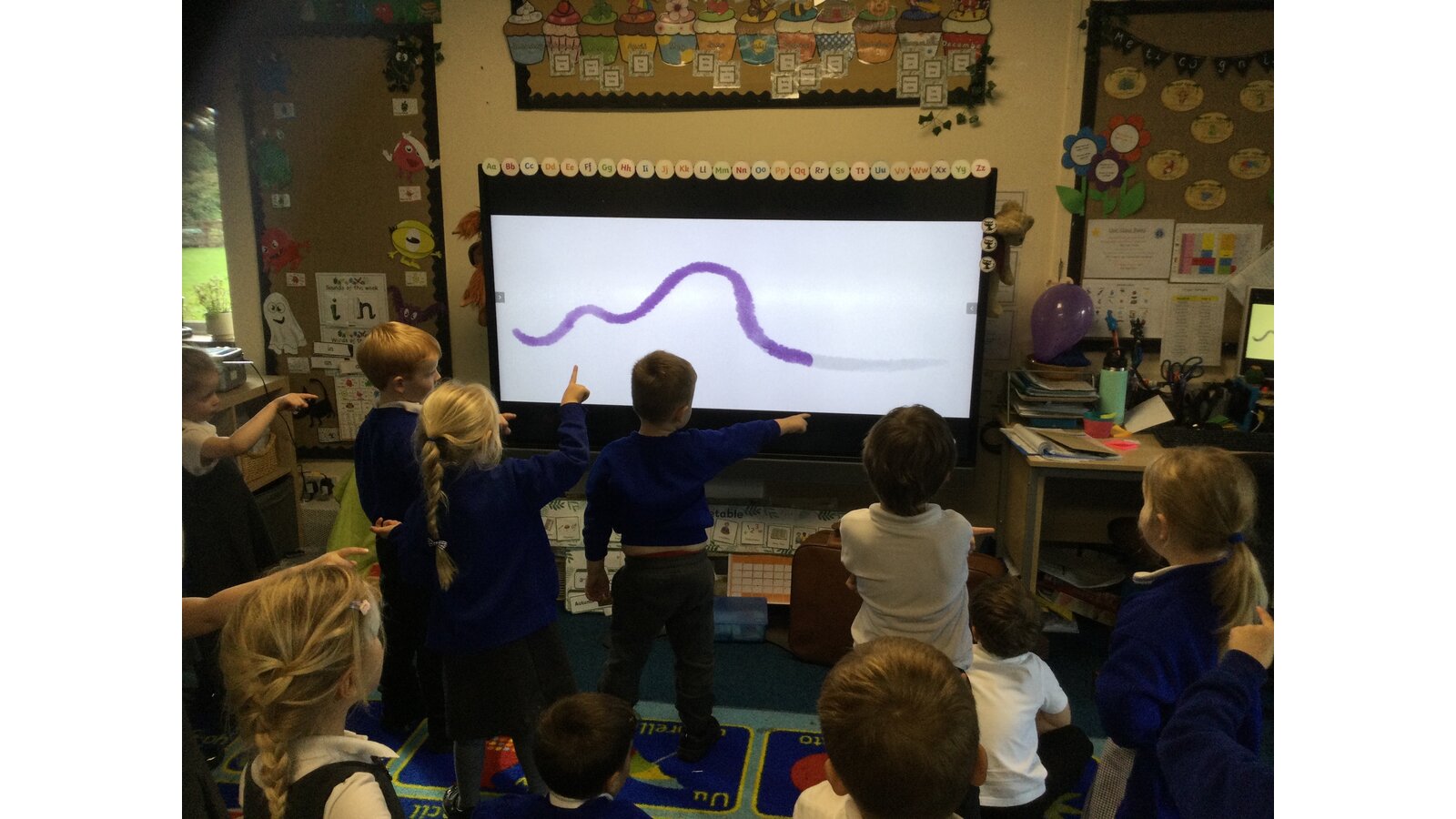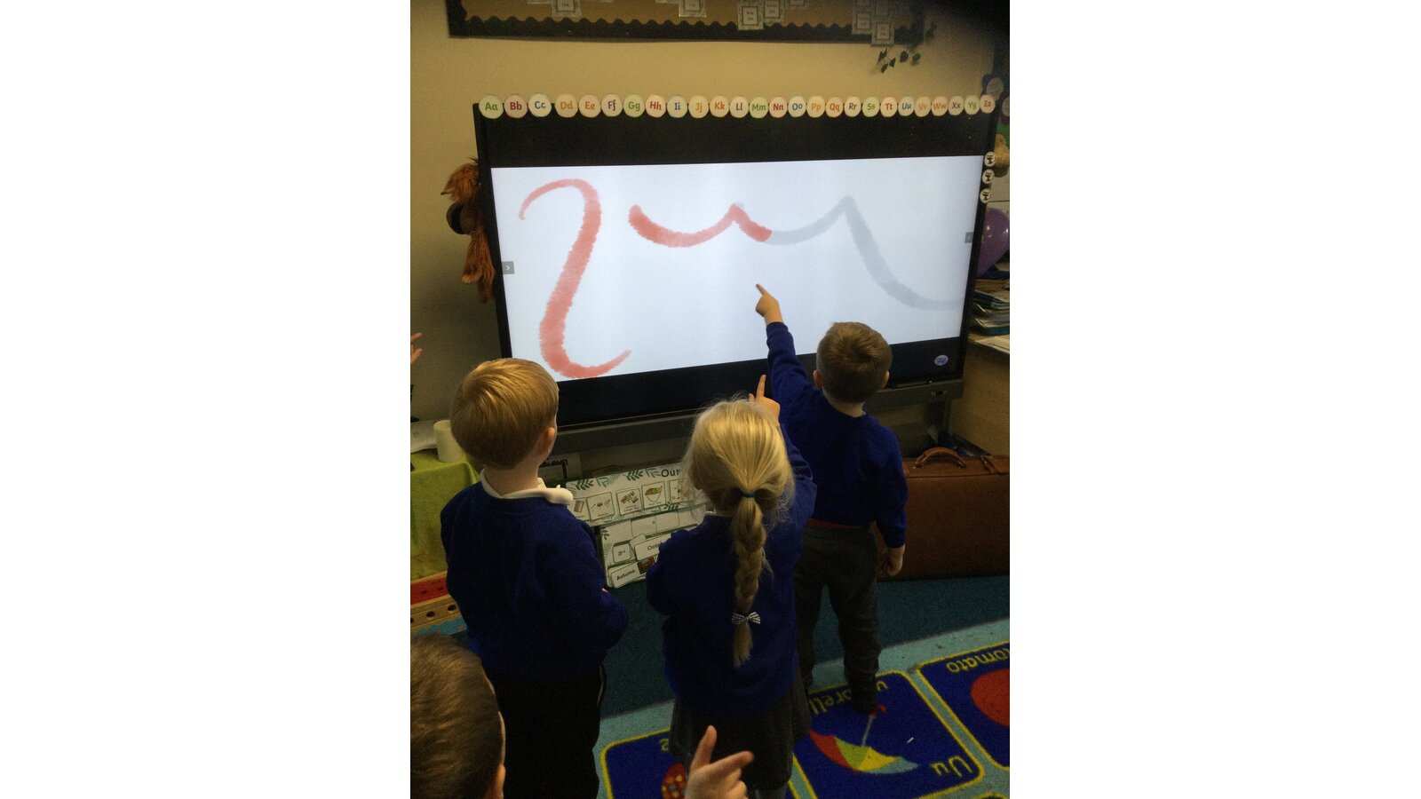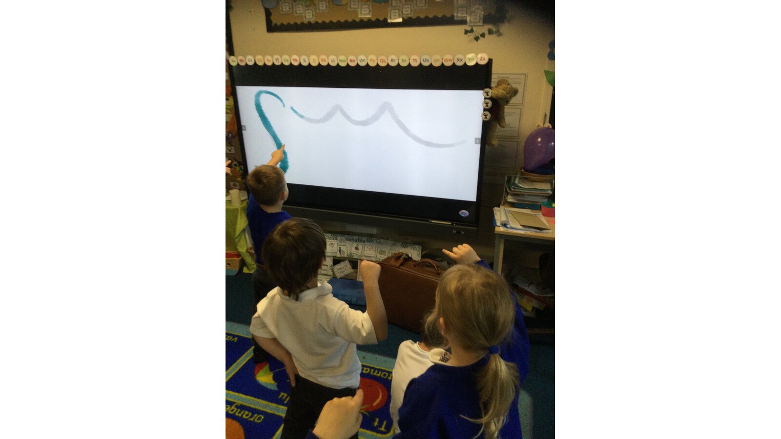 The children were so focused and calm during this session and loved seeing what colours they were painting in the IWB with their fingers. All the children enjoyed tracing the music with their magic finger paintbrushes so much we did it twice!