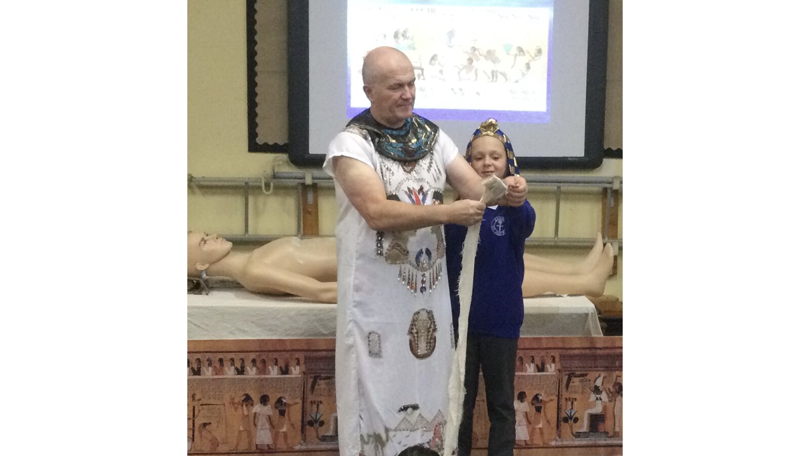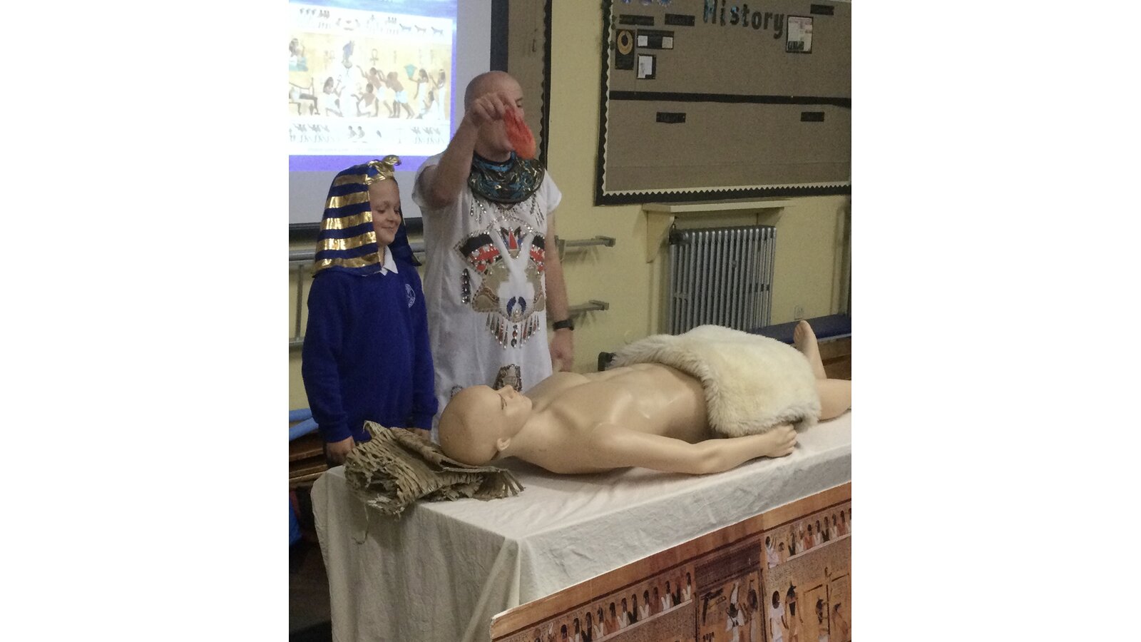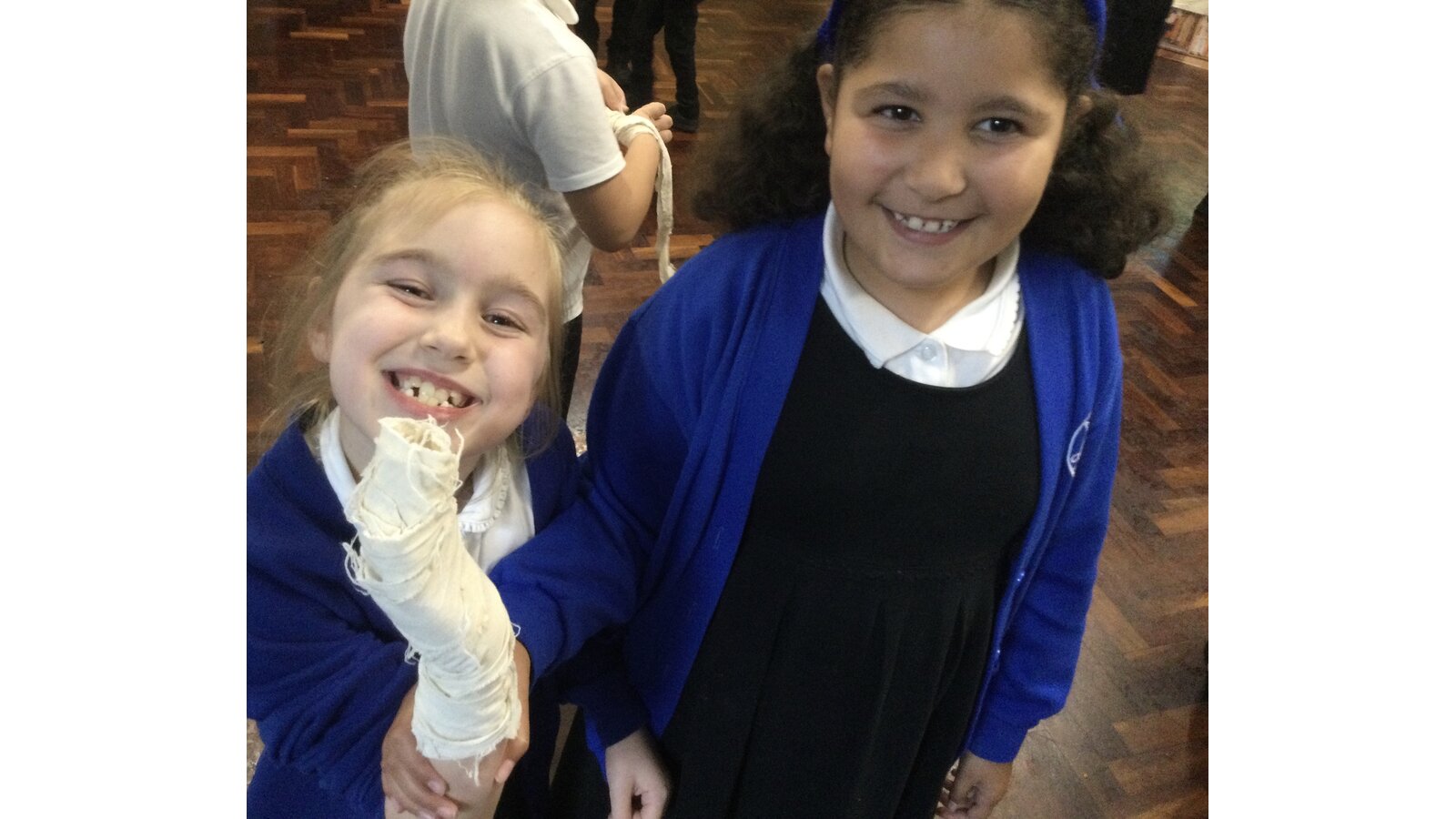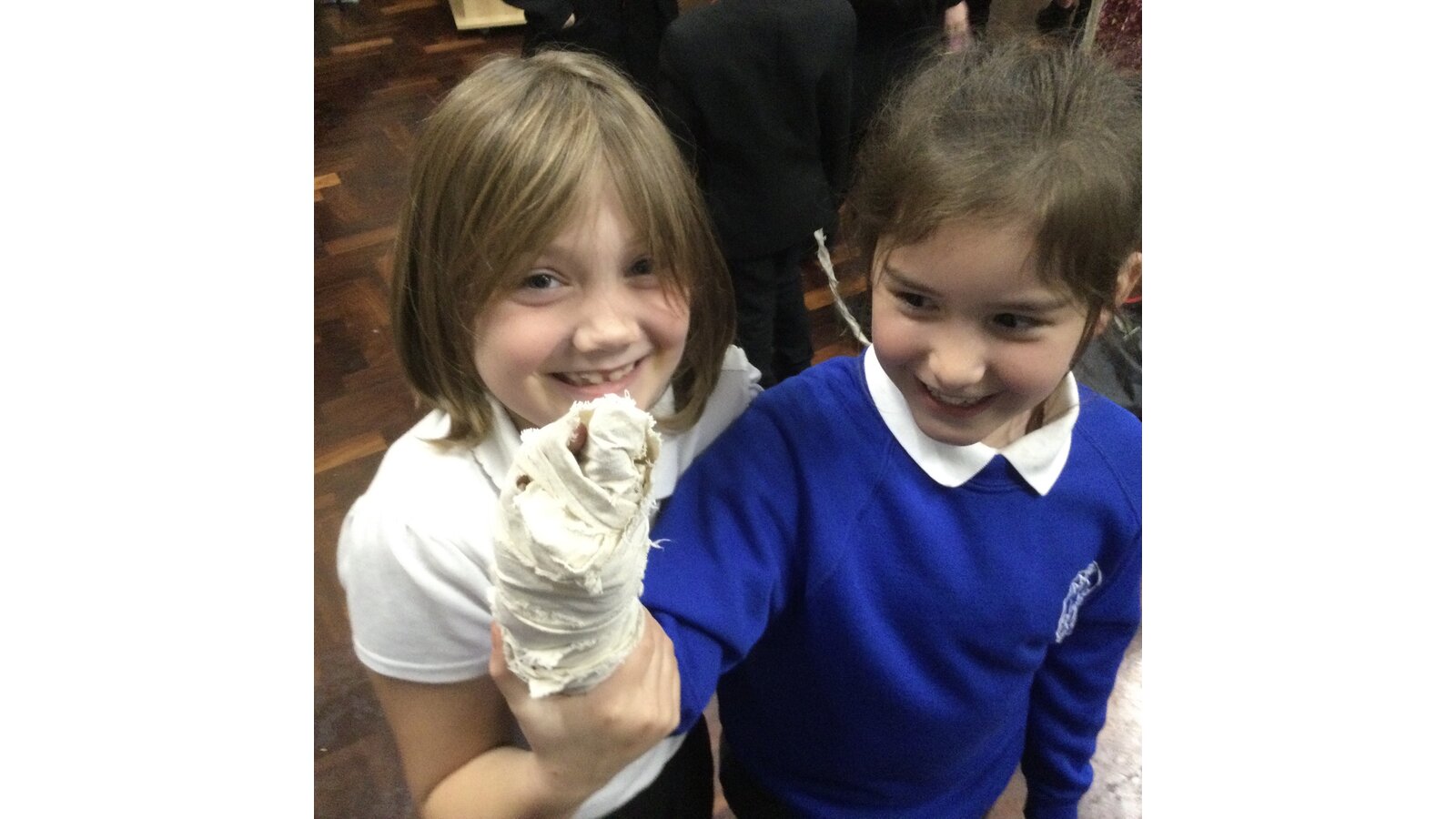 St Mary’s came to join us for an Egyptian workshop today with Steve, the owner of Humph’s Histories. We have had a fantastic day, starting with an overview of the Egyptians, followed by Egyptian quizzes and Maths - Egyptian style, measuring with with a cubit. We also had a competition with different materials to see which group could build the best pyramid. In the afternoon we learnt about the mummification process, we used a dummy first then practised on each other! We also learnt about the different Gods/Godesses and their beliefs in the afterlife. We finished the afternoon with some spear throwing. What a fabulous day!