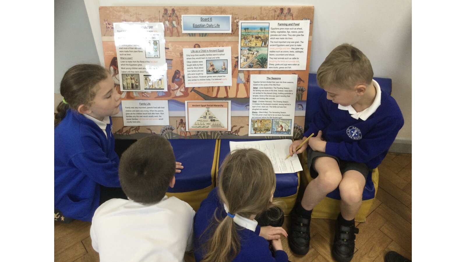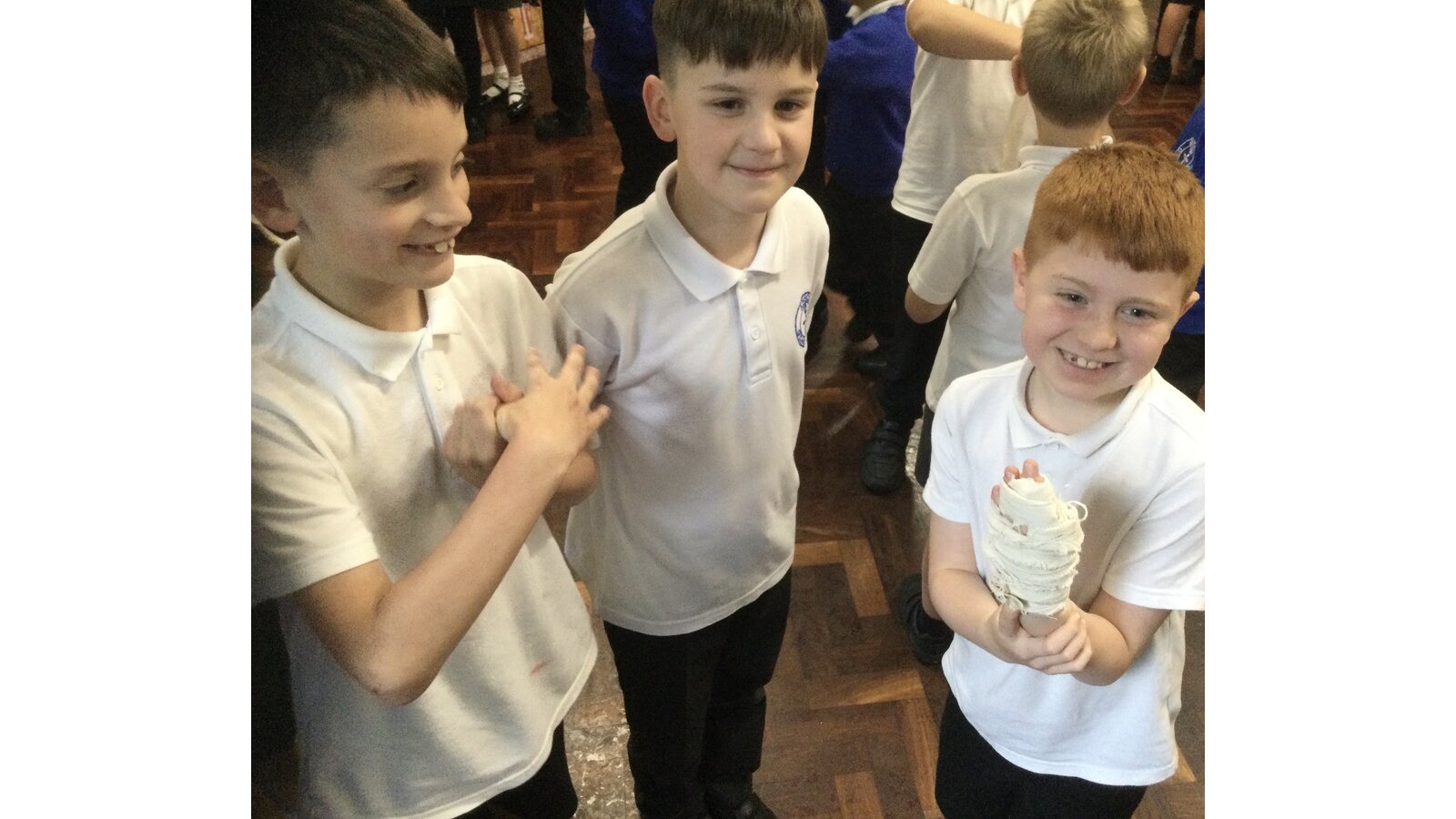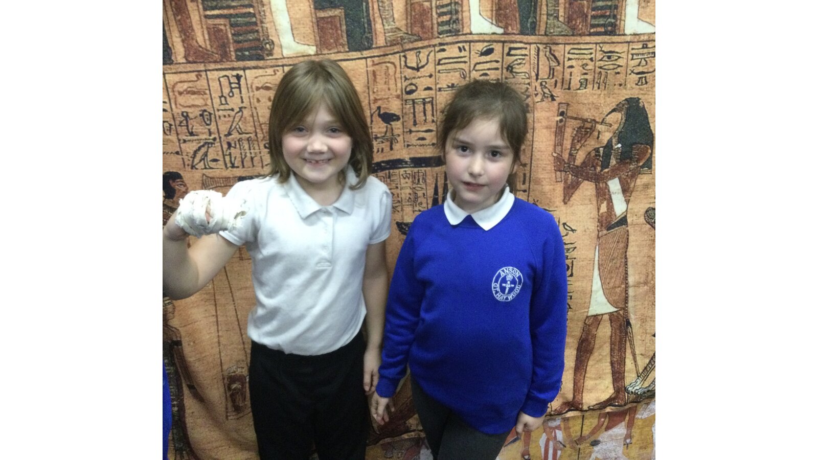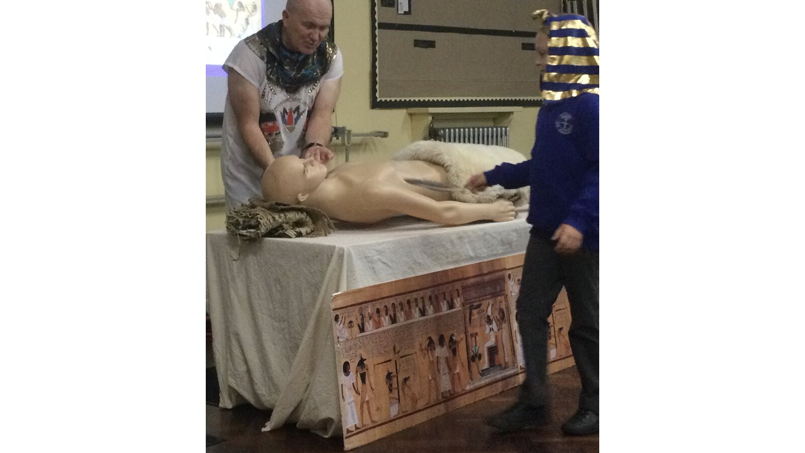 St Mary’s came to join us for an Egyptian workshop today with Steve, the owner of Humph’s Histories. We have had a fantastic day, starting with an overview of the Egyptians, followed by Egyptian quizzes and Maths - Egyptian style, measuring with with a cubit. We also had a competition with different materials to see which group could build the best pyramid. In the afternoon we learnt about the mummification process, we used a dummy first then practised on each other! We also learnt about the different Gods/Godesses and their beliefs in the afterlife. We finished the afternoon with some spear throwing. What a fabulous day!