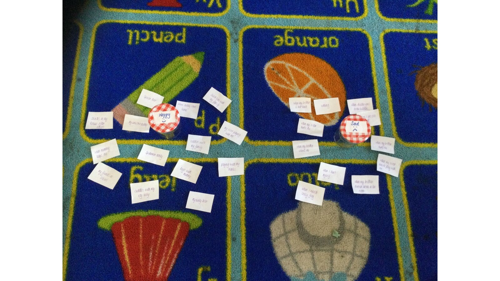 This afternoon, we have spent some time in our outdoor classroom and practised some of our relaxing breathing techniques and blowing our worries away. We then talked about what makes us happy and sad and put these feelings in special jars. We talked about how we can help our friends when they feel sad. We then shared a class worship finding out about World Mental Health day.