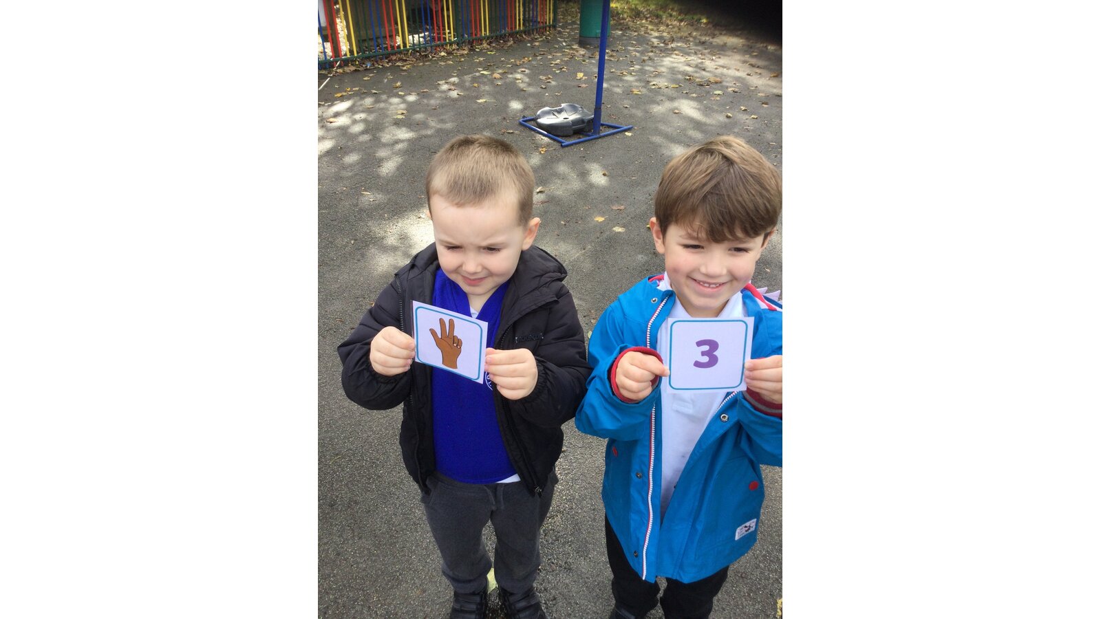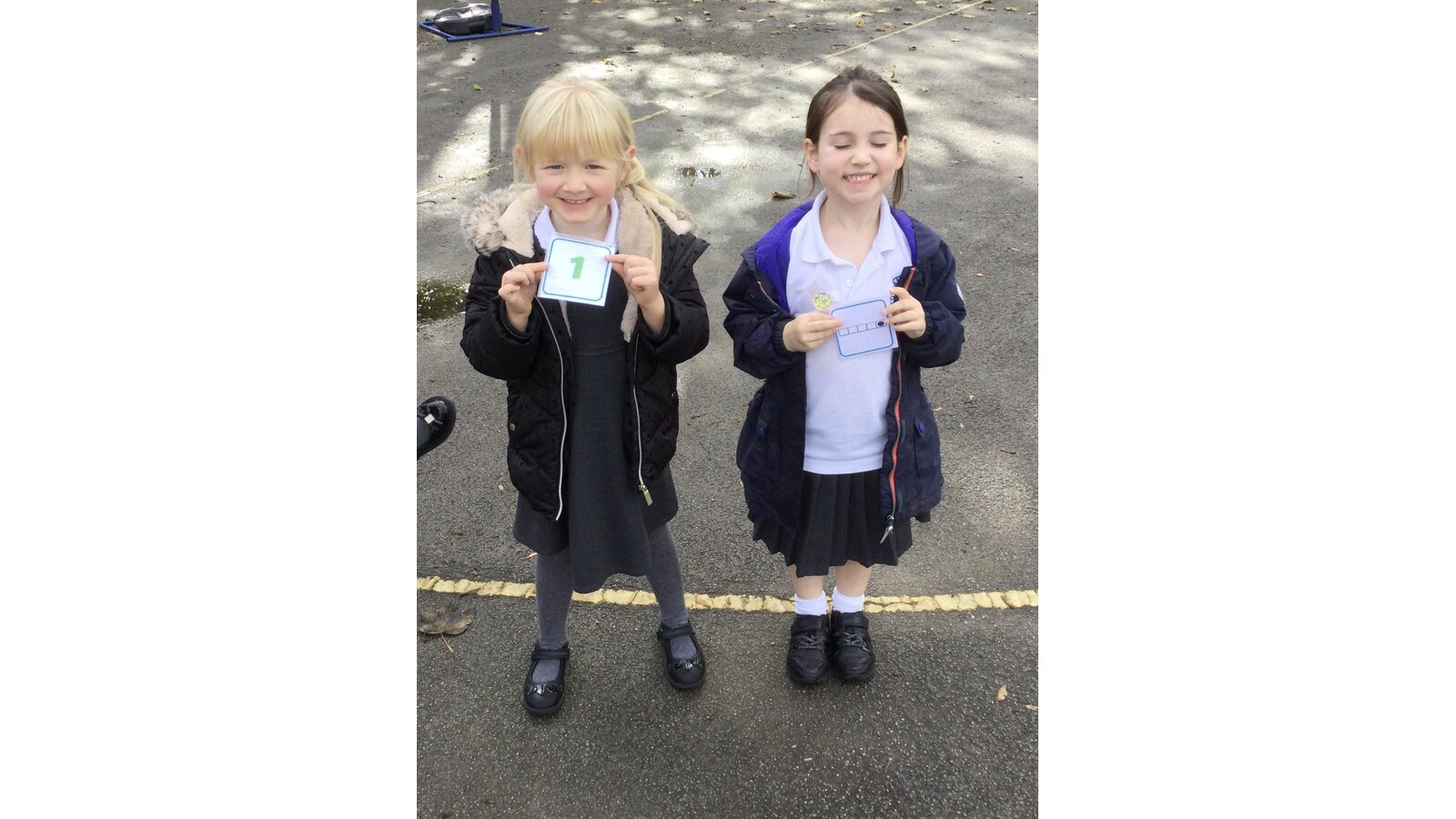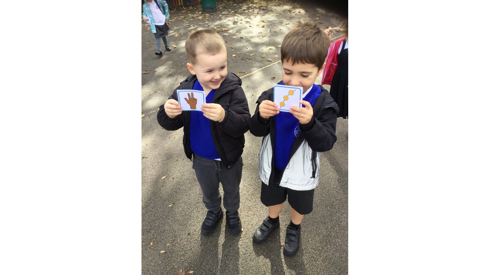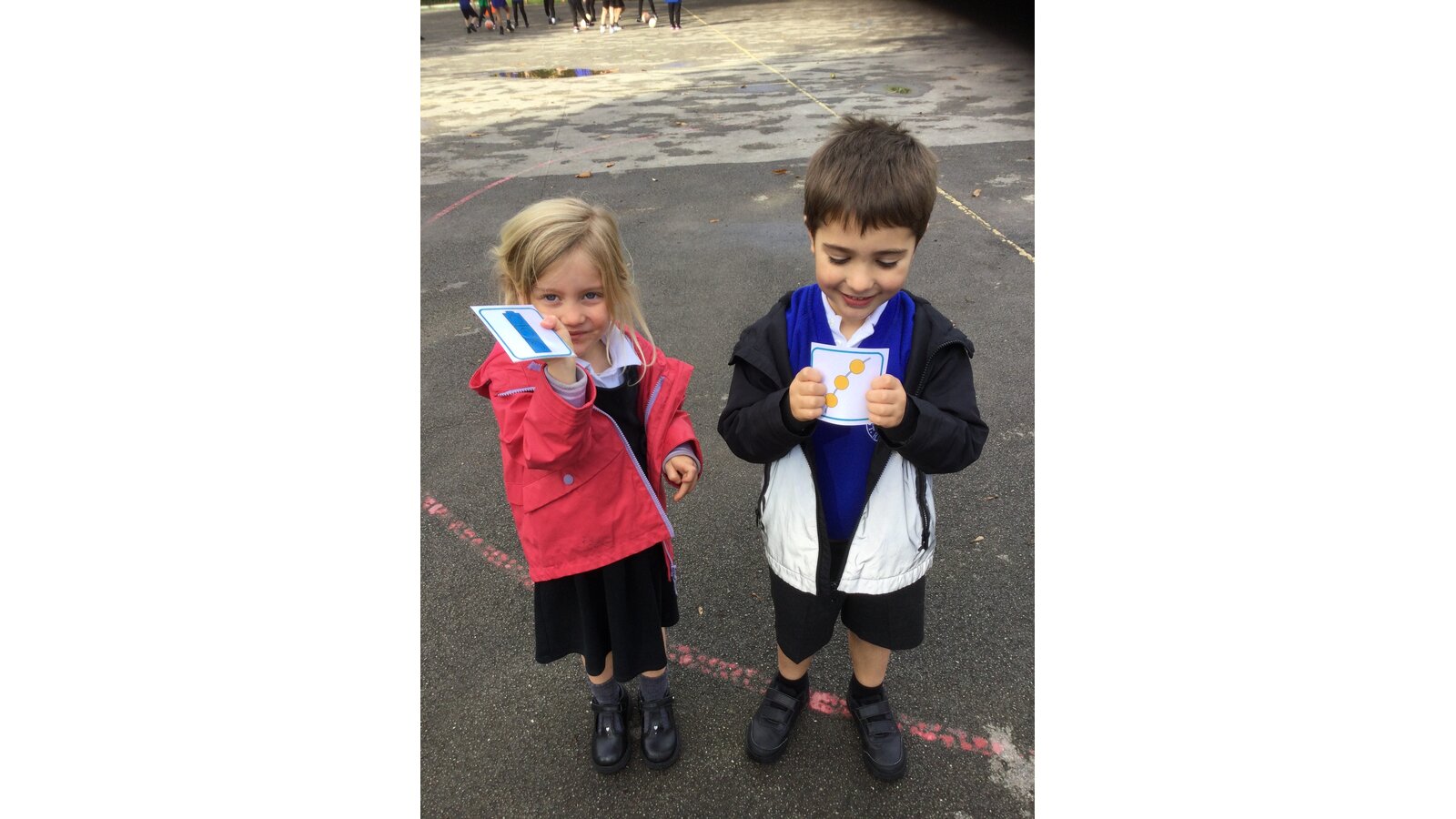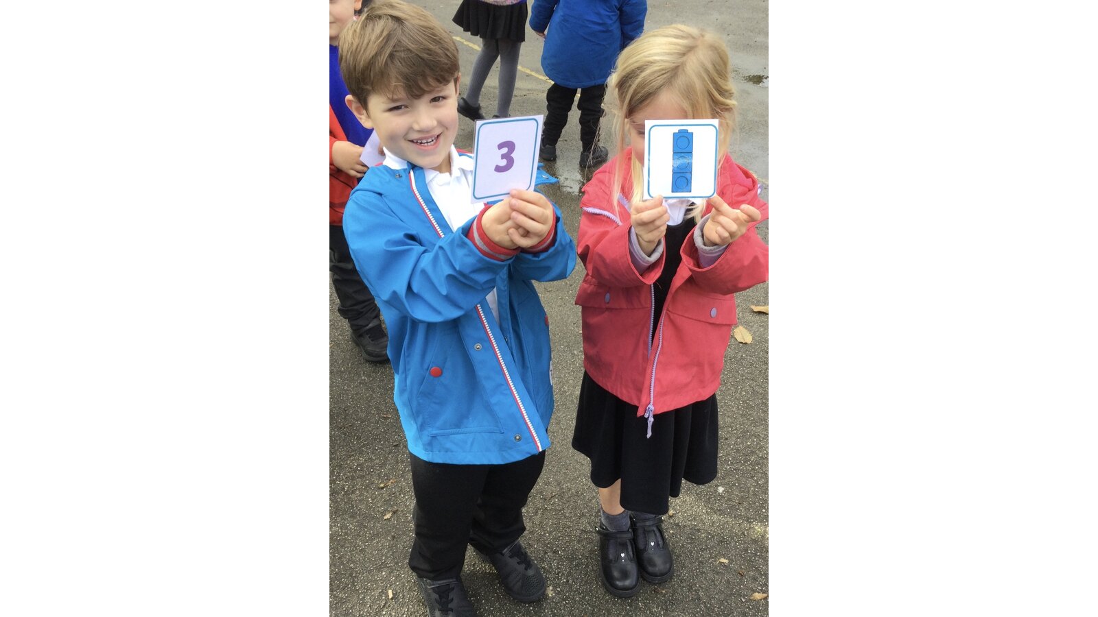 This afternoon we went outside for an active maths session and everyone had a card with either a number or a representation of a number on. We travelled around the area in different ways and when Mrs Philp shouted “partner up” and the children had to find a partner with either a matching number representation or number to match theirs. All the children were brilliant at this-what great maths detectives they are!
