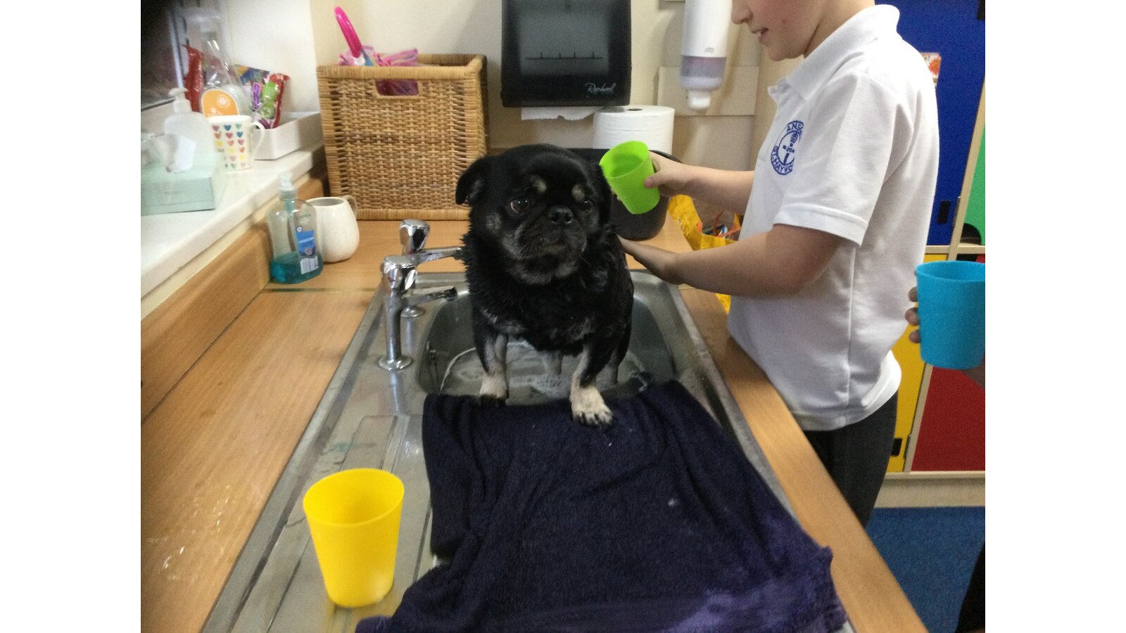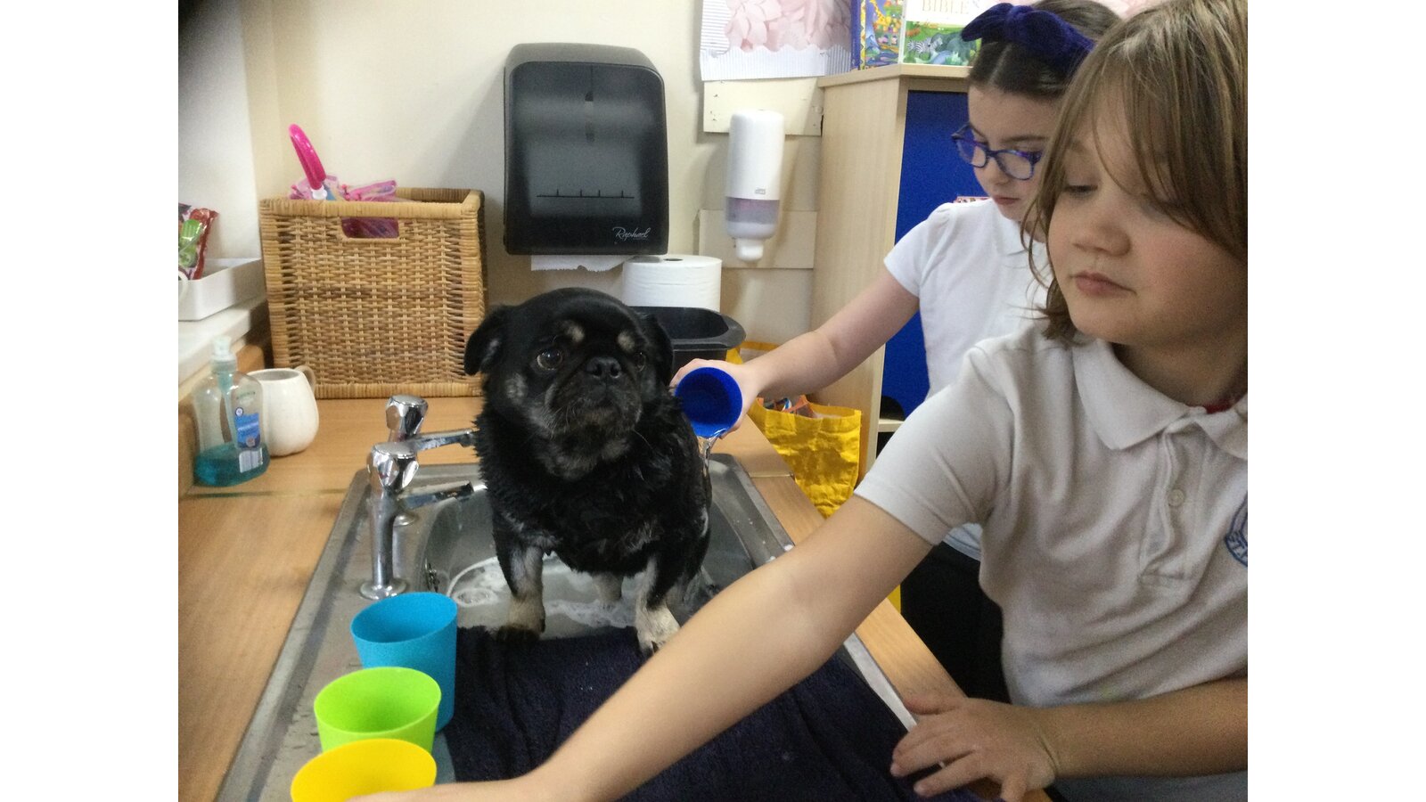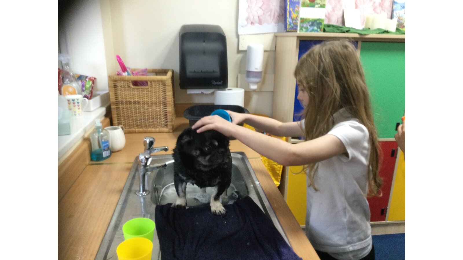 Some children in class 3 were lucky enough to give Ralph a bath today. They were very calm and sensible. It was great fun watching Ralph zoom around the playground to dry off!