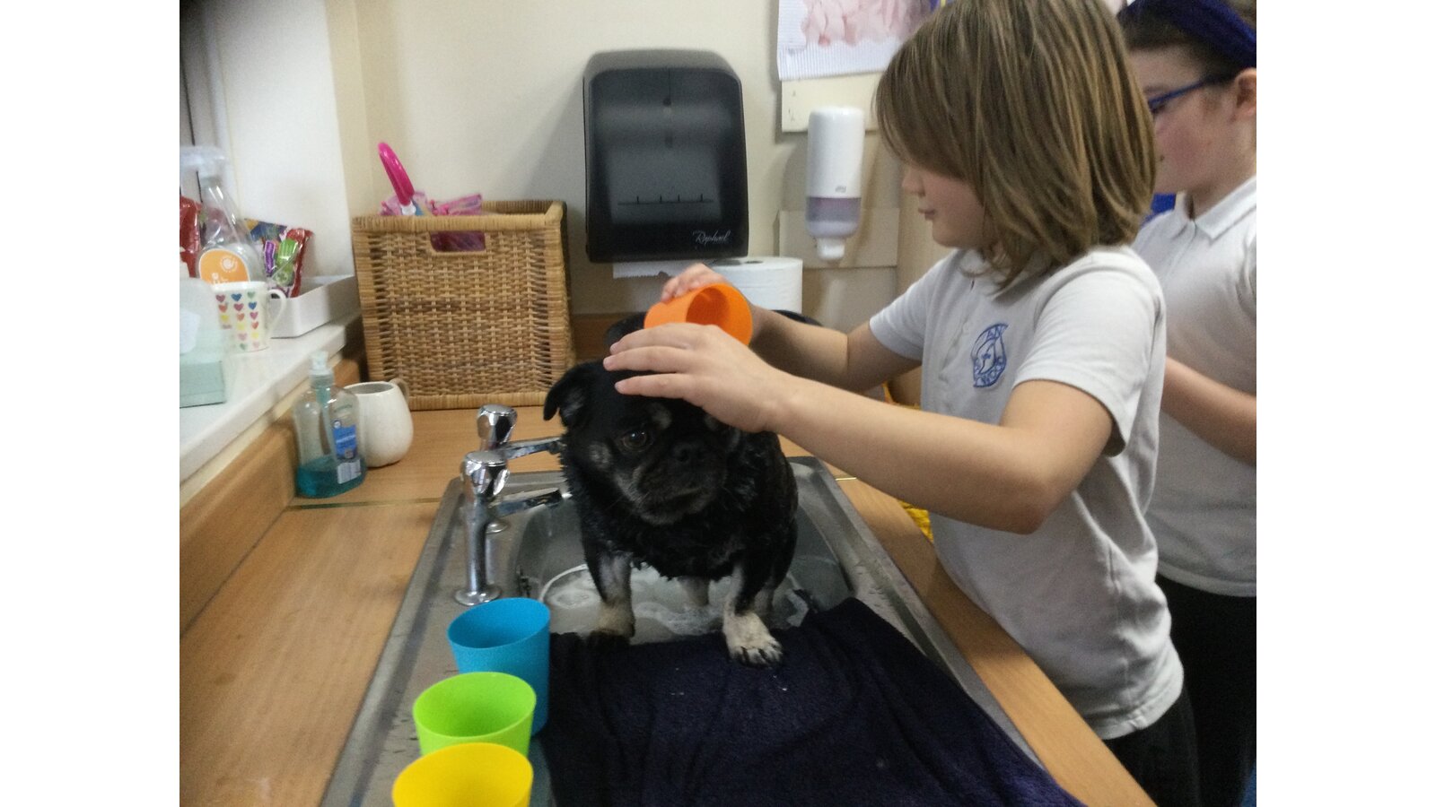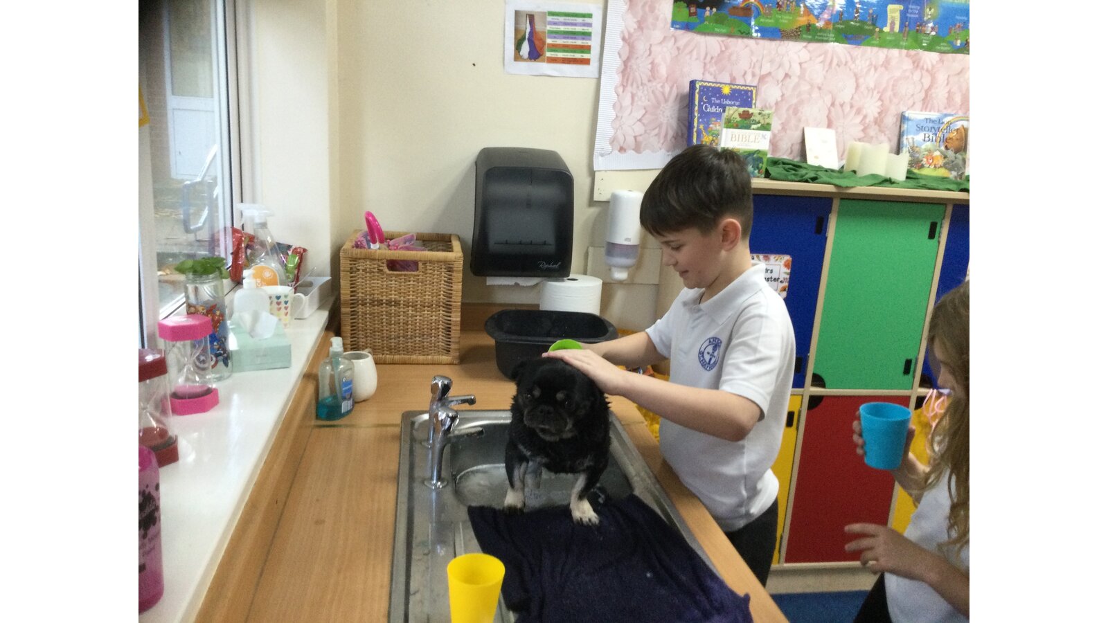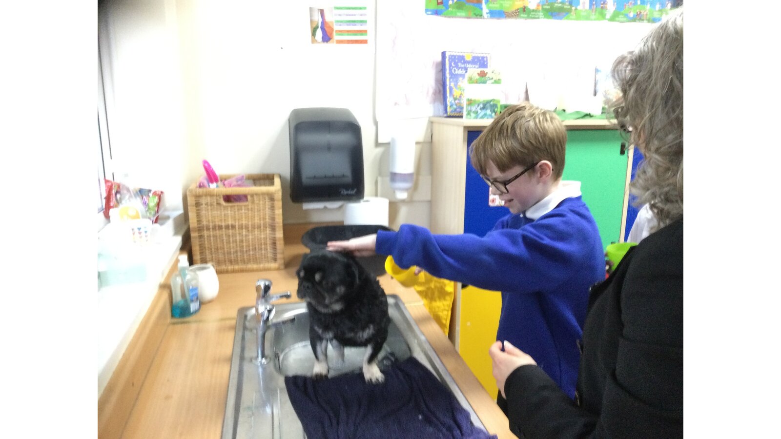 Some children in class 3 were lucky enough to give Ralph a bath today. They were very calm and sensible. It was great fun watching Ralph zoom around the playground to dry off!