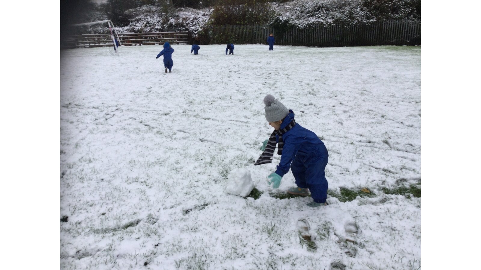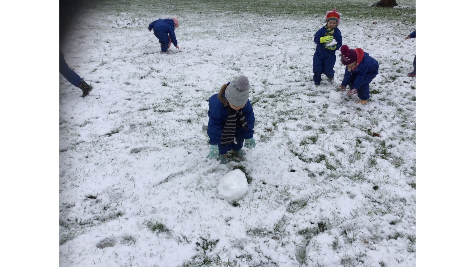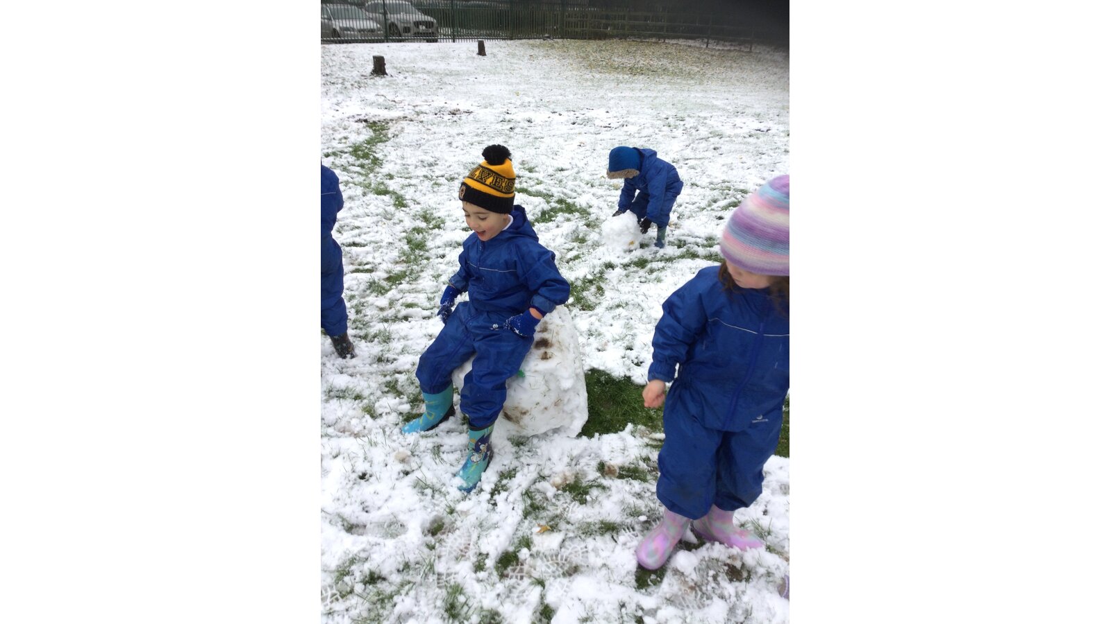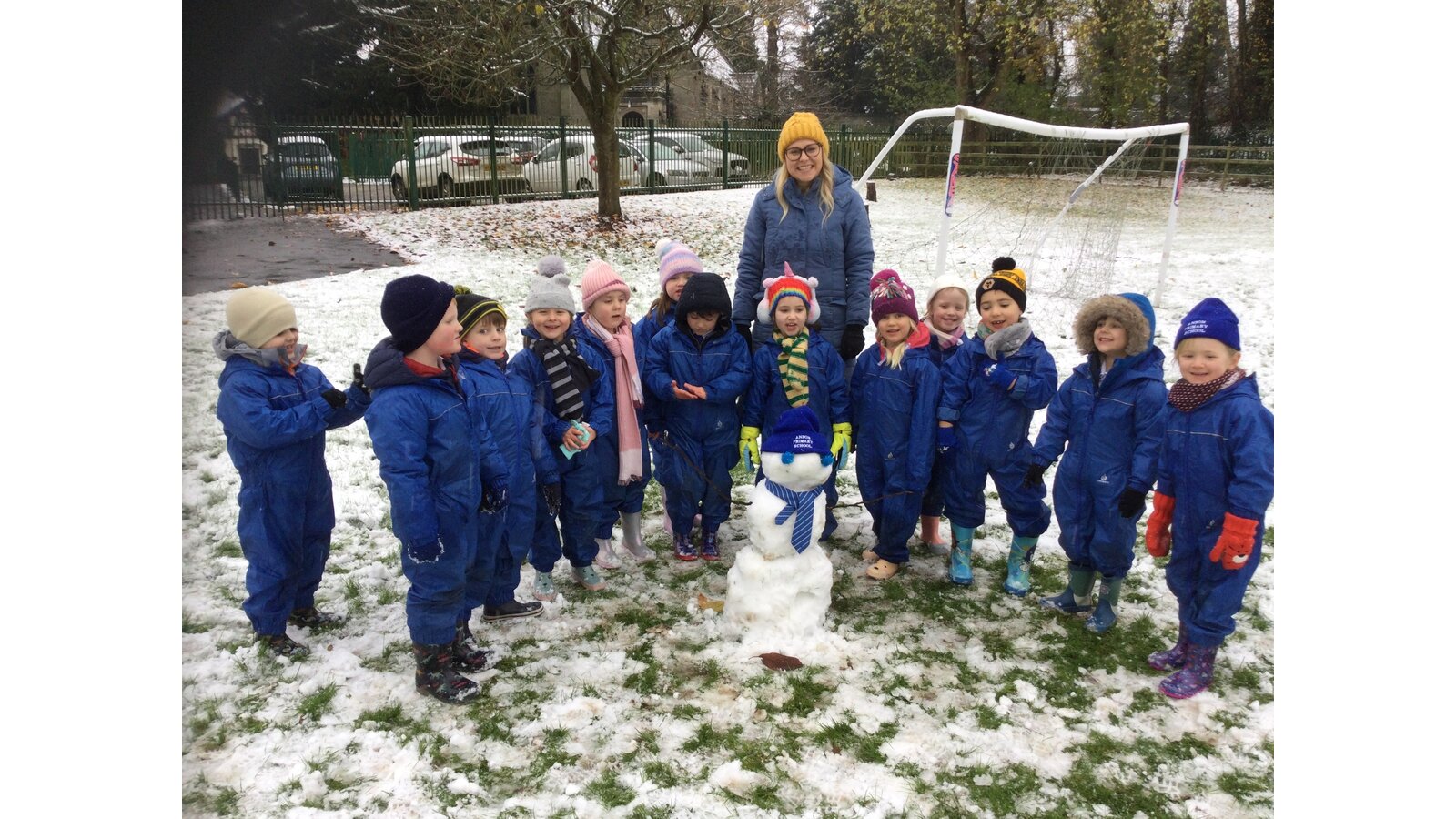 Class 1 explored the snow together this morning, we wrapped up warm and worked together to build some snowmen.