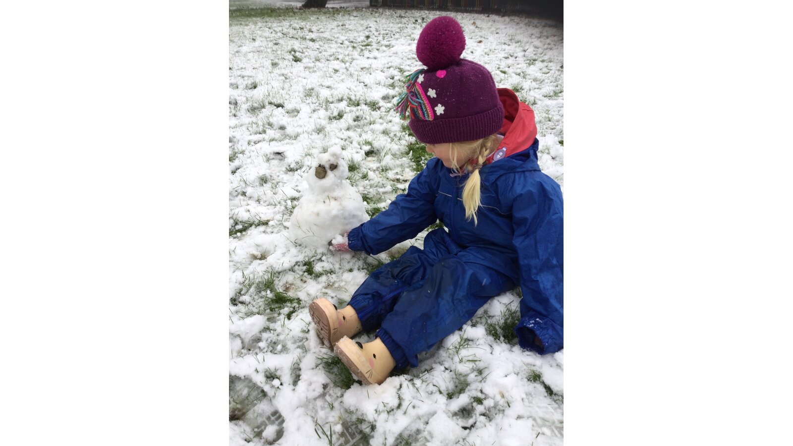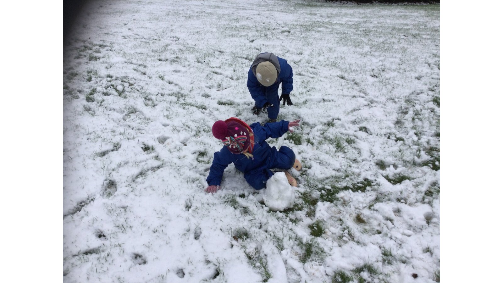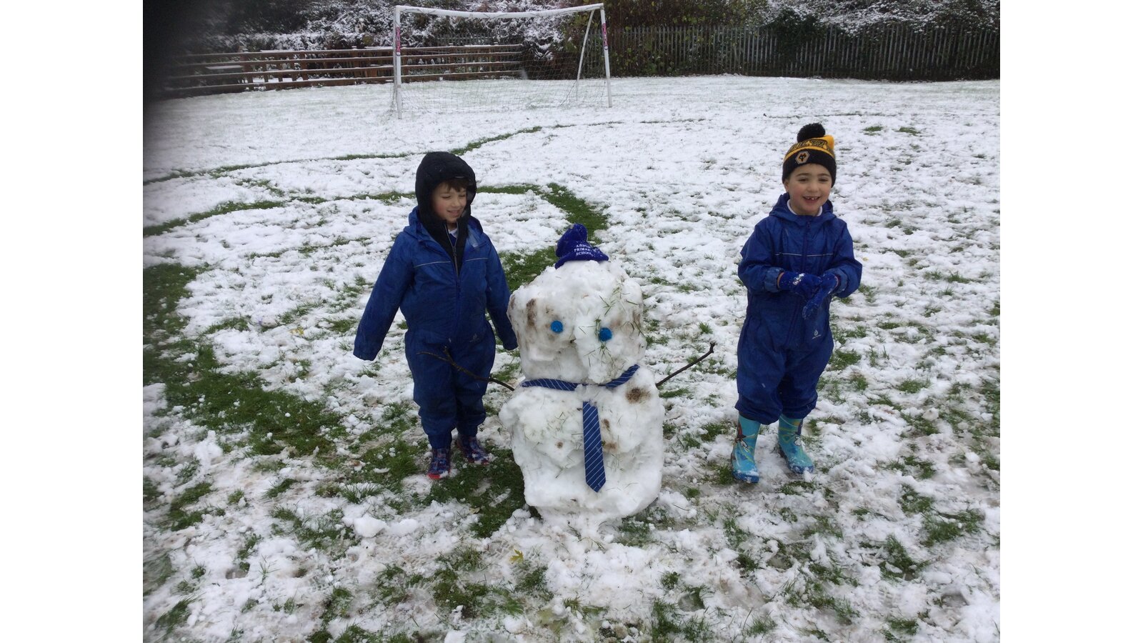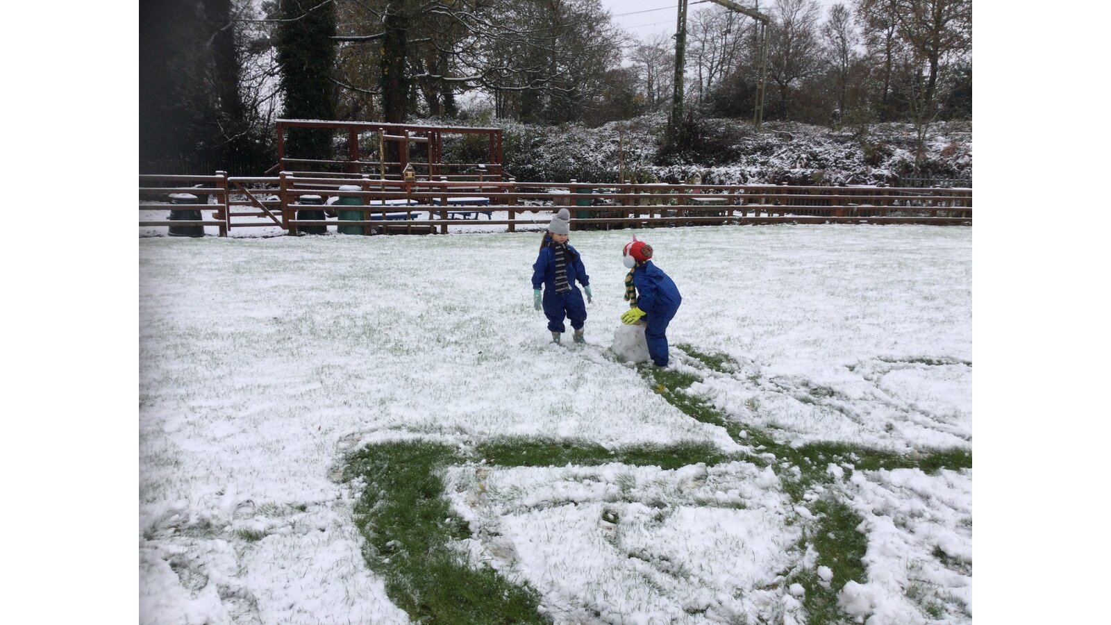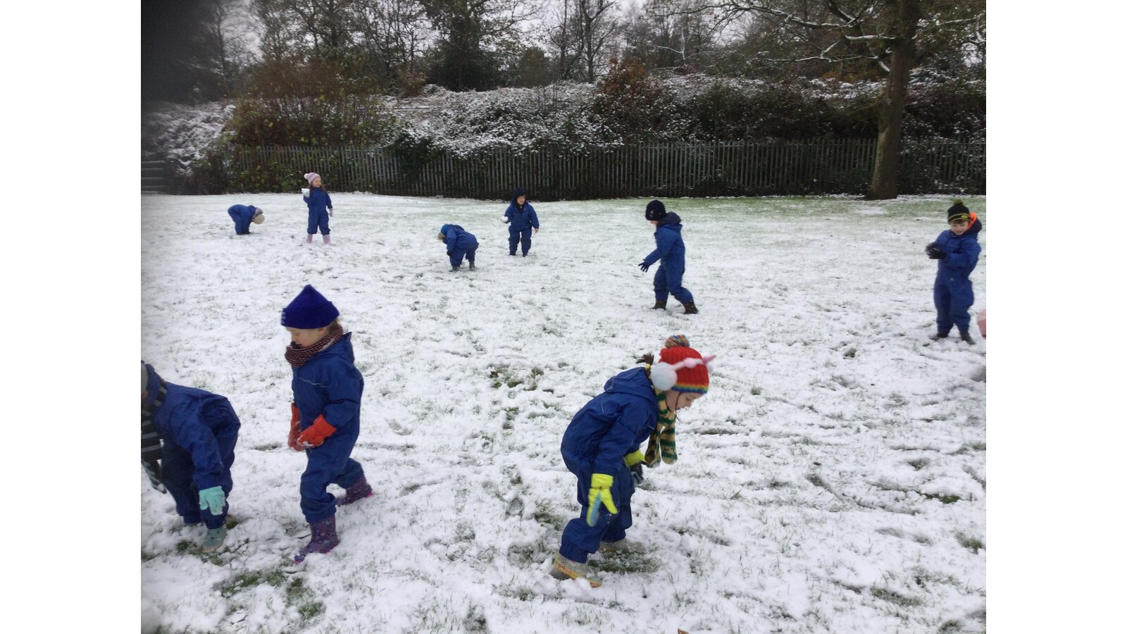 Class 1 explored the snow together this morning, we wrapped up warm and worked together to build some snowmen.