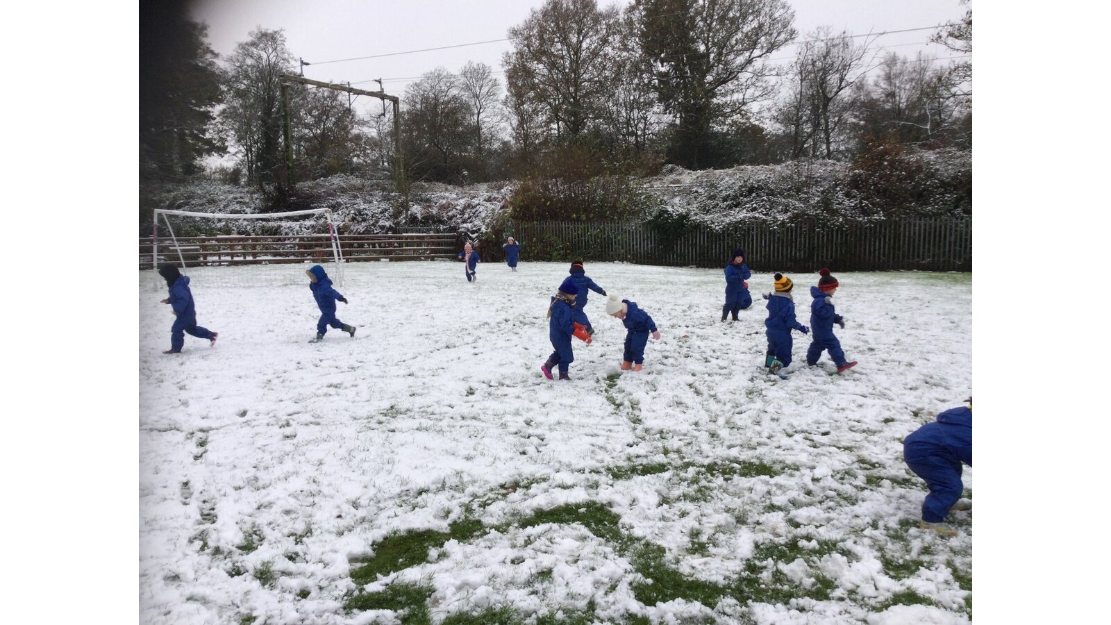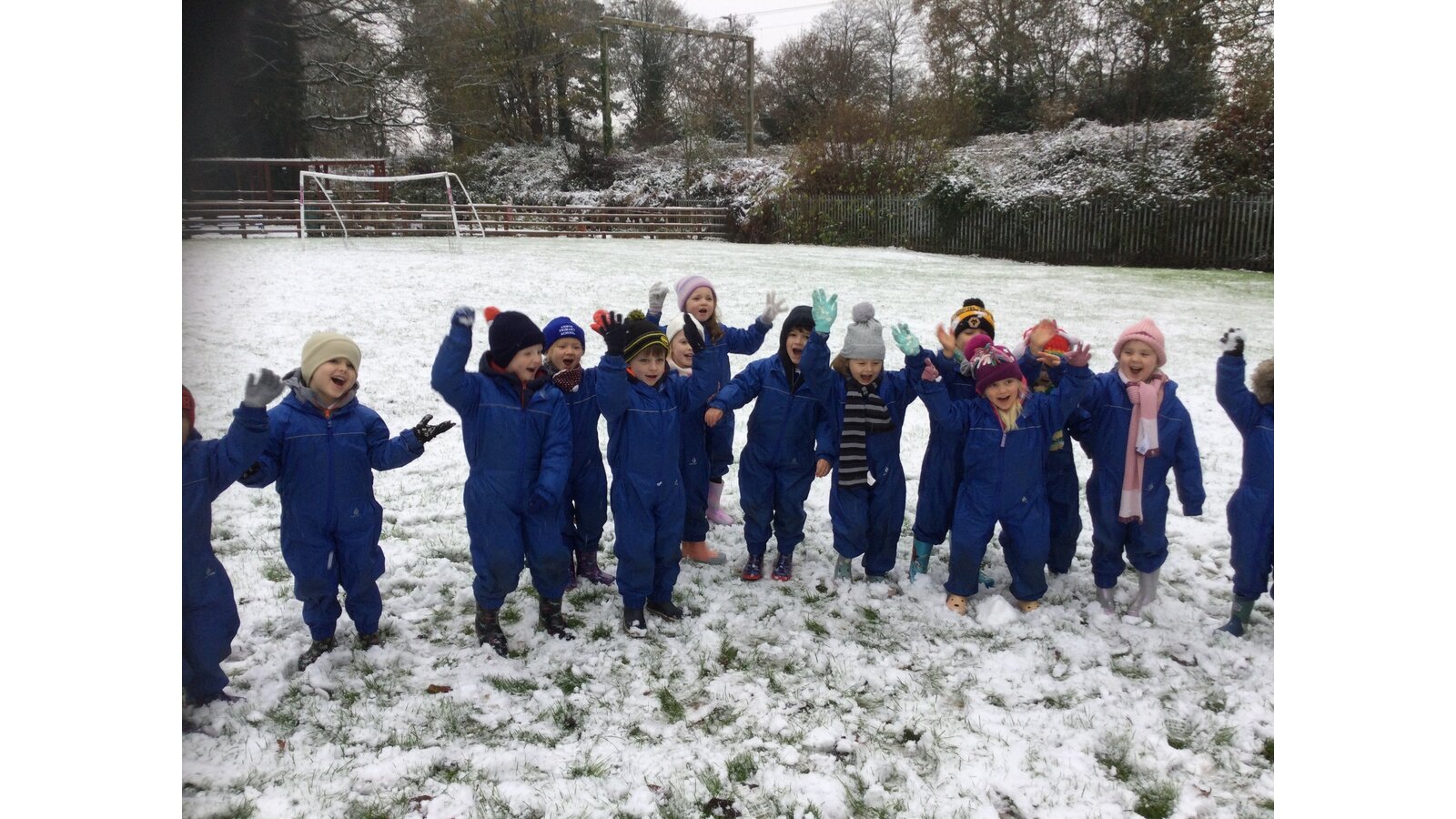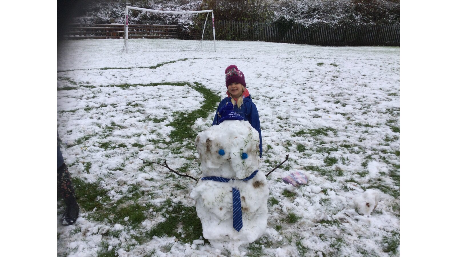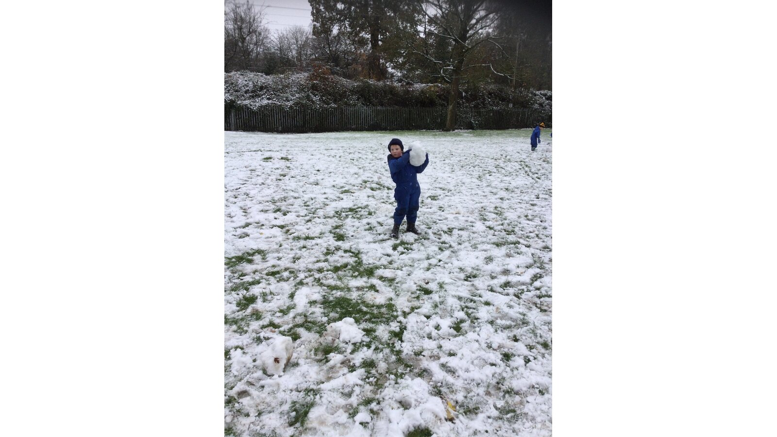 Class 1 explored the snow together this morning, we wrapped up warm and worked together to build some snowmen.