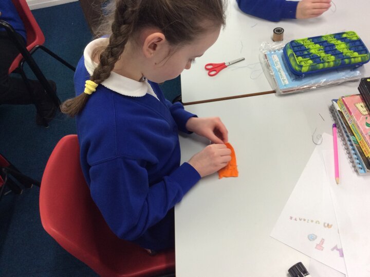 We are very proud of the progression of sewing skills. The children managed to embroider a shape onto felt as well as appliqué a shape. Some children even sewed a sequin on.