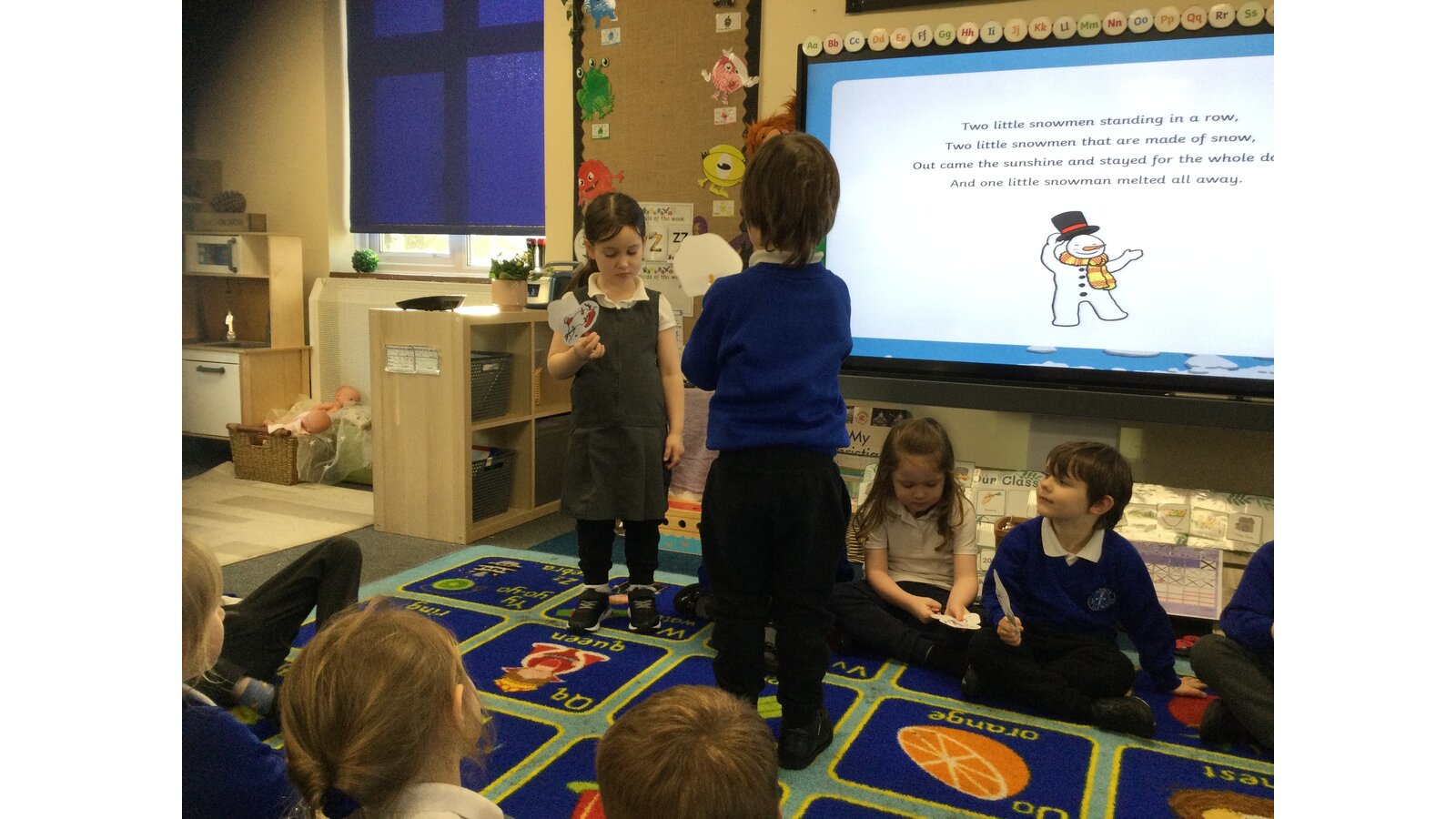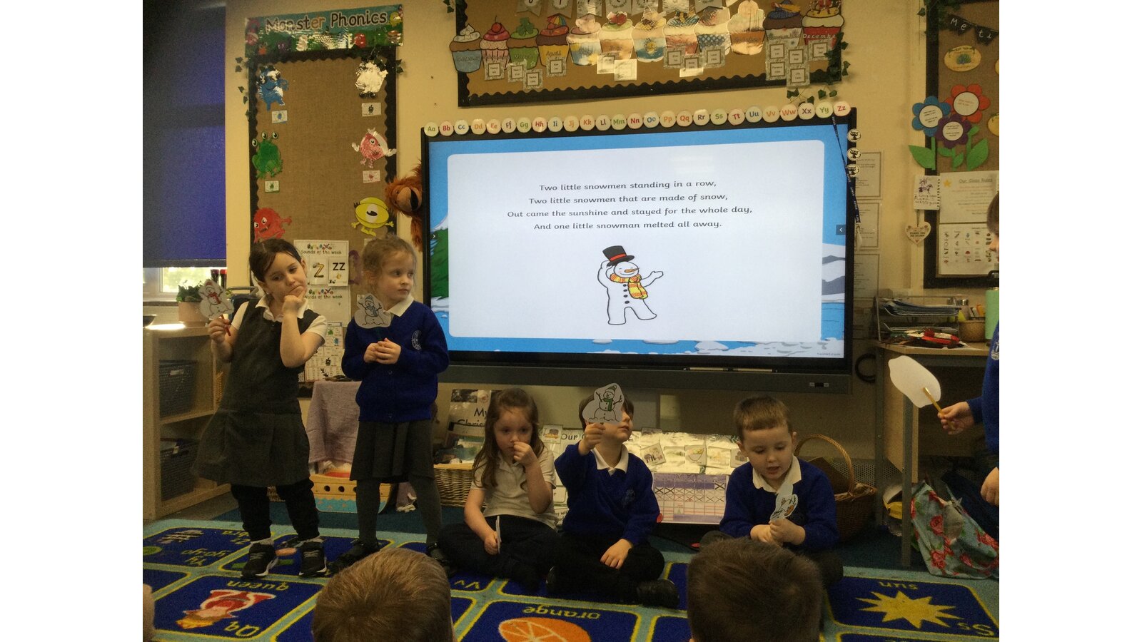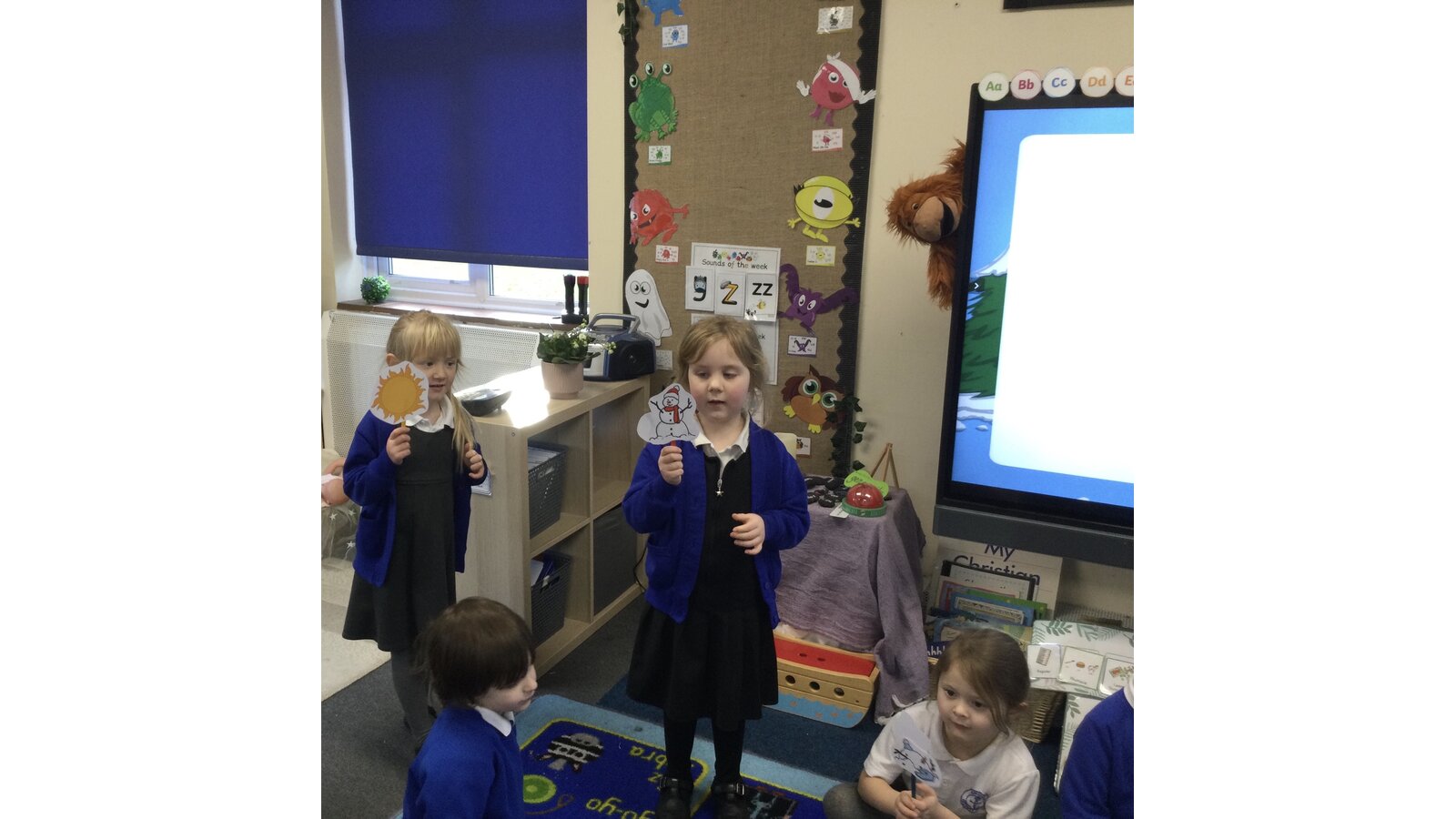 Today in our maths activity, Class 1 were exploring the concept of 1 less than. We used some snowmen stick puppets and a fantastic song to help us work out 1 less than a given number. The children loved being either a snowman or a sun and making one snowman melt away at a time. They were all really confident at recognising which number was 1 less than a given number.
