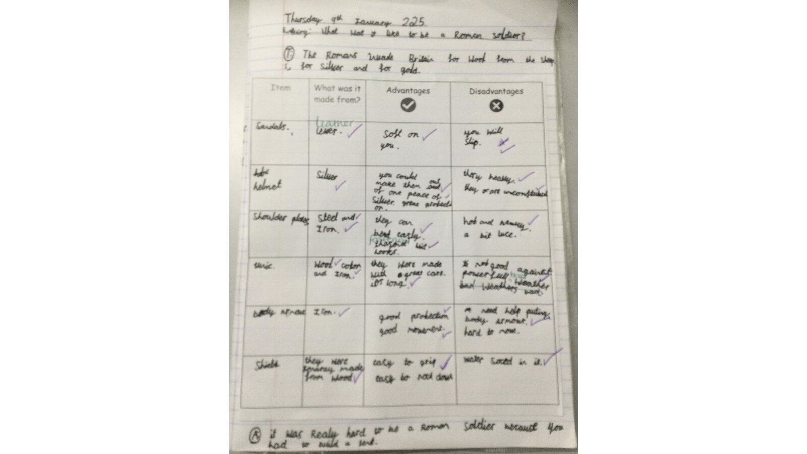 Our new History topic is The Romans. Today we completed a scavenger hunt around the classroom to gather facts about what the Roman soldiers used to wear and how it to helped to protect them.