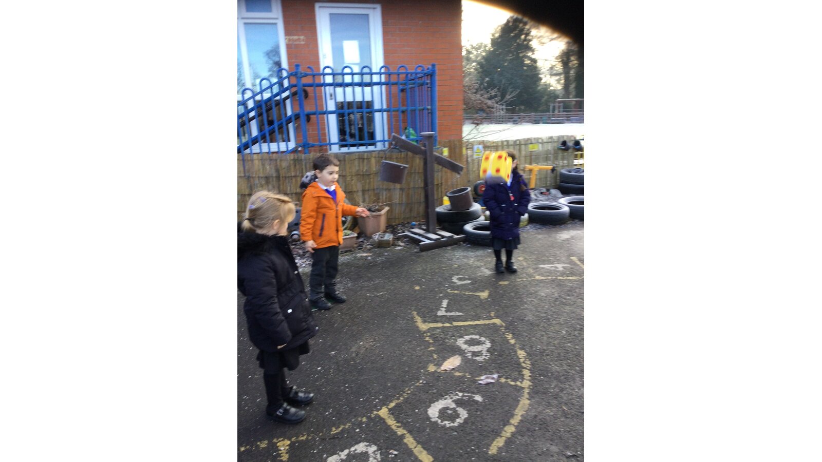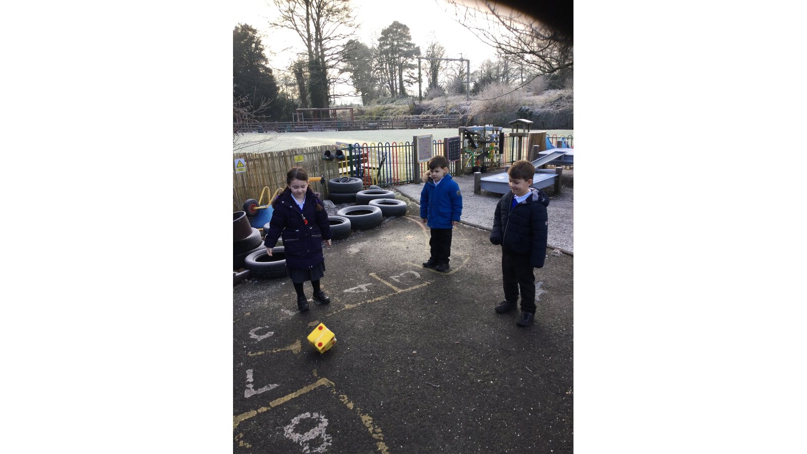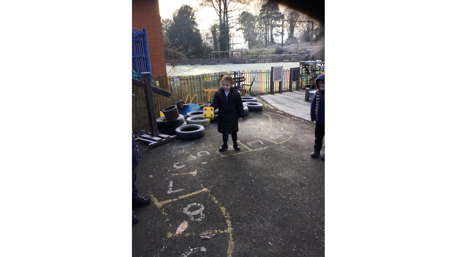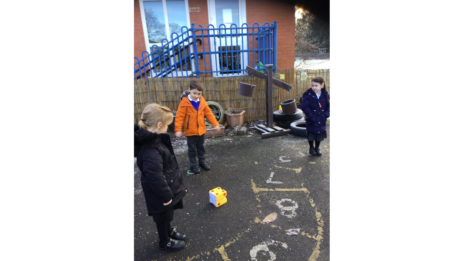 In maths today, Class 1 have been thinking about representing numbers to 5 in different ways. We put on our coats and found a safe place on our outside area to enjoy our maths activity.