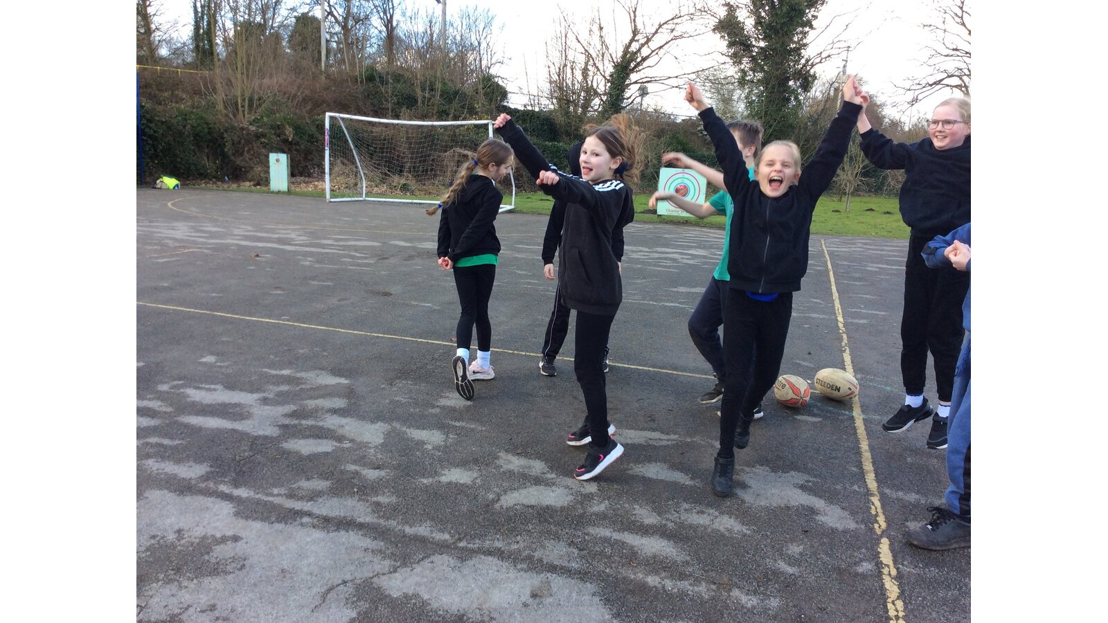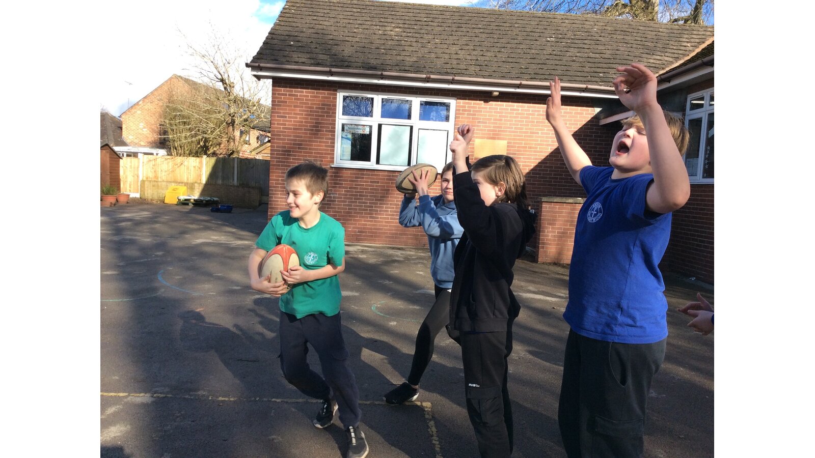 We have introduced our new PE topic of tag Rugby today. We have been practising throwing and catching the ball and running within boundaries.
