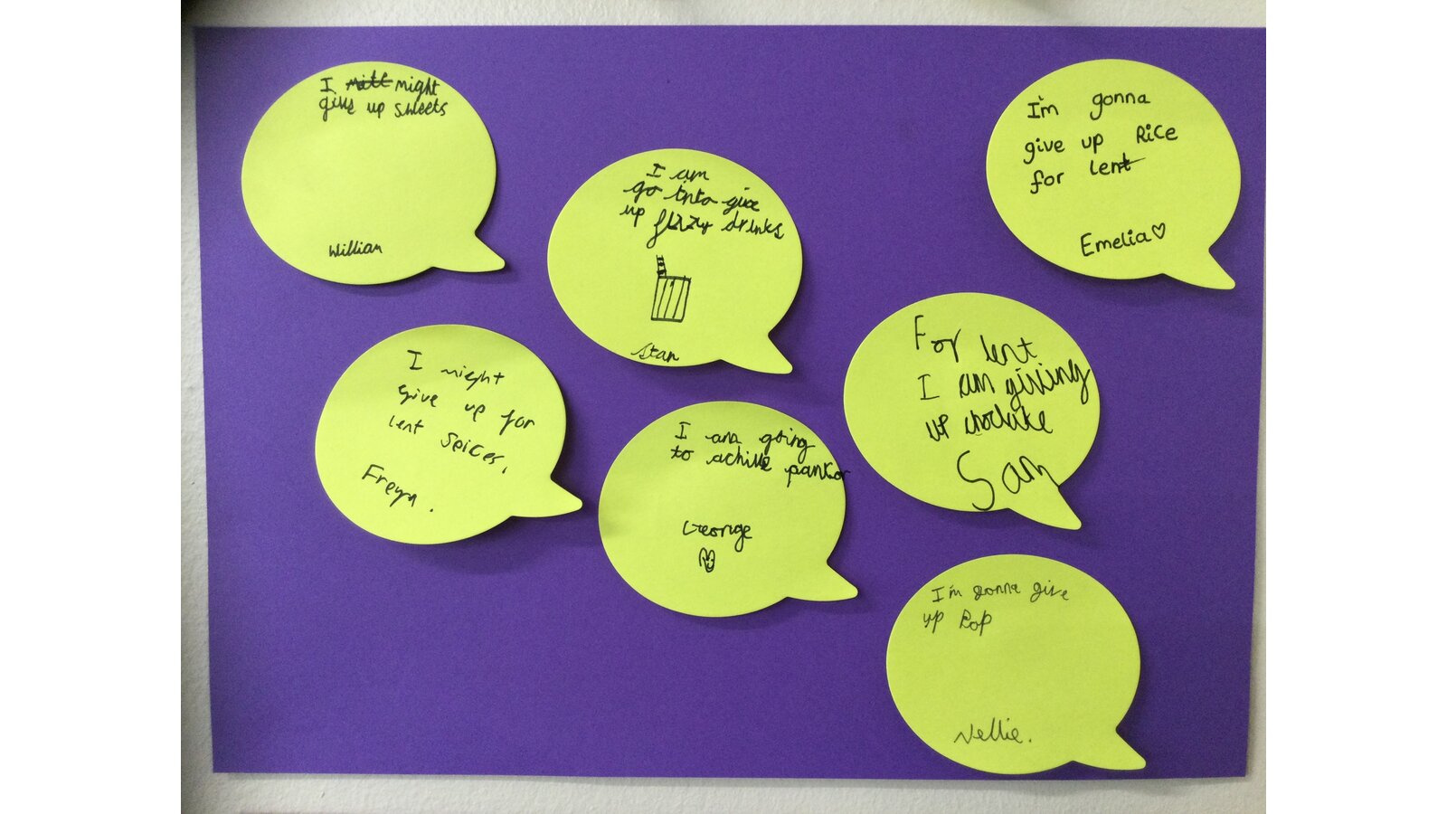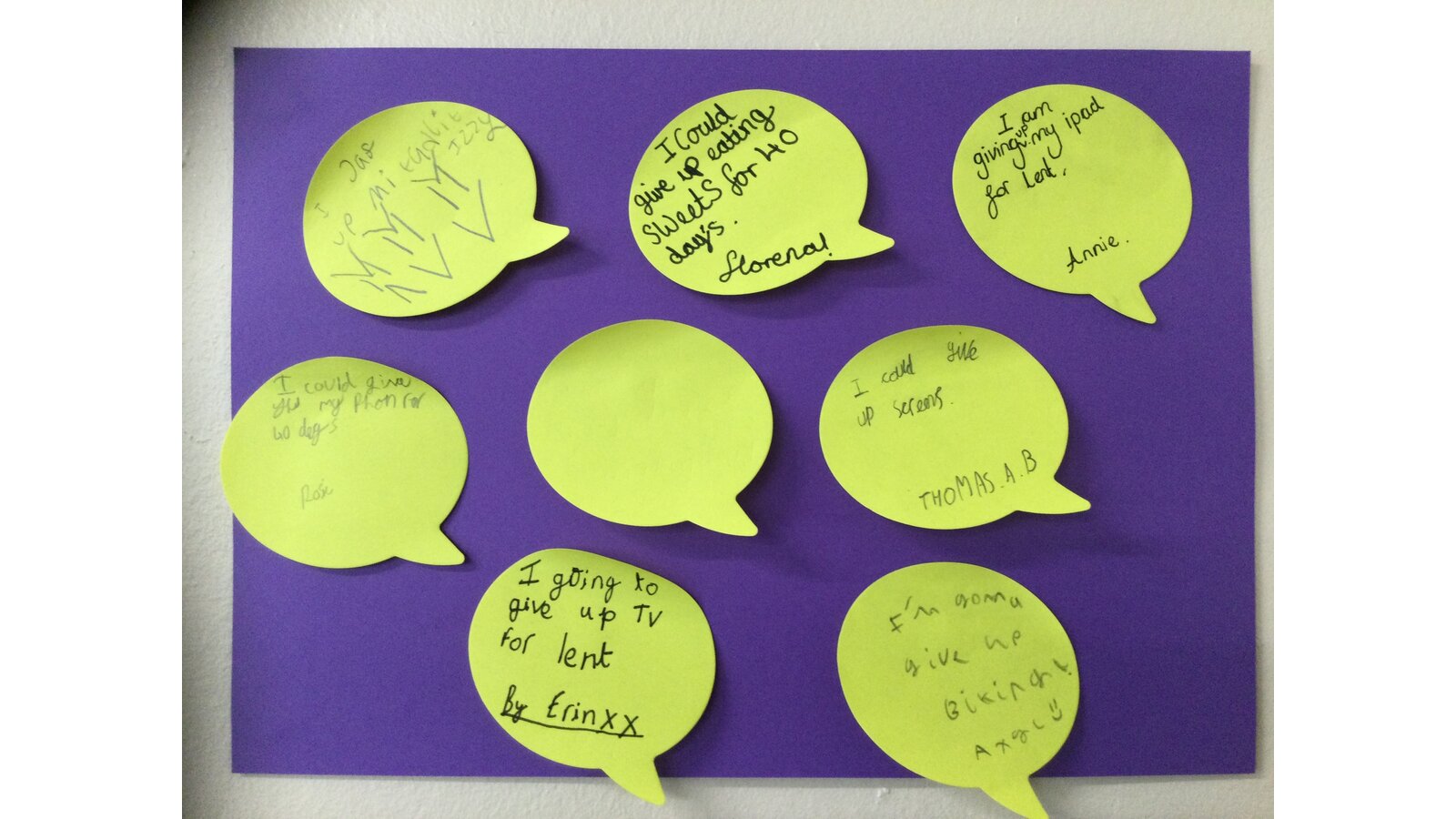 Today we looked back at the plans we made for Lent a few weeks ago. We reflected back on what we planned we could give up, or what new skill we could learn during Lent. We discussed obstacles to our plans, how to overcome them and how it is never to late to start and make that important change.