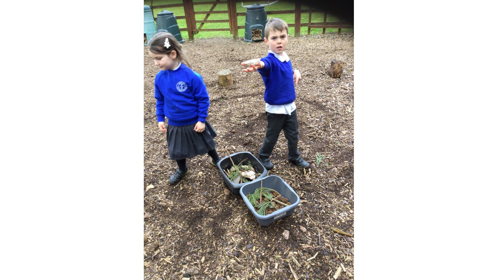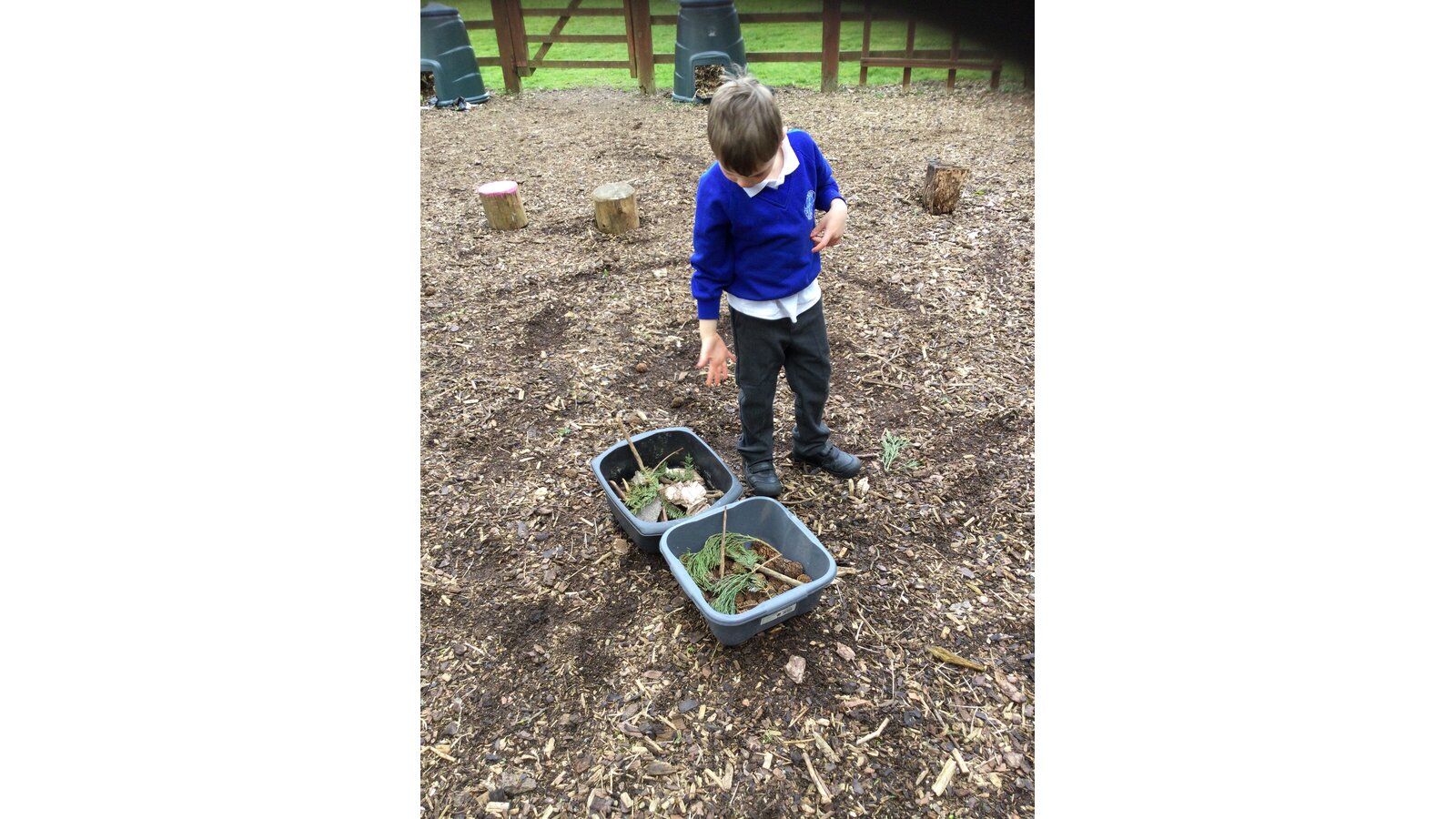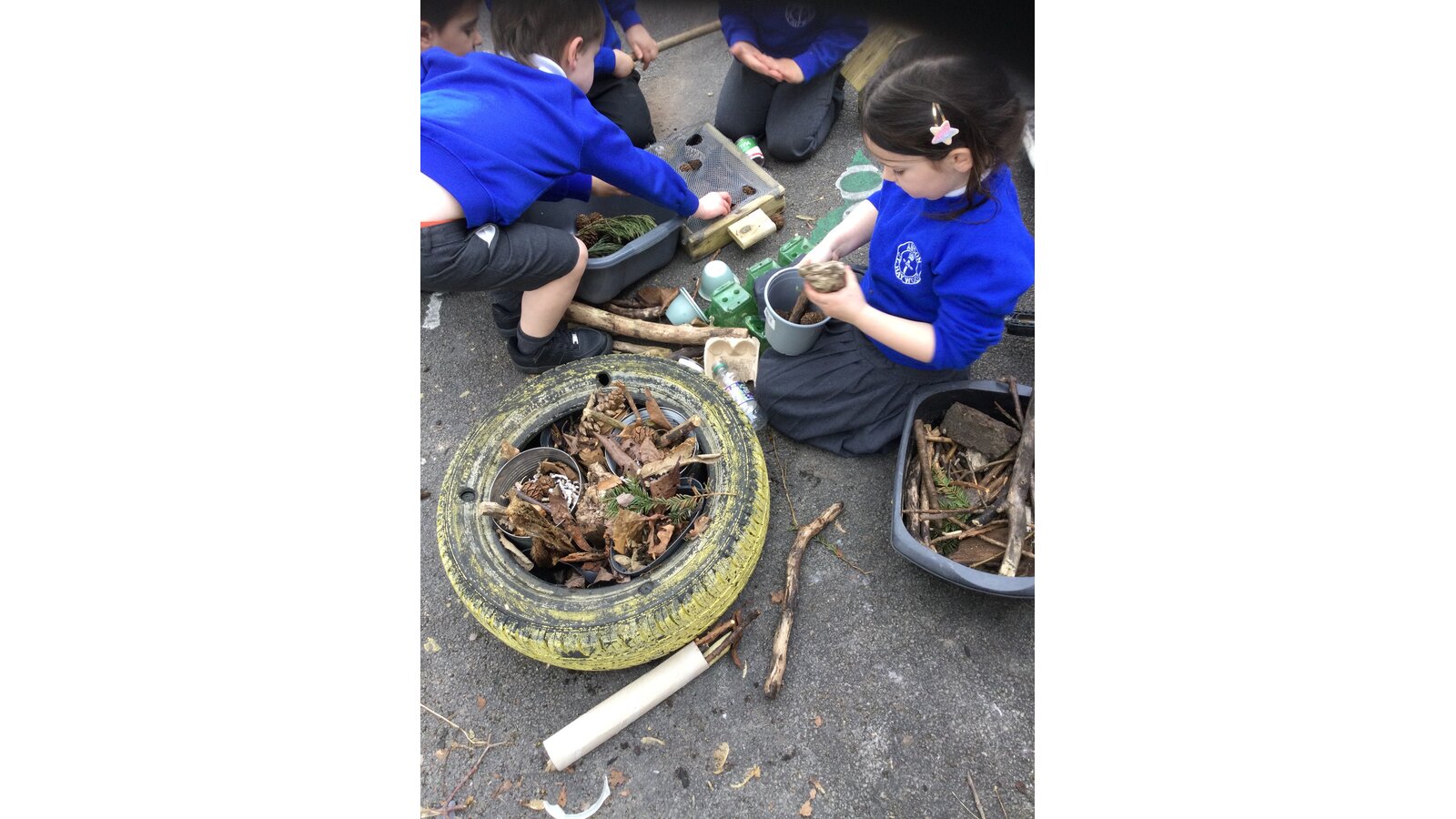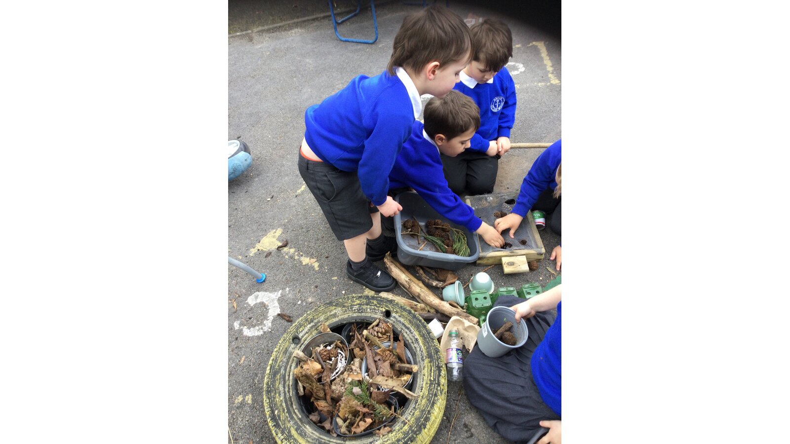 Class 1 explored minibeast habitats in Science today and why minibeasts like small, sheltered places. We went outside to collect natural materials, sticks, leaves, pine cones and bark to create a bug hotel out of a tyre.