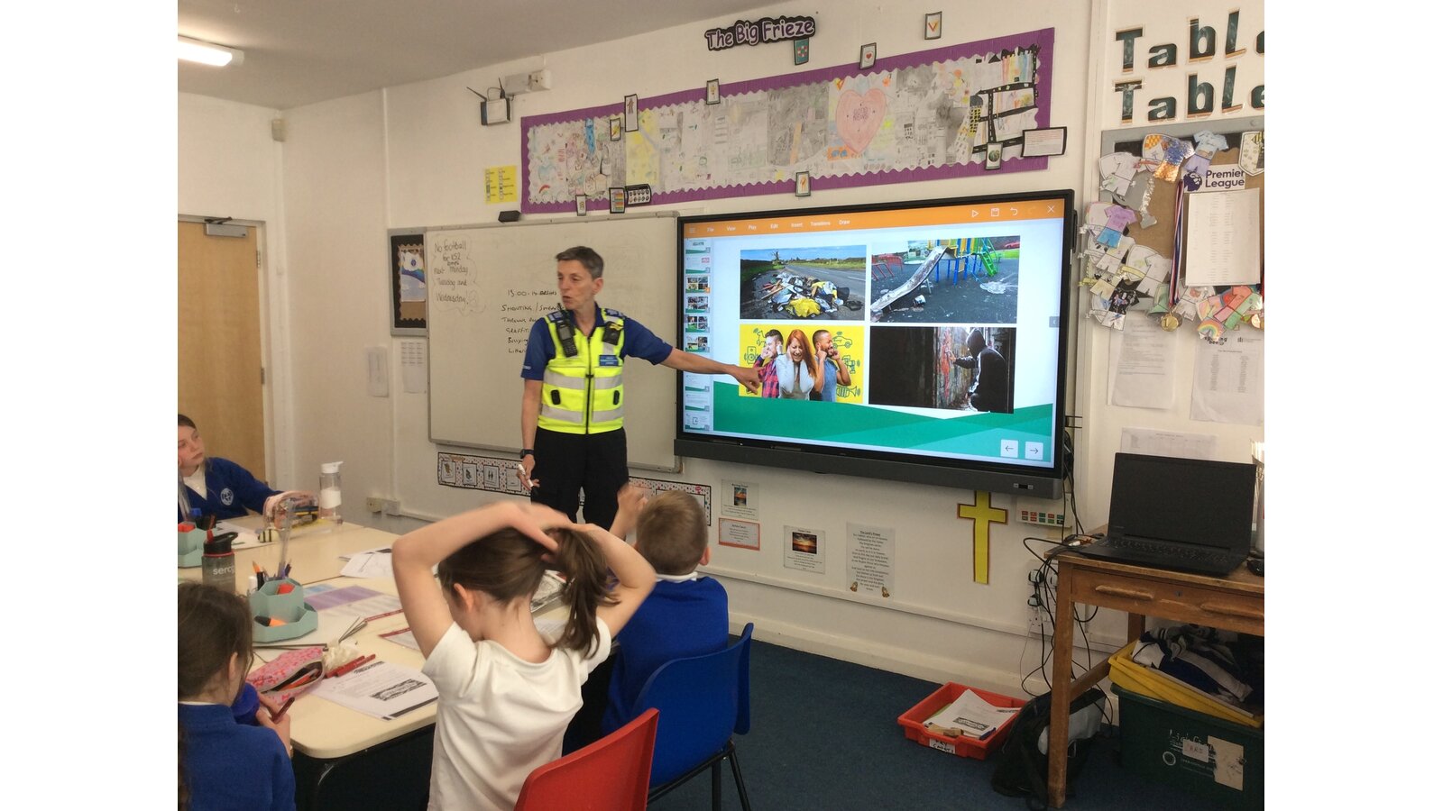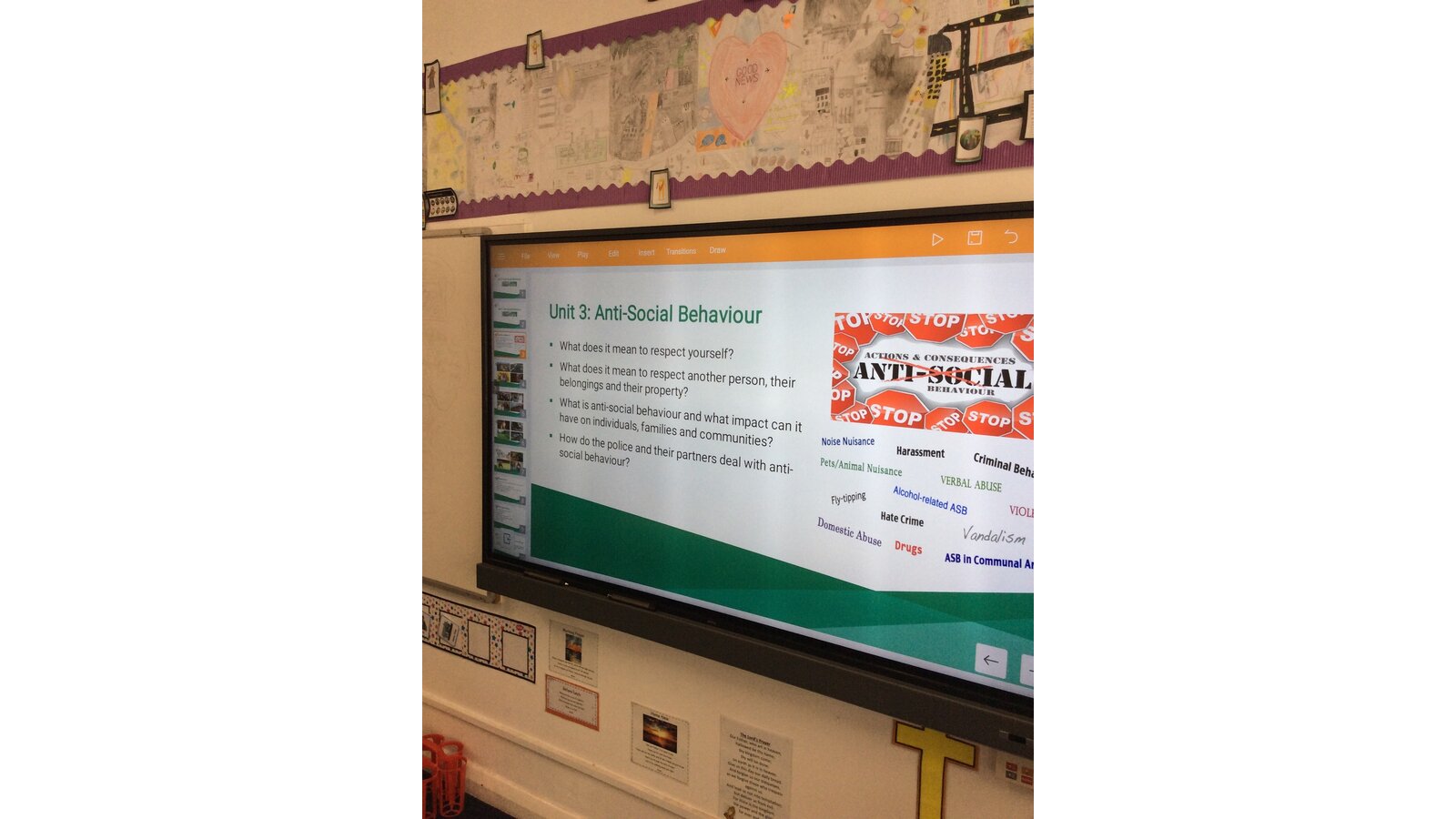 Today Emma and Gareth our local PCSO’s came in to teach us all about what anti social behaviour is and how it can cause distress, alarm & harassment.