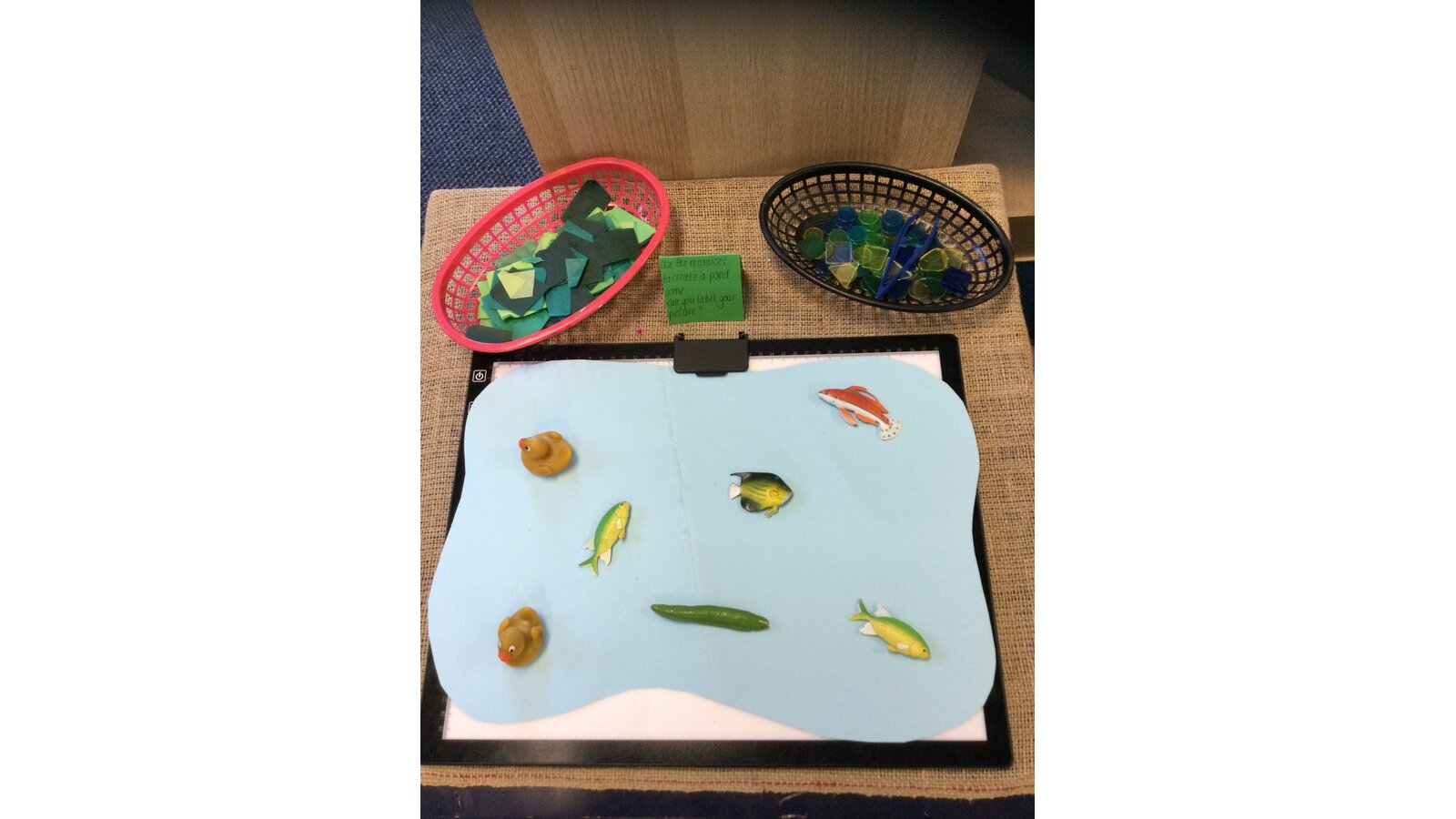 We listened to the story The Perfect Ribbit, which beautifully explains the life cycle of a frog. The children drew their own life cycles, labelled and wrote sentences to describe the process. The children also tried creating a loose parts frog, creating egg carton frogs and tadpoles and using our light box to make a pond scene.