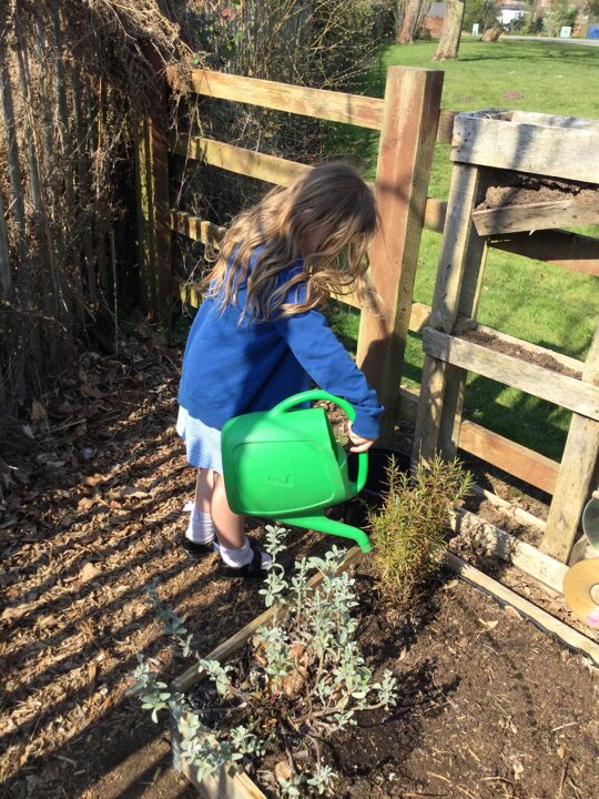 Class 2 spent this afternoon giving our outdoor classroom a tidy up. The children helped pull some weeds out of our planting beds ready for us to plant our sunflowers, water our little herb garden, and pop all of our circles stools back where they belong.