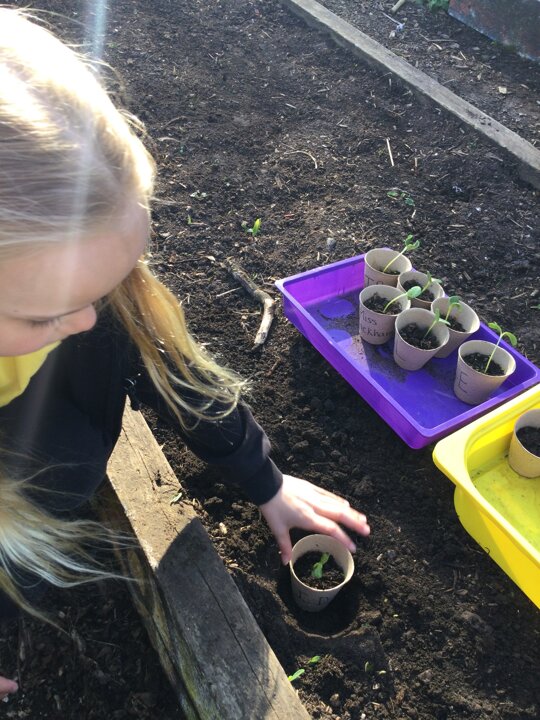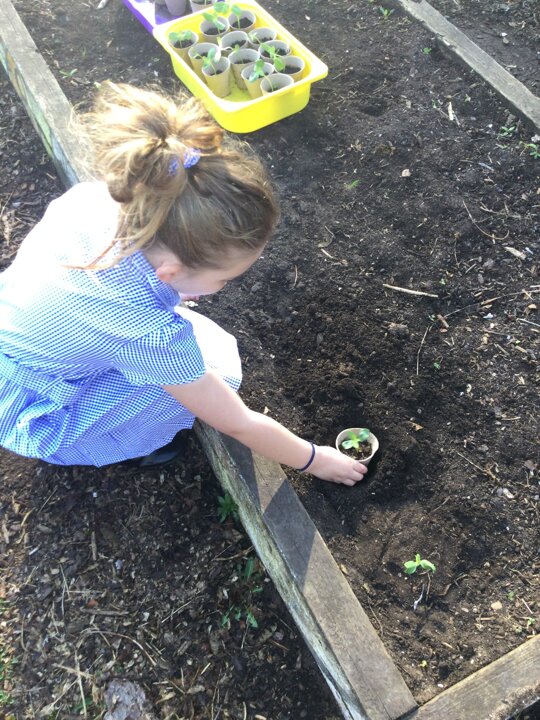 Class 2 made the most of the wonderful sunshine this morning and headed out to their outdoor classroom to plant their sunflowers. We have been patiently waiting for them to sprout big enough for us to transfer to our allotment.