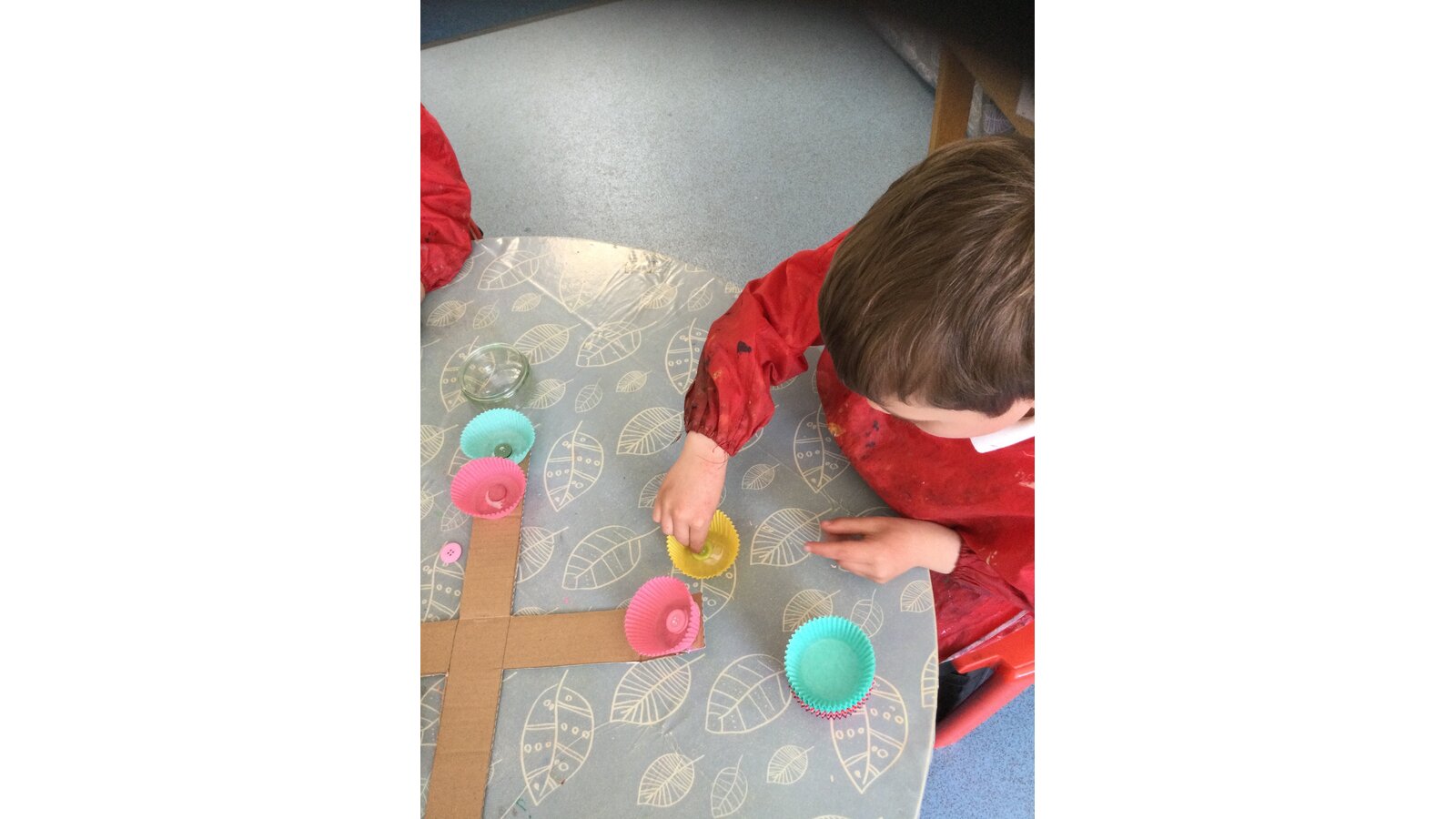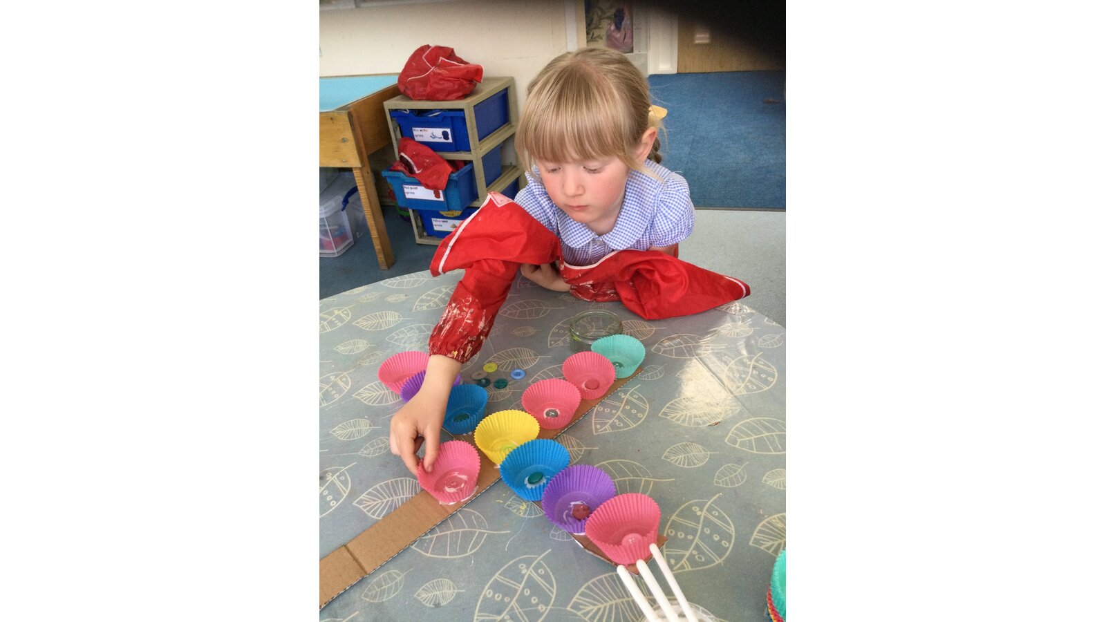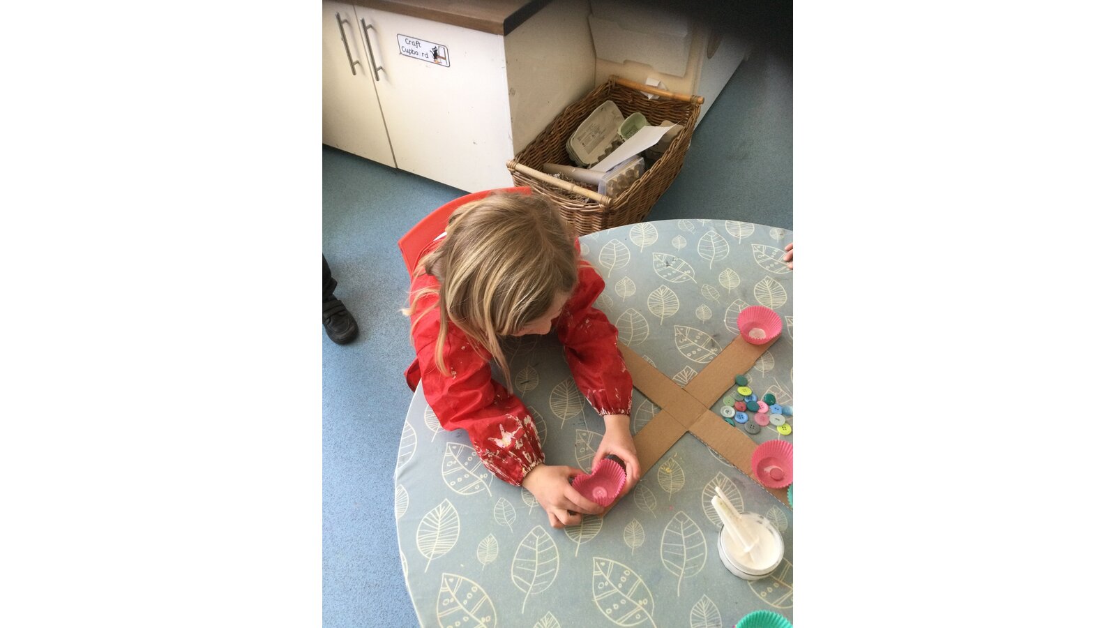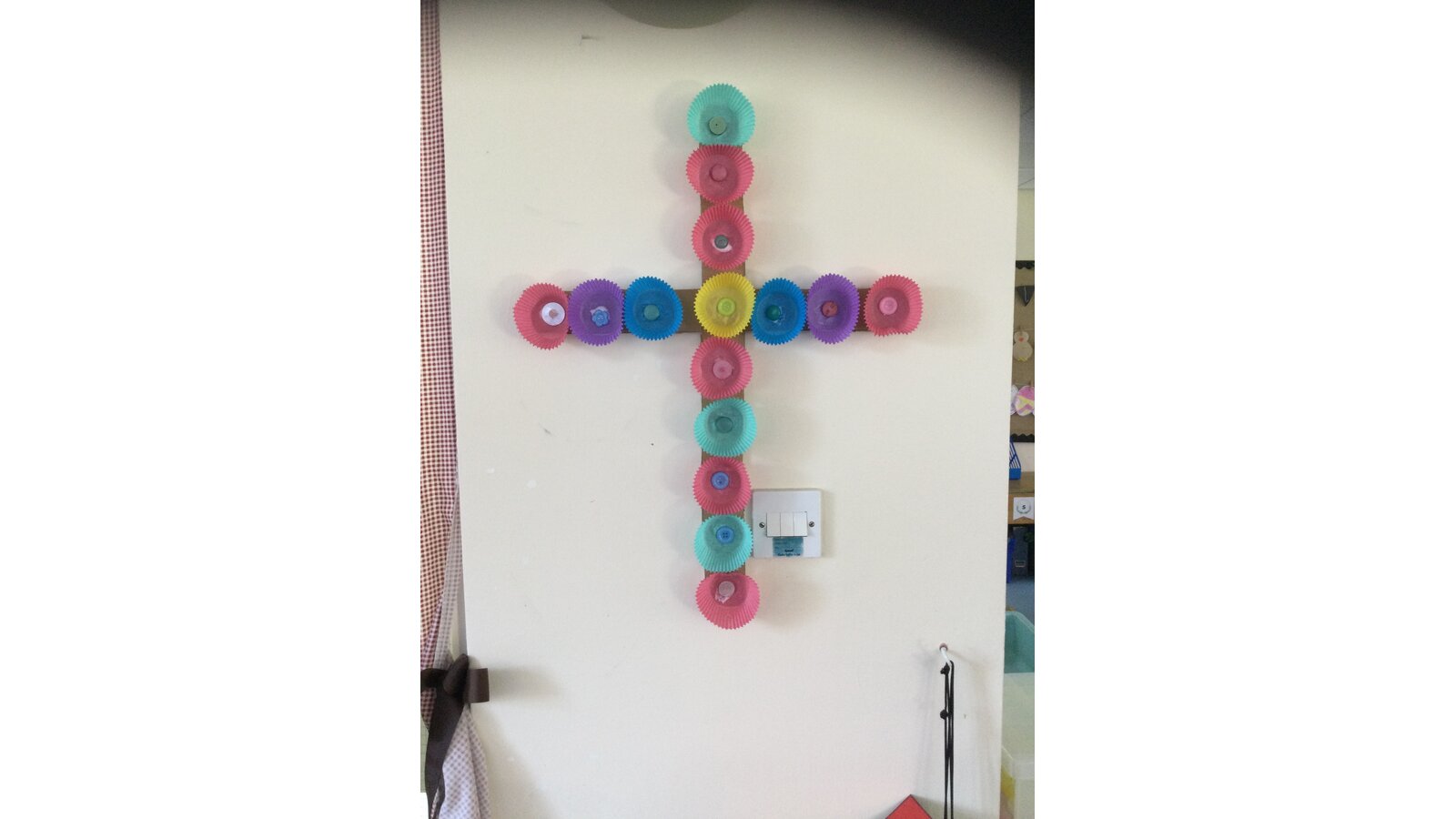 Class 1 then worked together to make our own beautiful flower cross using cupcake cases and buttons.