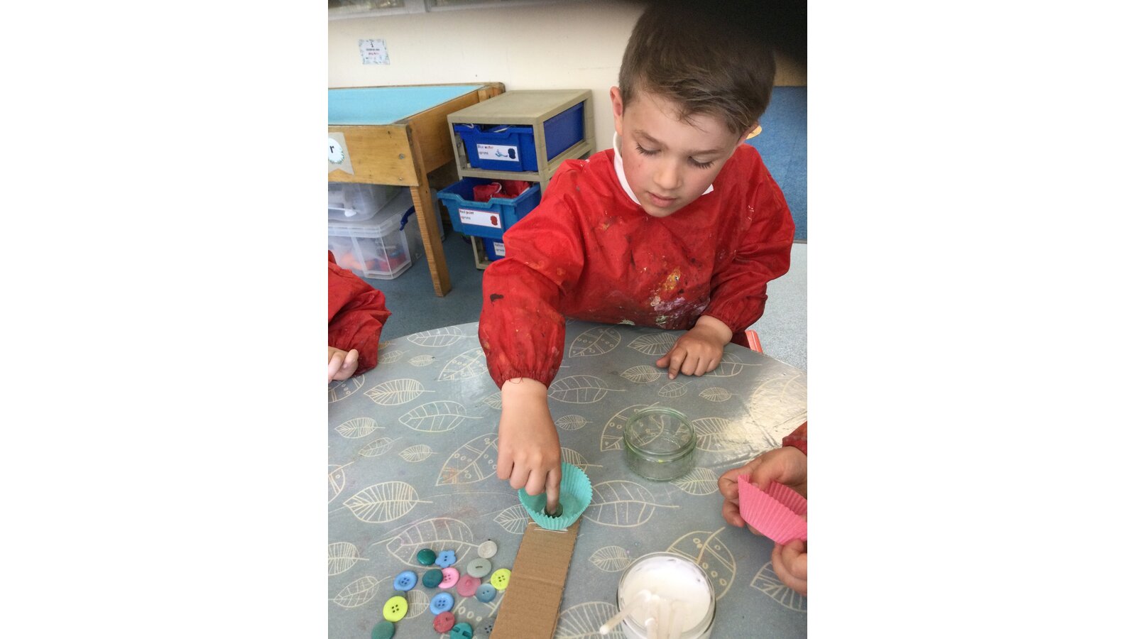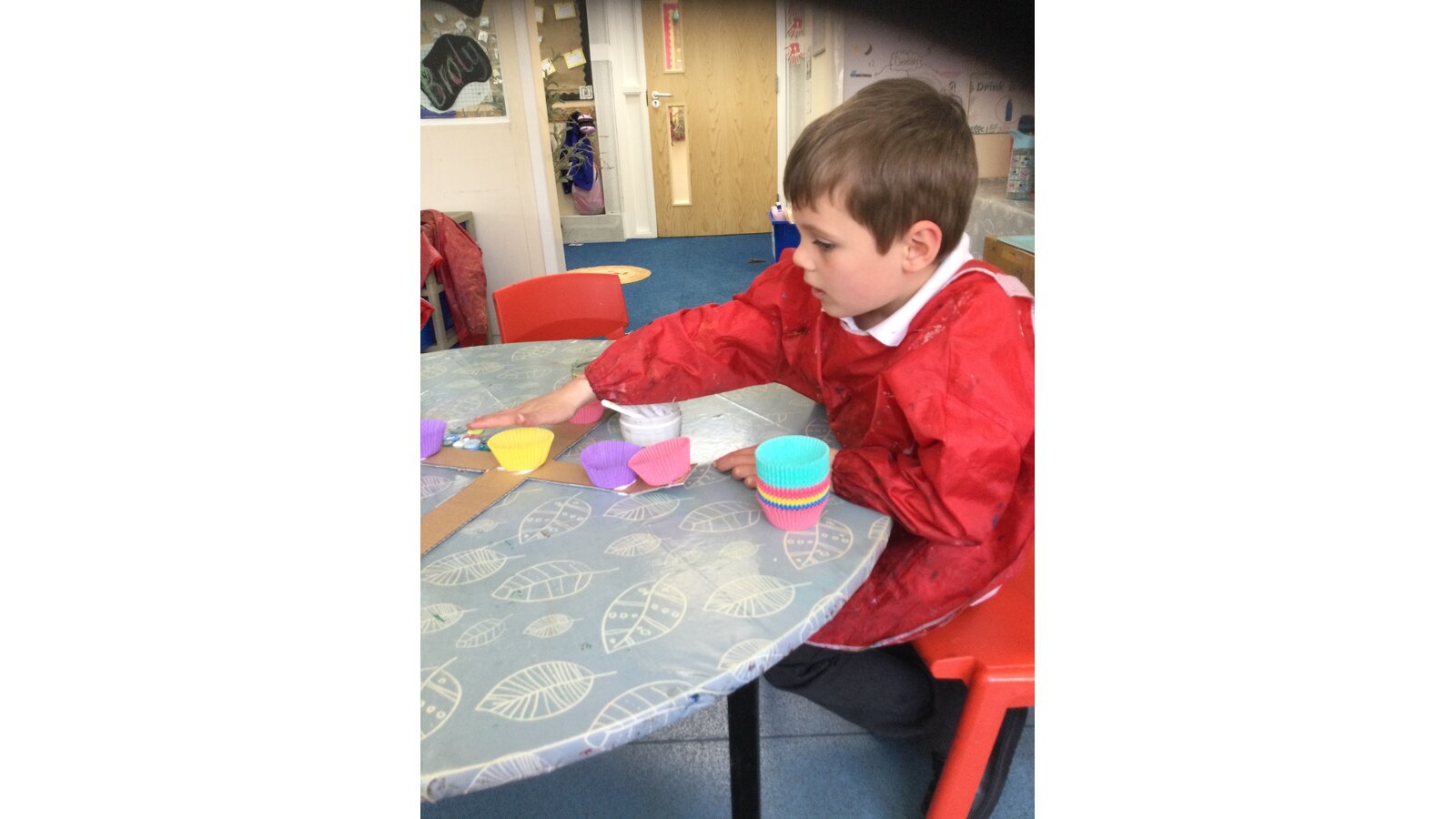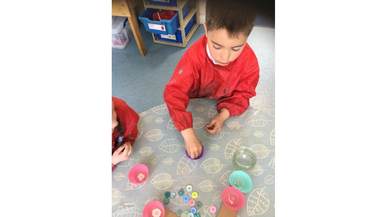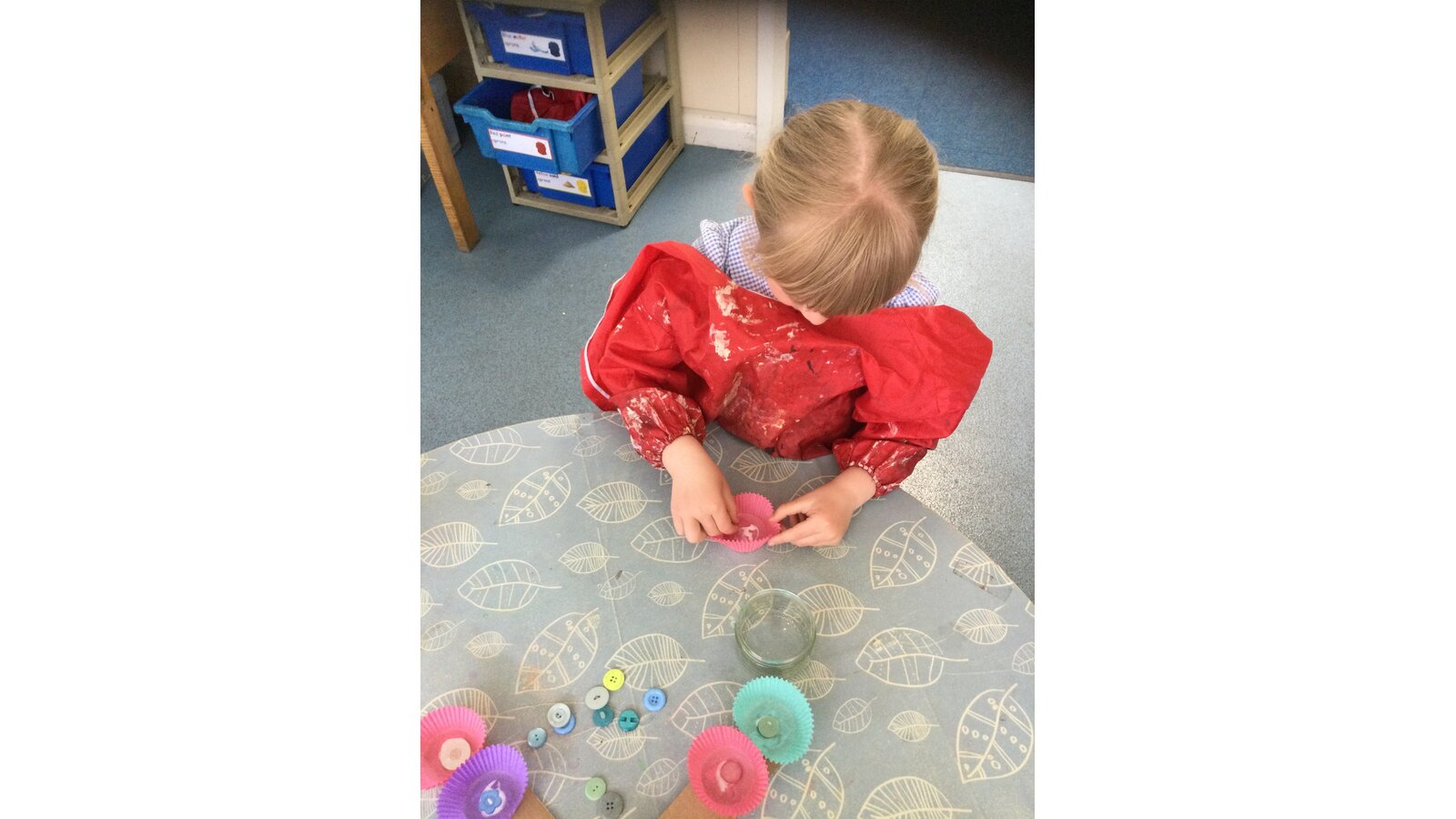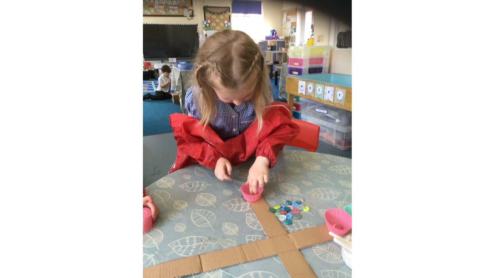 Class 1 then worked together to make our own beautiful flower cross using cupcake cases and buttons.