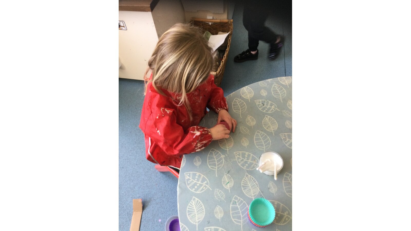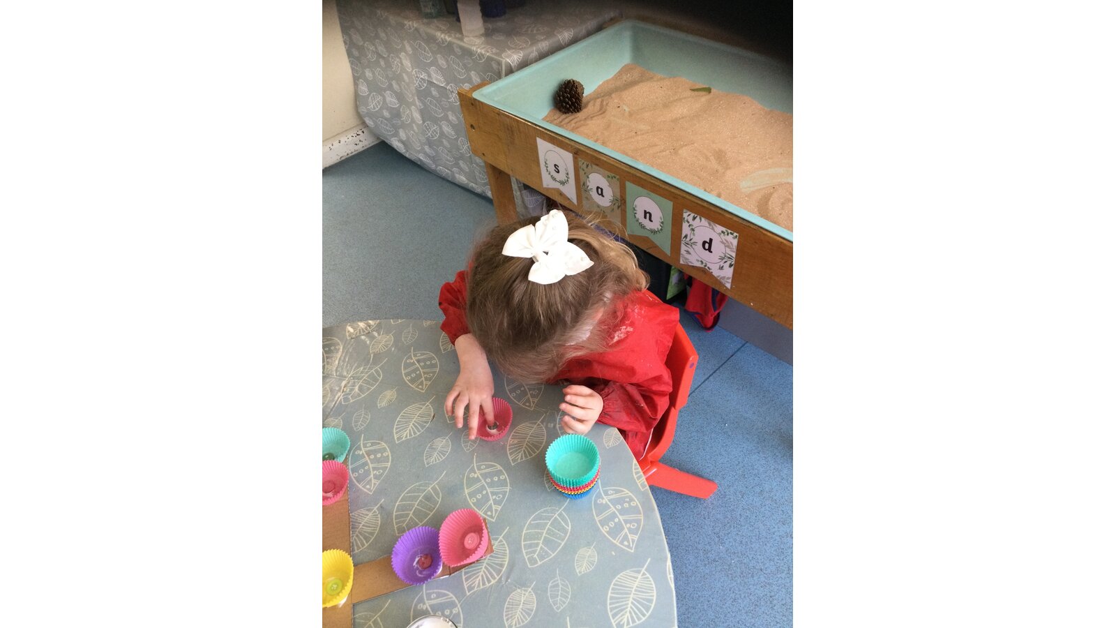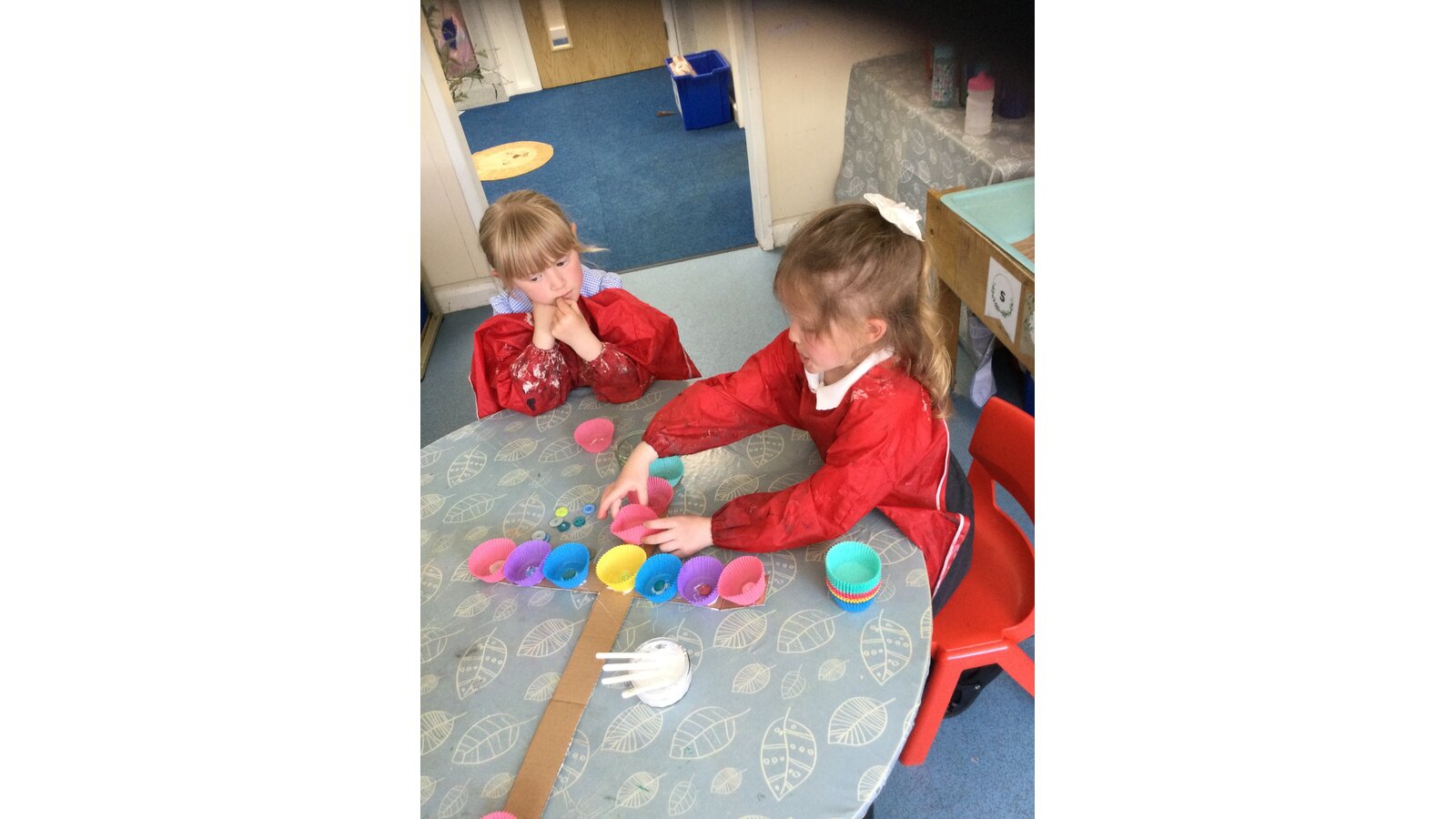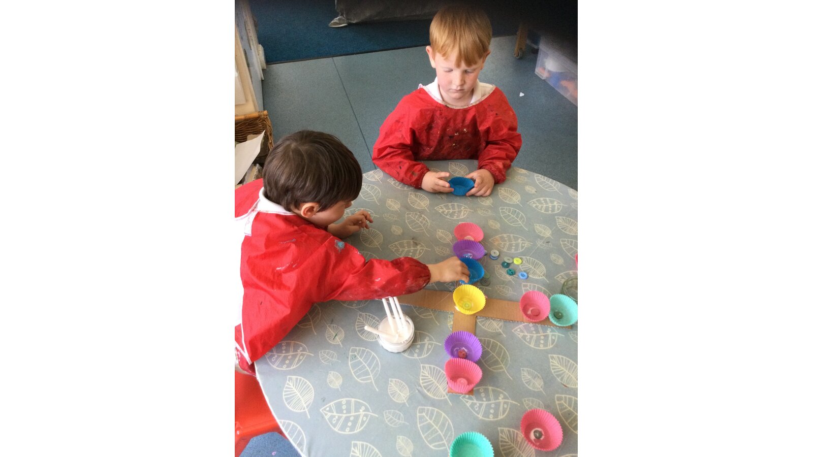 Class 1 then worked together to make our own beautiful flower cross using cupcake cases and buttons.